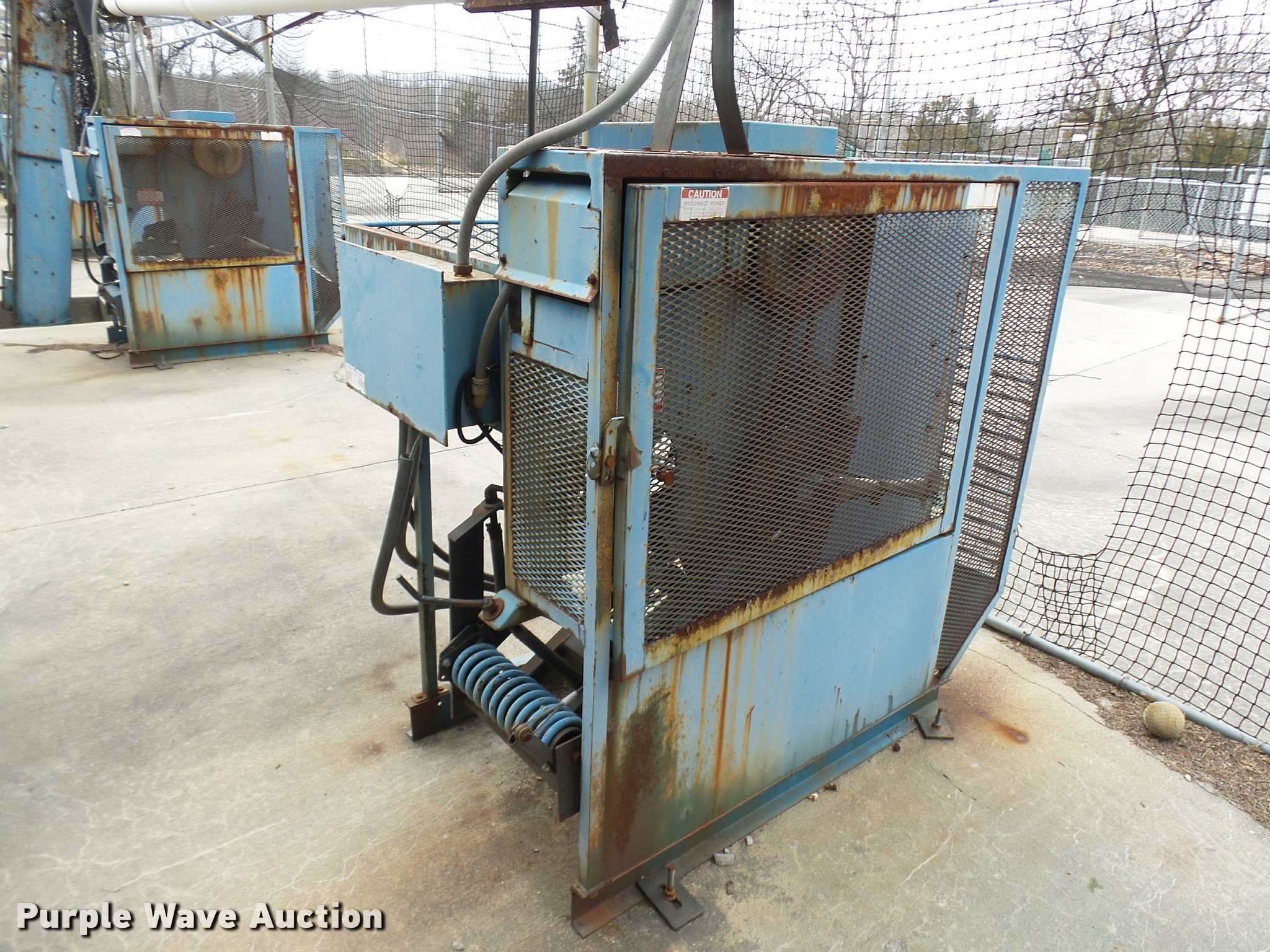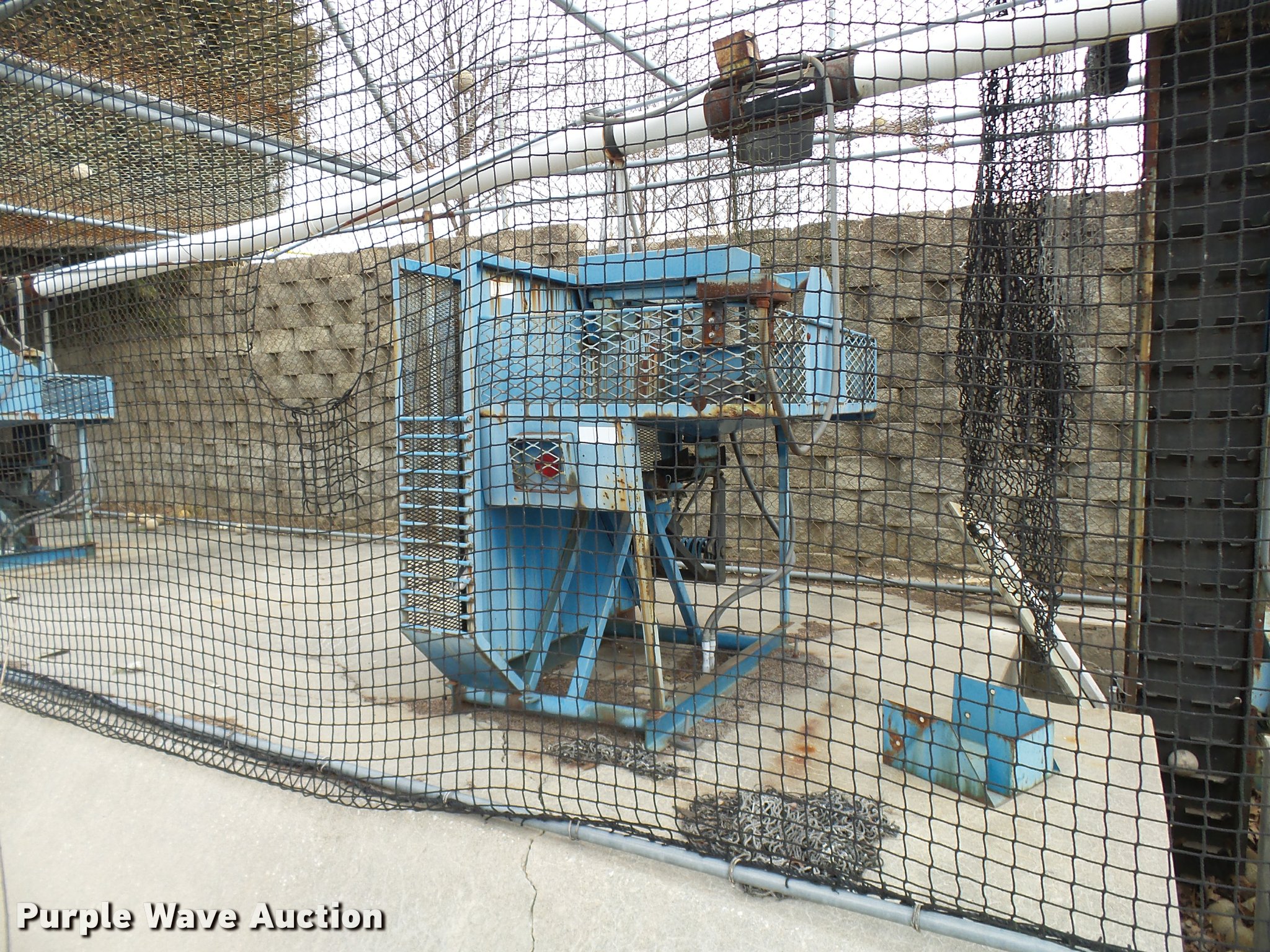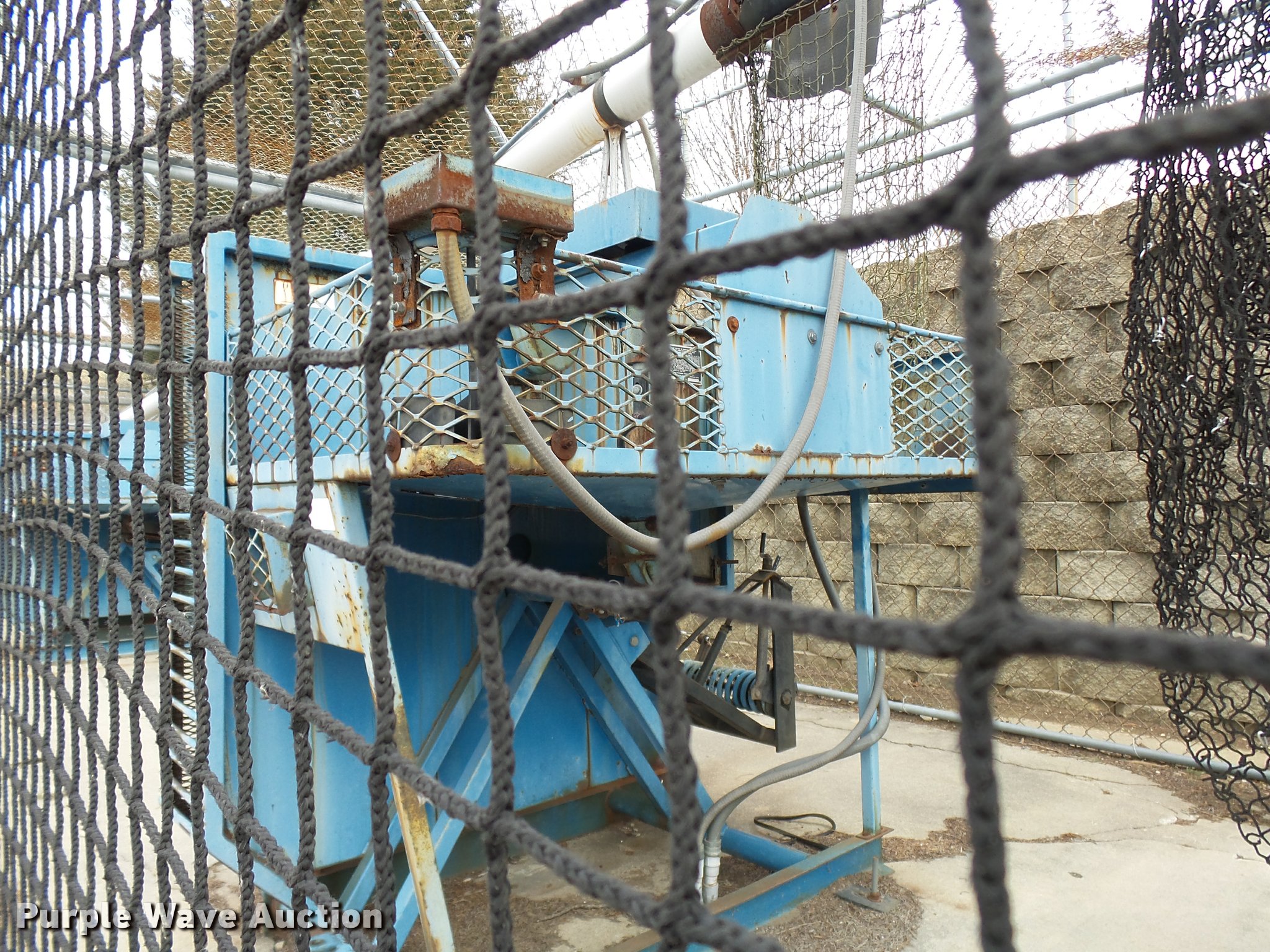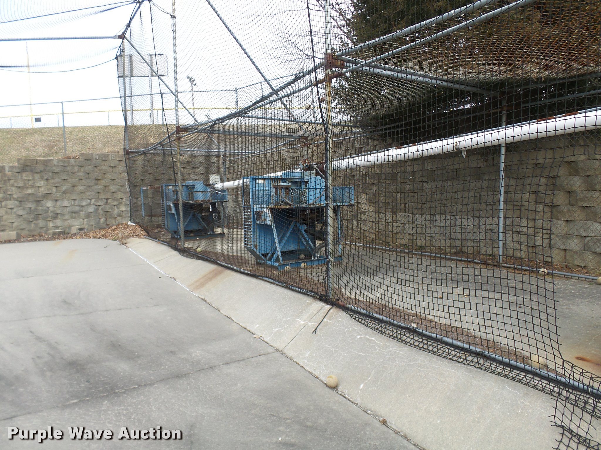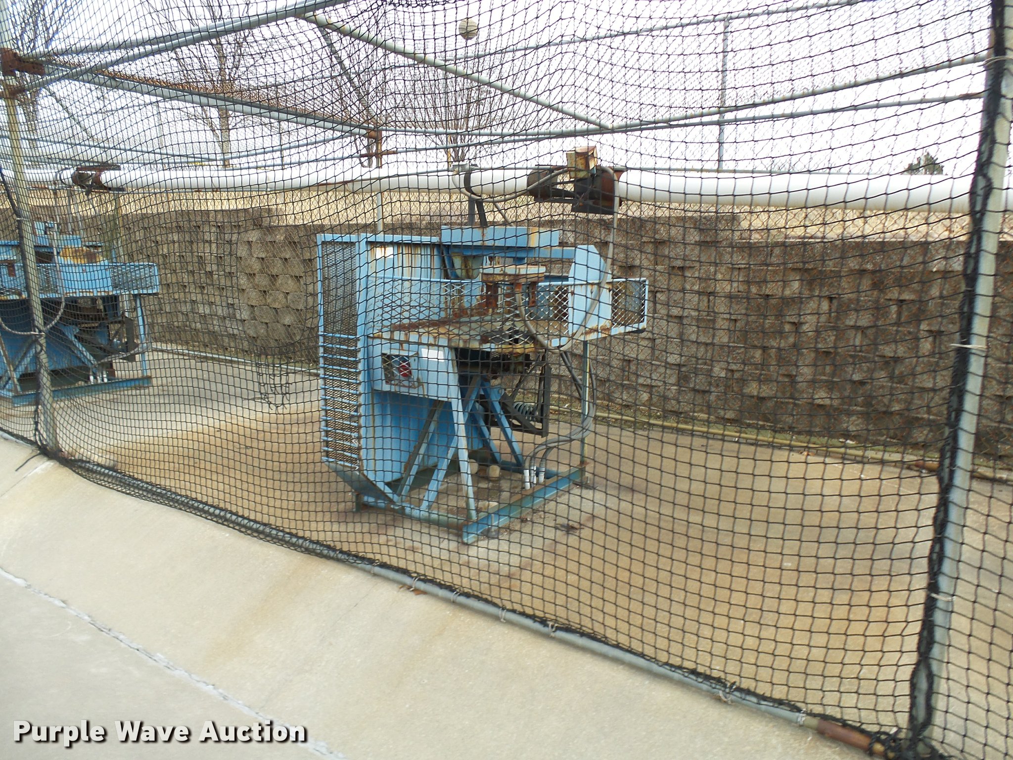 Purple Wave is selling a used Sporting Goods in Missouri. This item is a (8) commercial batting cages with the following: Coin/token operation, (8) Master pitching machines, Model A-55, Adjustable speed control, (8) bays, 120" x 50" net and structures, Self-feeding ball elevator, PVC dispensing tubes, Coin/token machine, Coin/token change machine with sled for dispensing, All netting and steel structure included, Operational when removed from service in 2015, All contents must be removed, Exterior fence not included