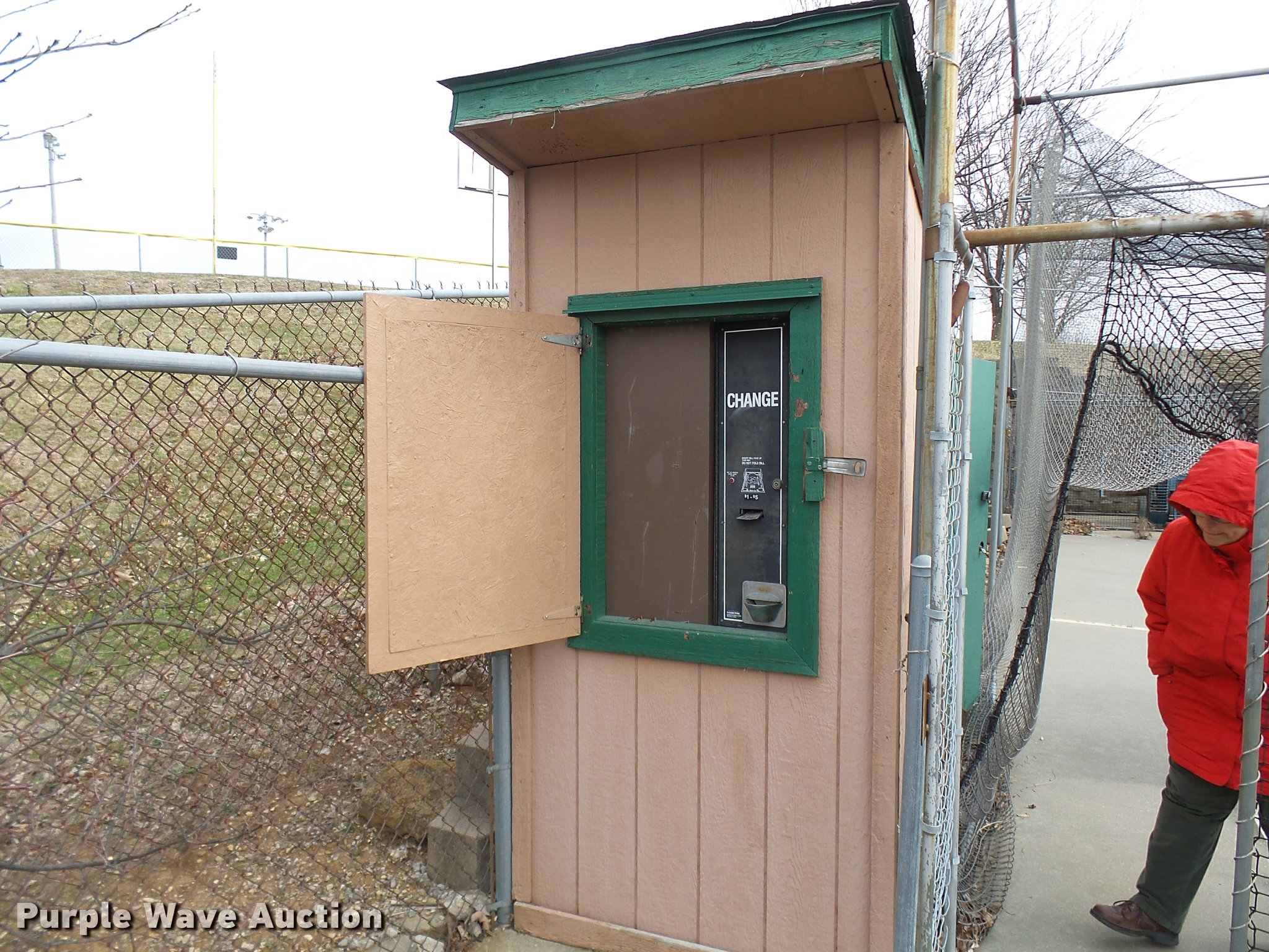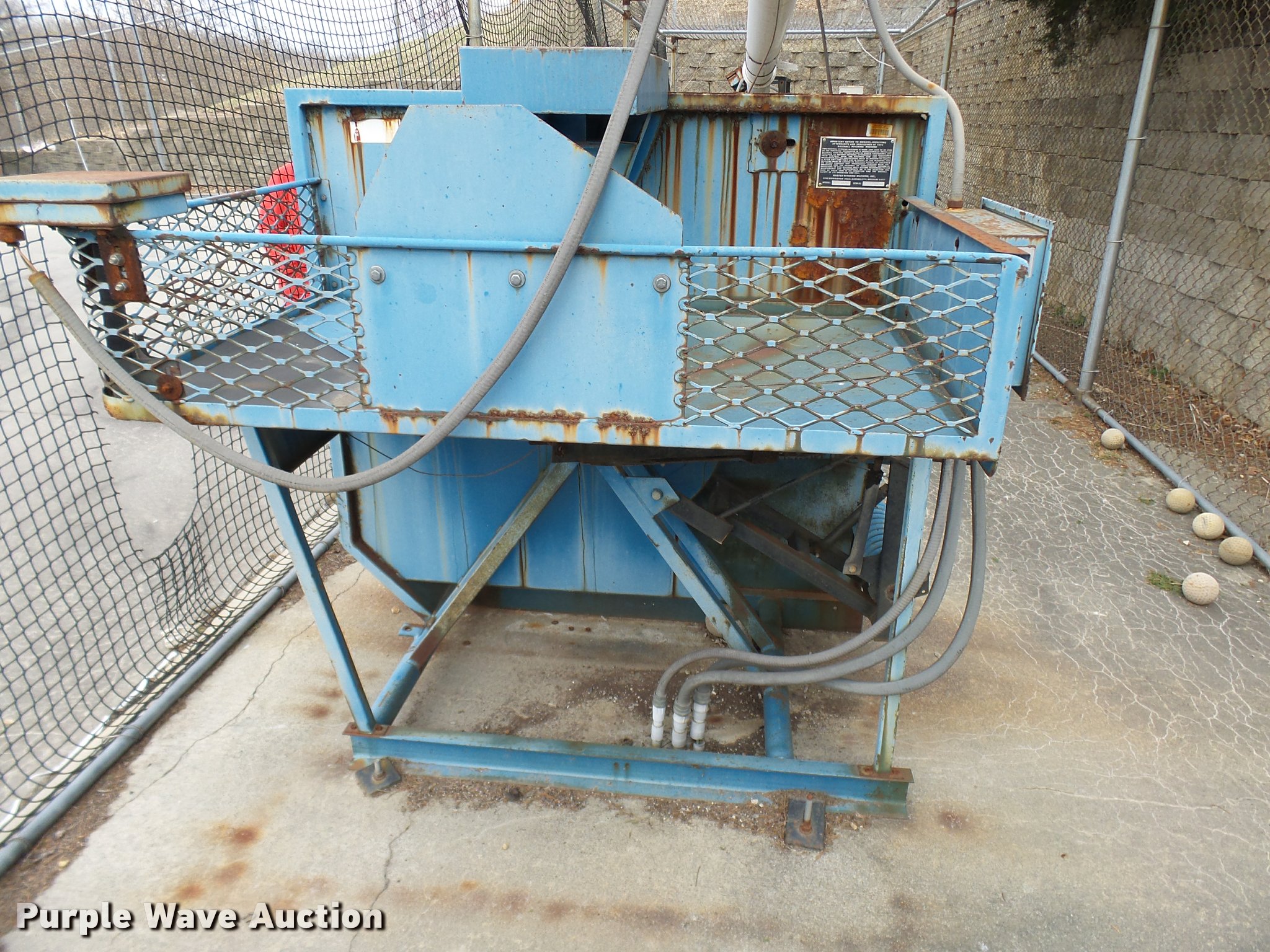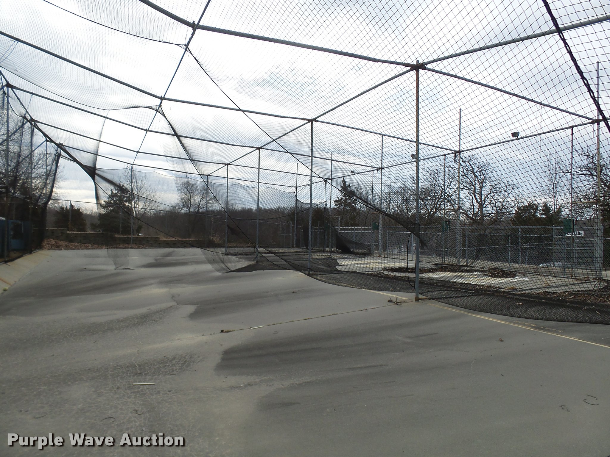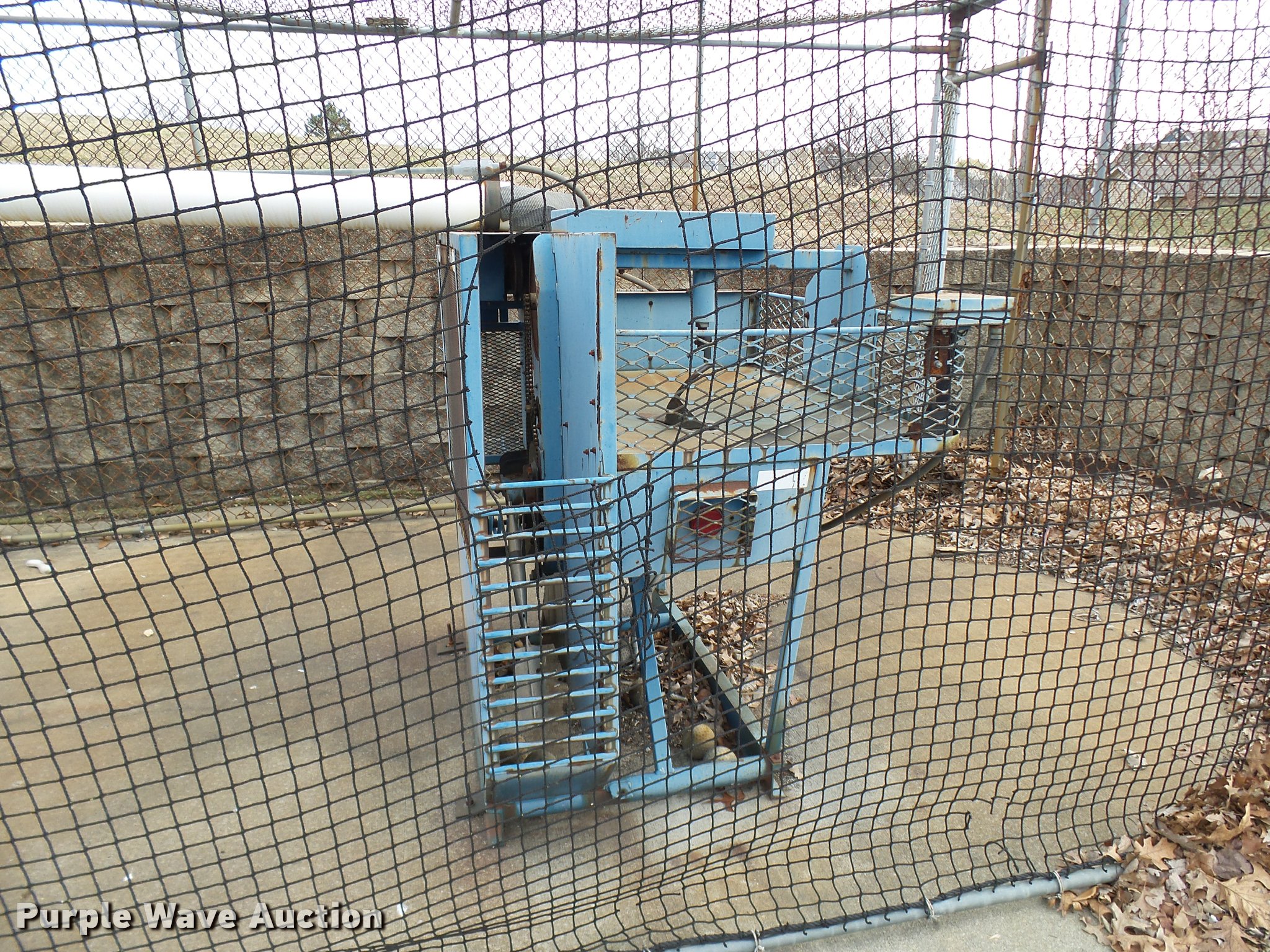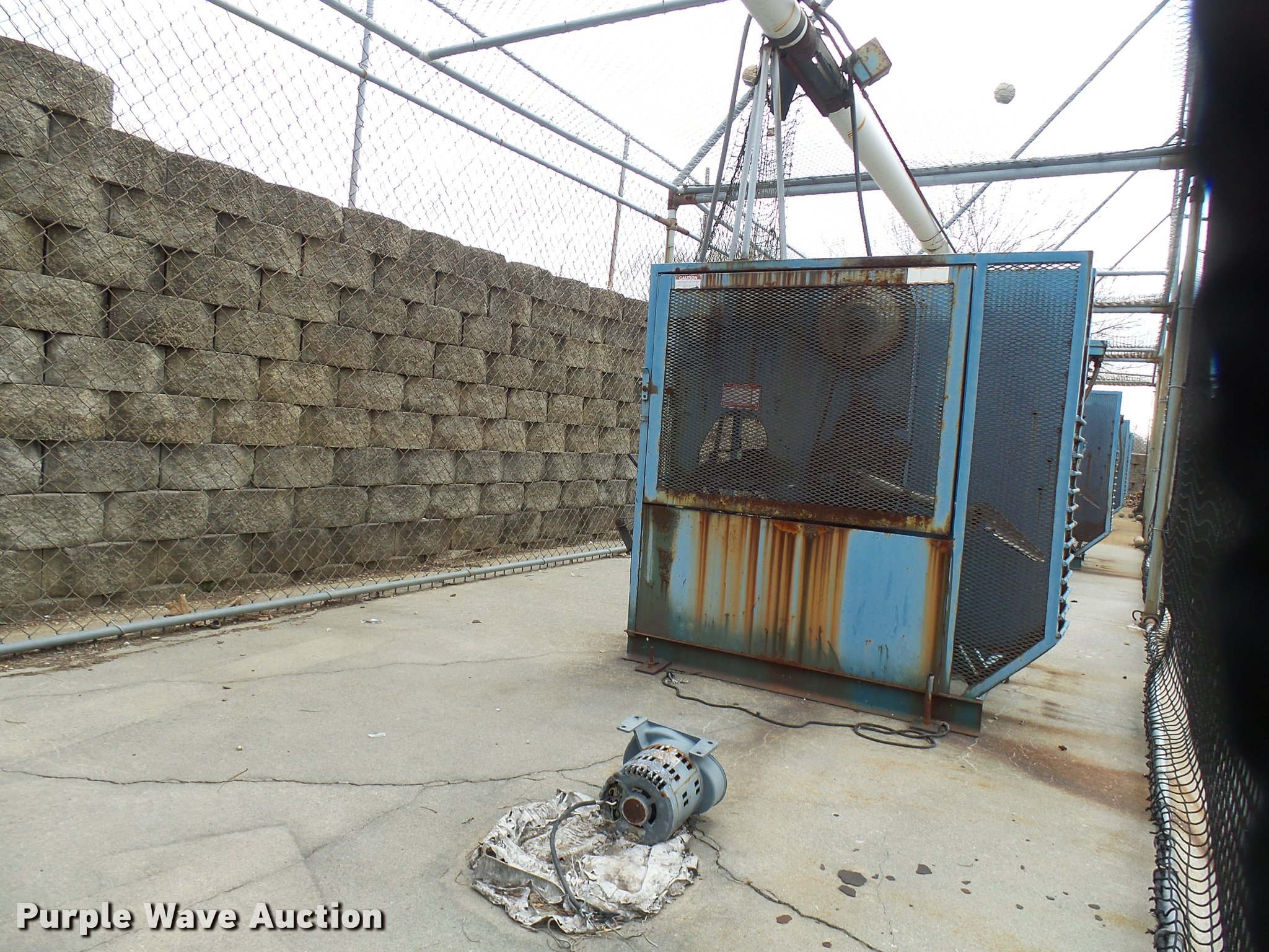 Purple Wave is selling a used Sporting Goods in Missouri. This item is a (8) commercial batting cages with the following: Coin/token operation, (8) Master pitching machines, Model A-55, Adjustable speed control, (8) bays, 120" x 50" net and structures, Self-feeding ball elevator, PVC dispensing tubes, Coin/token machine, Coin/token change machine with sled for dispensing, All netting and steel structure included, Operational when removed from service in 2015, All contents must be removed, Exterior fence not included