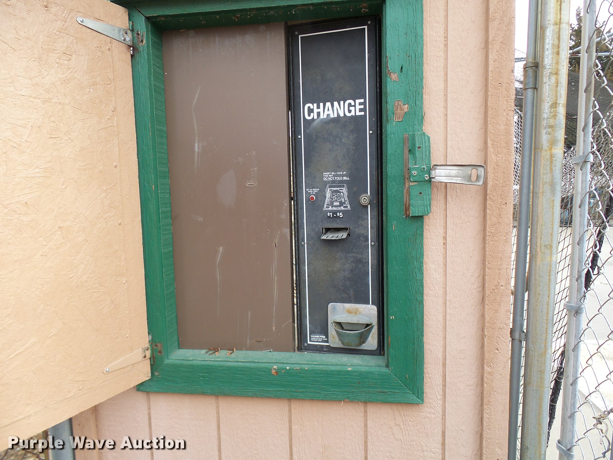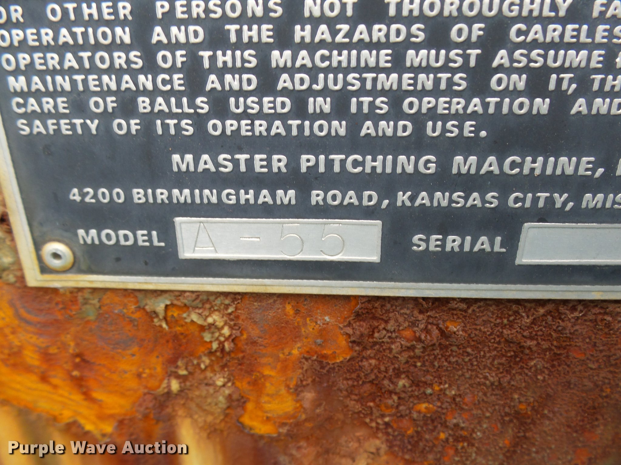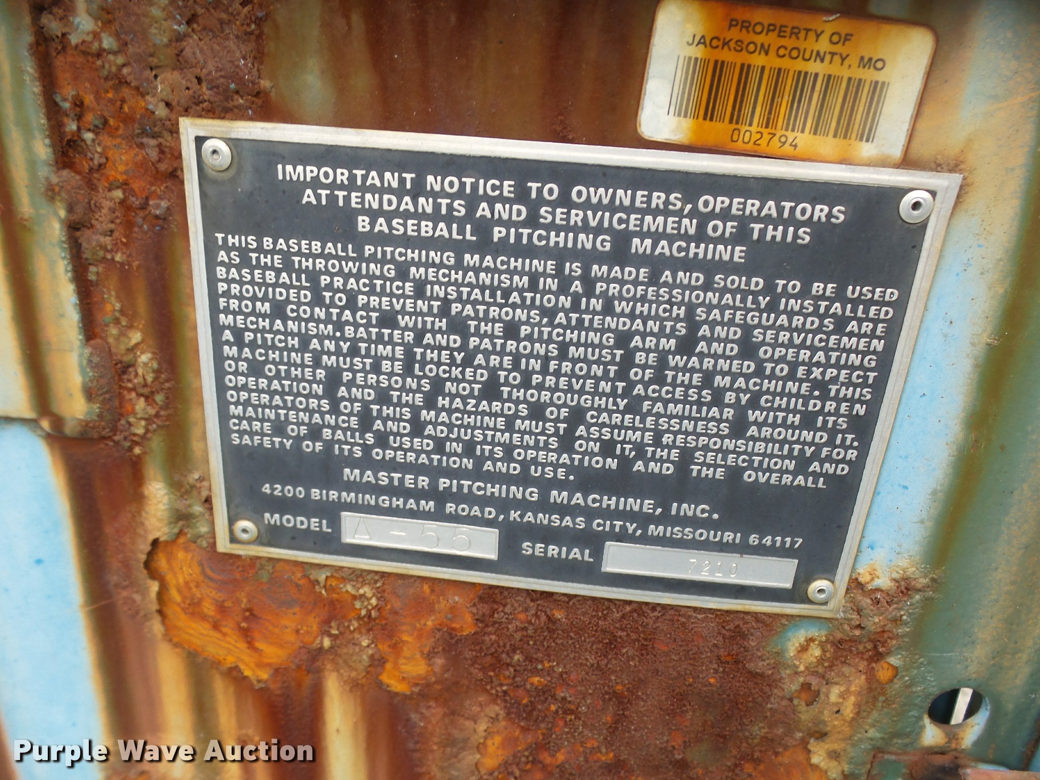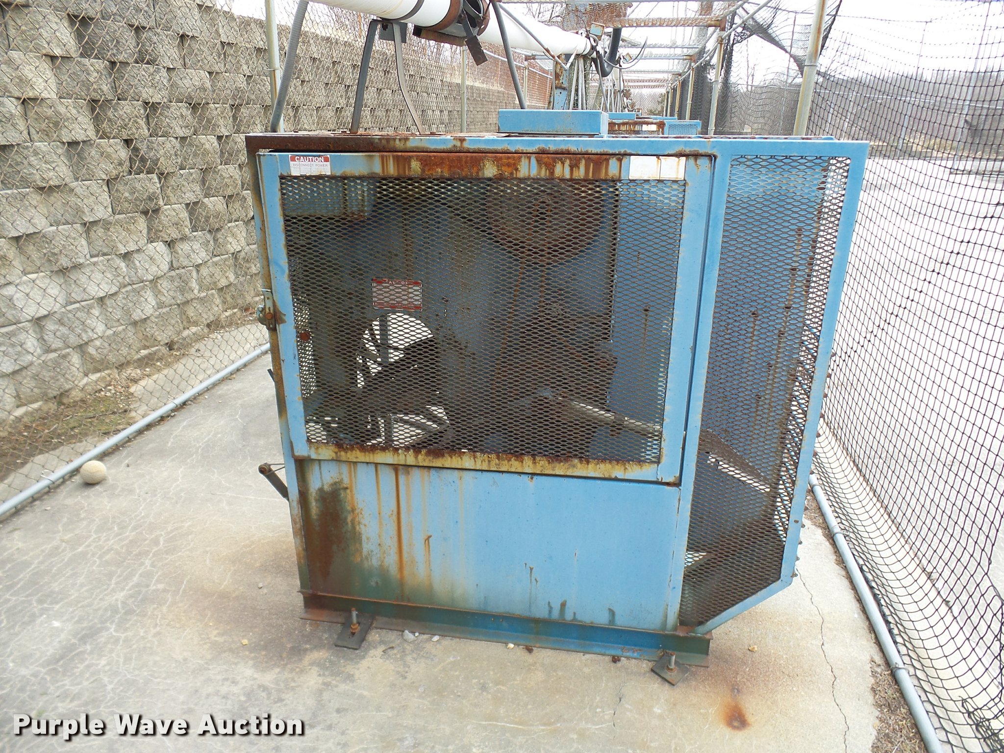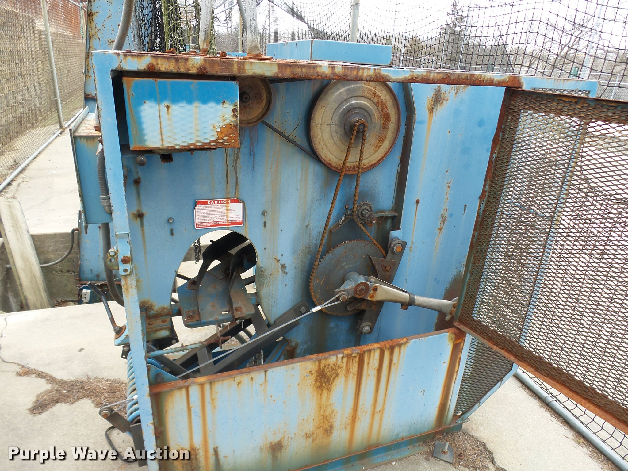 Purple Wave is selling a used Sporting Goods in Missouri. This item is a (8) commercial batting cages with the following: Coin/token operation, (8) Master pitching machines, Model A-55, Adjustable speed control, (8) bays, 120" x 50" net and structures, Self-feeding ball elevator, PVC dispensing tubes, Coin/token machine, Coin/token change machine with sled for dispensing, All netting and steel structure included, Operational when removed from service in 2015, All contents must be removed, Exterior fence not included