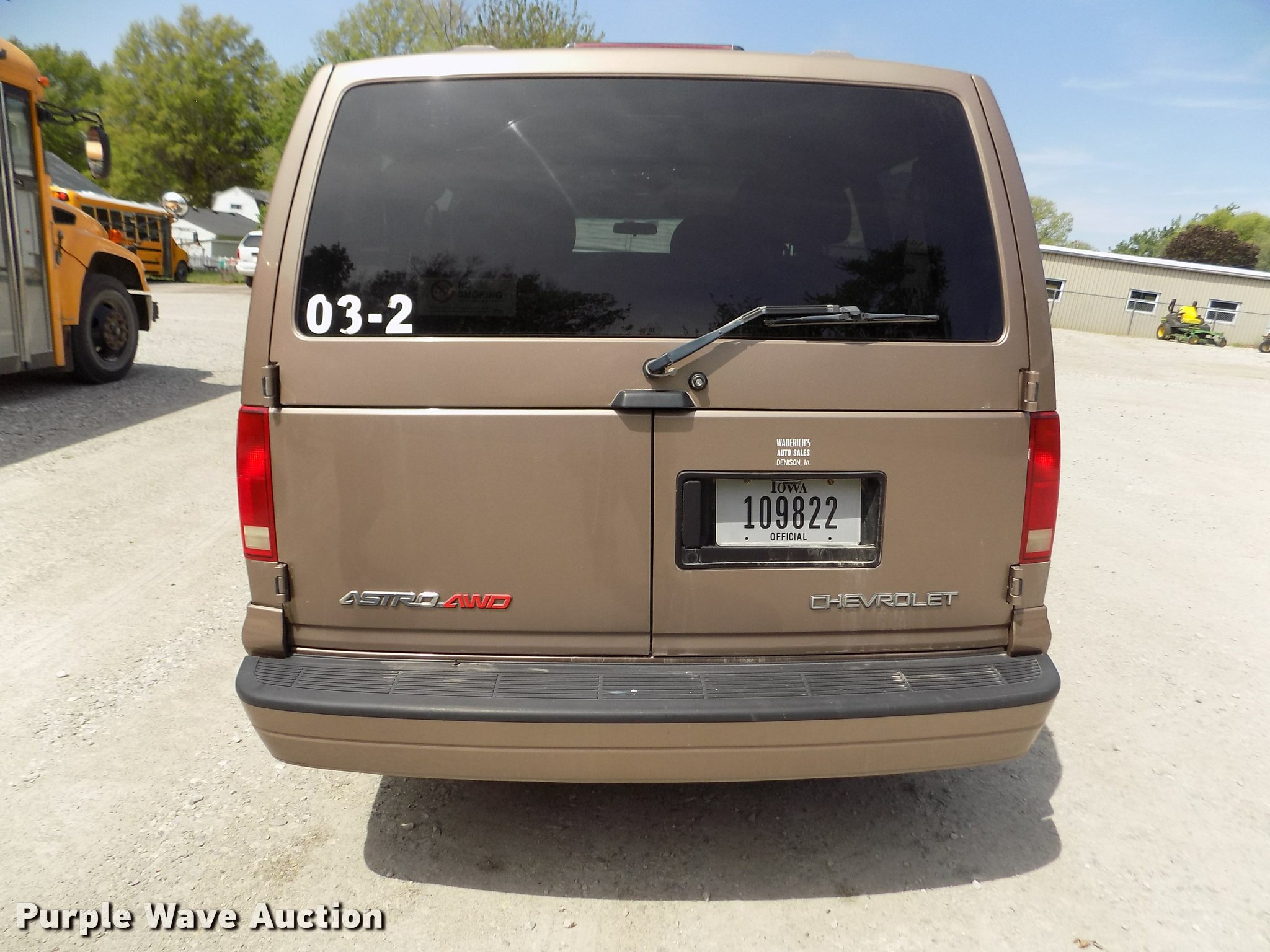 Purple Wave is selling a used Passenger Vehicle in Iowa. This item is a 2003 Chevrolet Astro van with the following: 113,471 miles on odometer, 4.3L V6 OHV 12V gas engine, Automatic transmission, All wheel drive, AC and heat, Tilt, Cruise, AM/FM/CD, Power windows, locks, and mirrors, Cloth interior, B.F. Goodrich LT215/70R16 tires, AC needs recharged