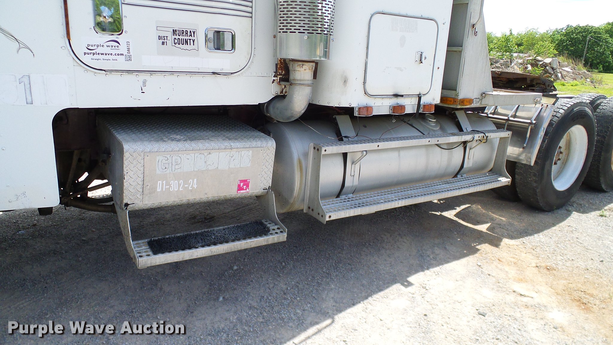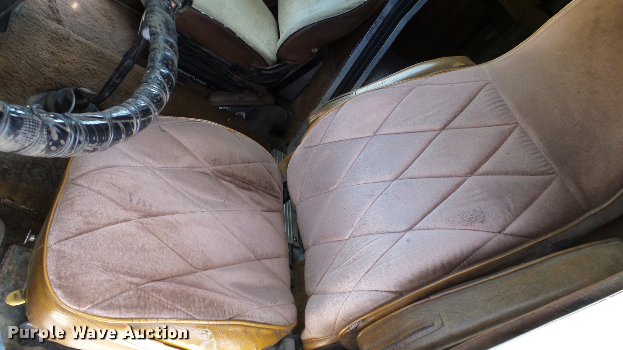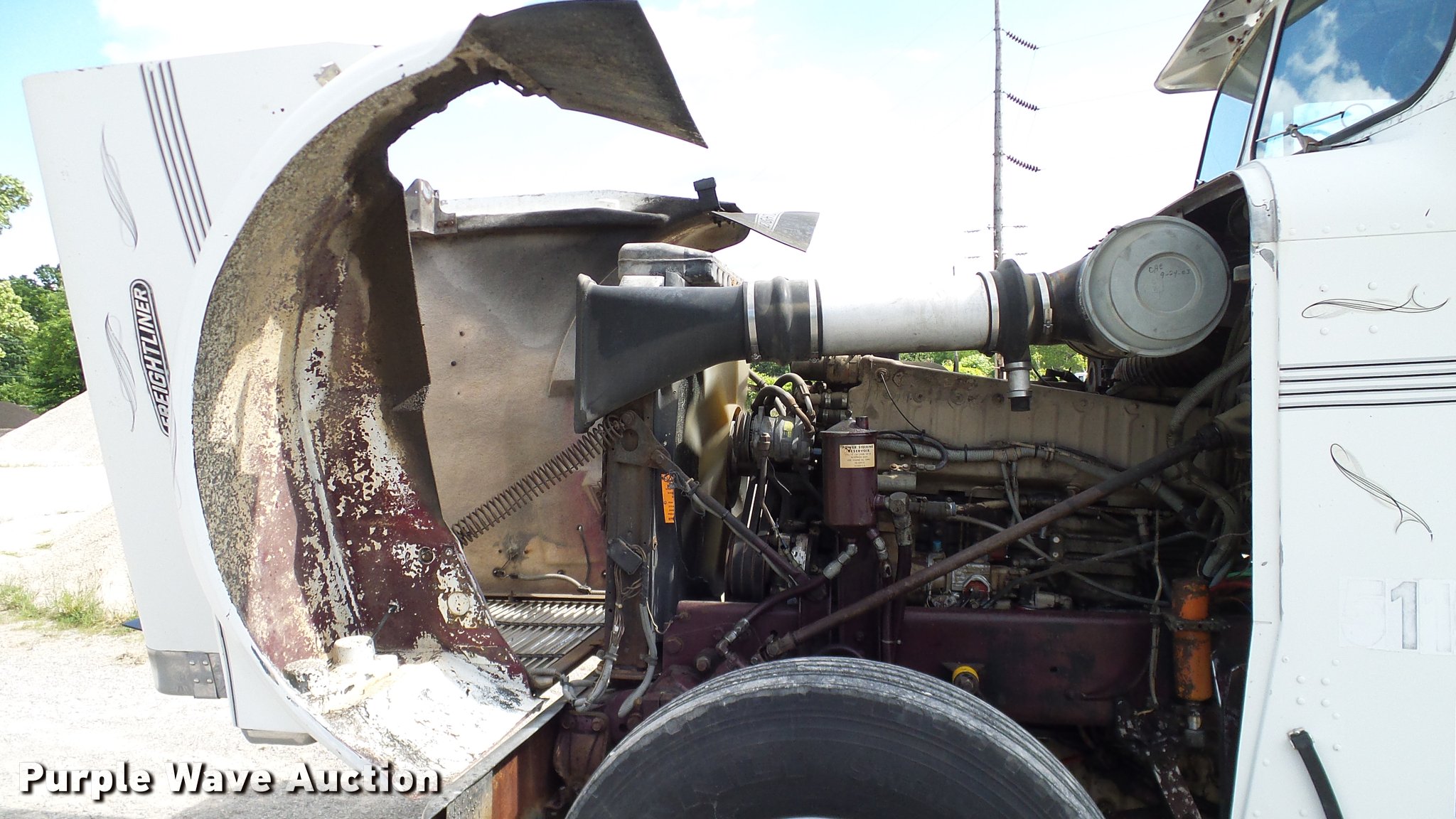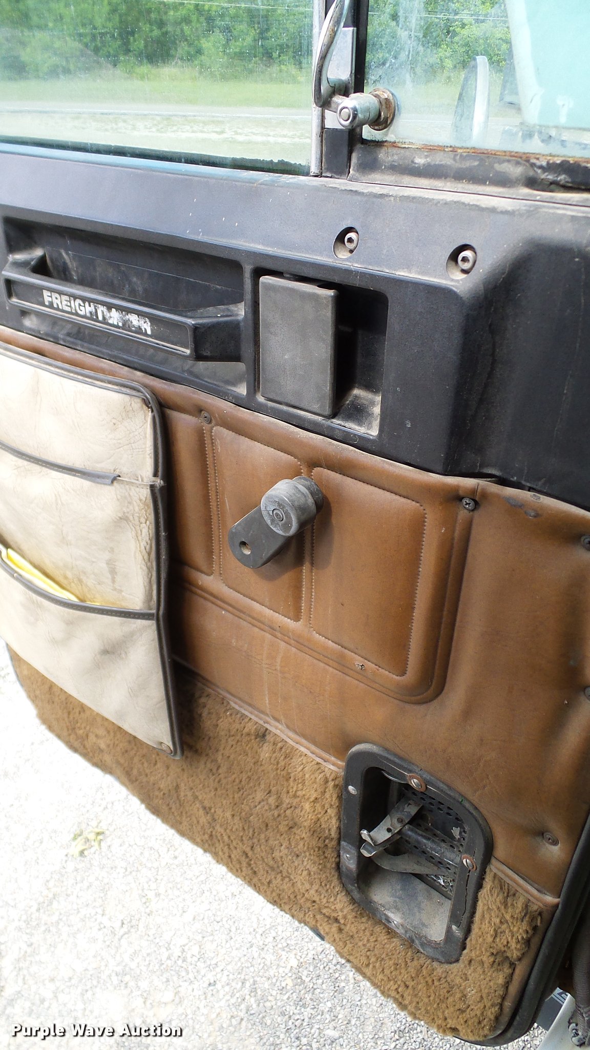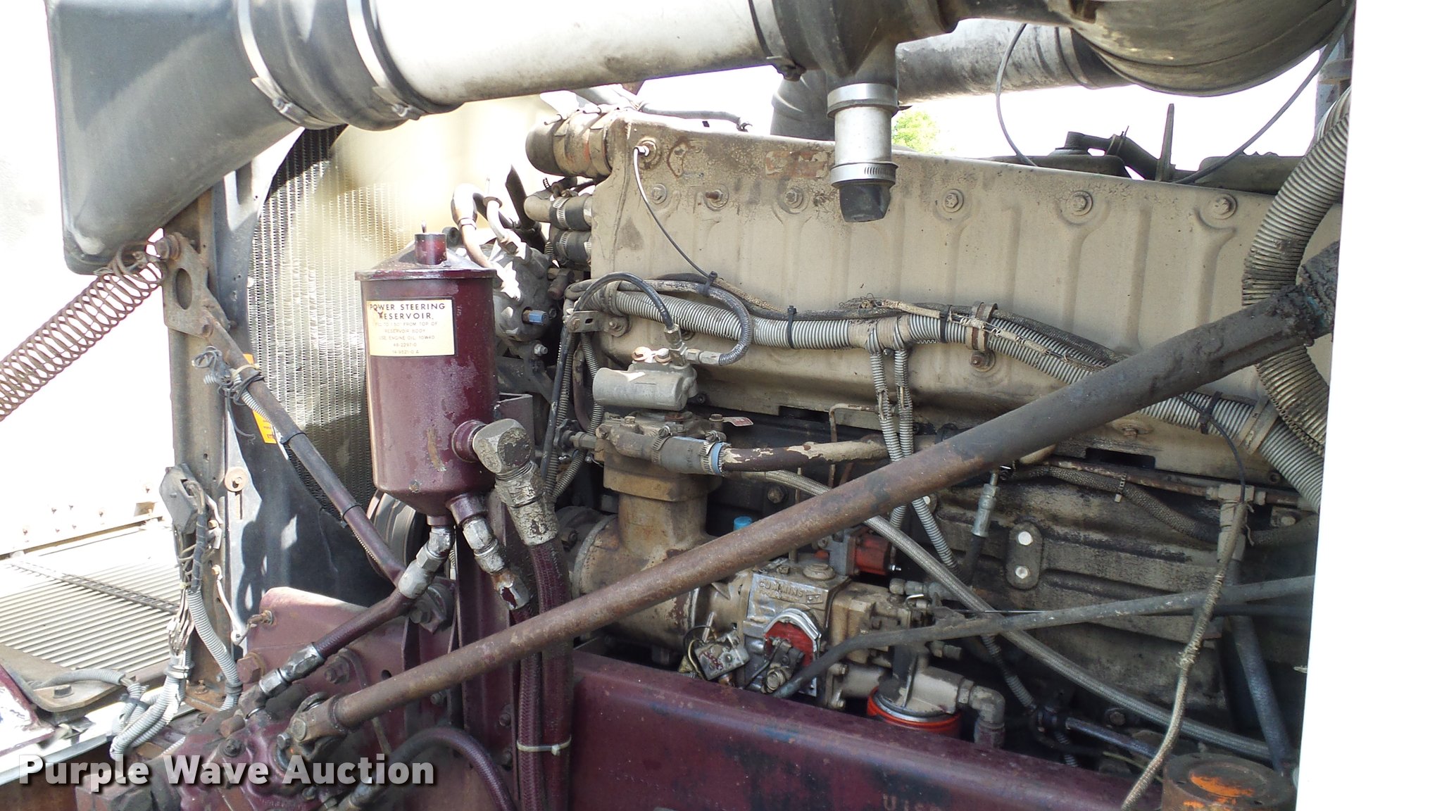 Purple Wave is selling a used Truck Tractor in Oklahoma. This item is a 1986 Freightliner FLC semi truck with the following: 750,374 miles on odometer, Cummins NTC-400 14.0L L6 six cylinder turbo diesel engine, Eaton Fuller manual transmission, Tandem axle, Inter-axle differential lock, AC and heat, Heated mirrors, Air suspension seat, 40" sleeper, Single bed, Ether start, Exterior visor, Beacon light, Single front exhaust stack, Aluminum deck plate, Air operated sliding fifth wheel plate, Aluminum headache rack, Chain hanger, Single fuel tank, Stainless steel quarter fenders, Mud flaps, Air suspension, Air brakes, Engine brake, 240" wheelbase, Aluminum wheels, 11R24.5 tires, Unit# D1-302-24