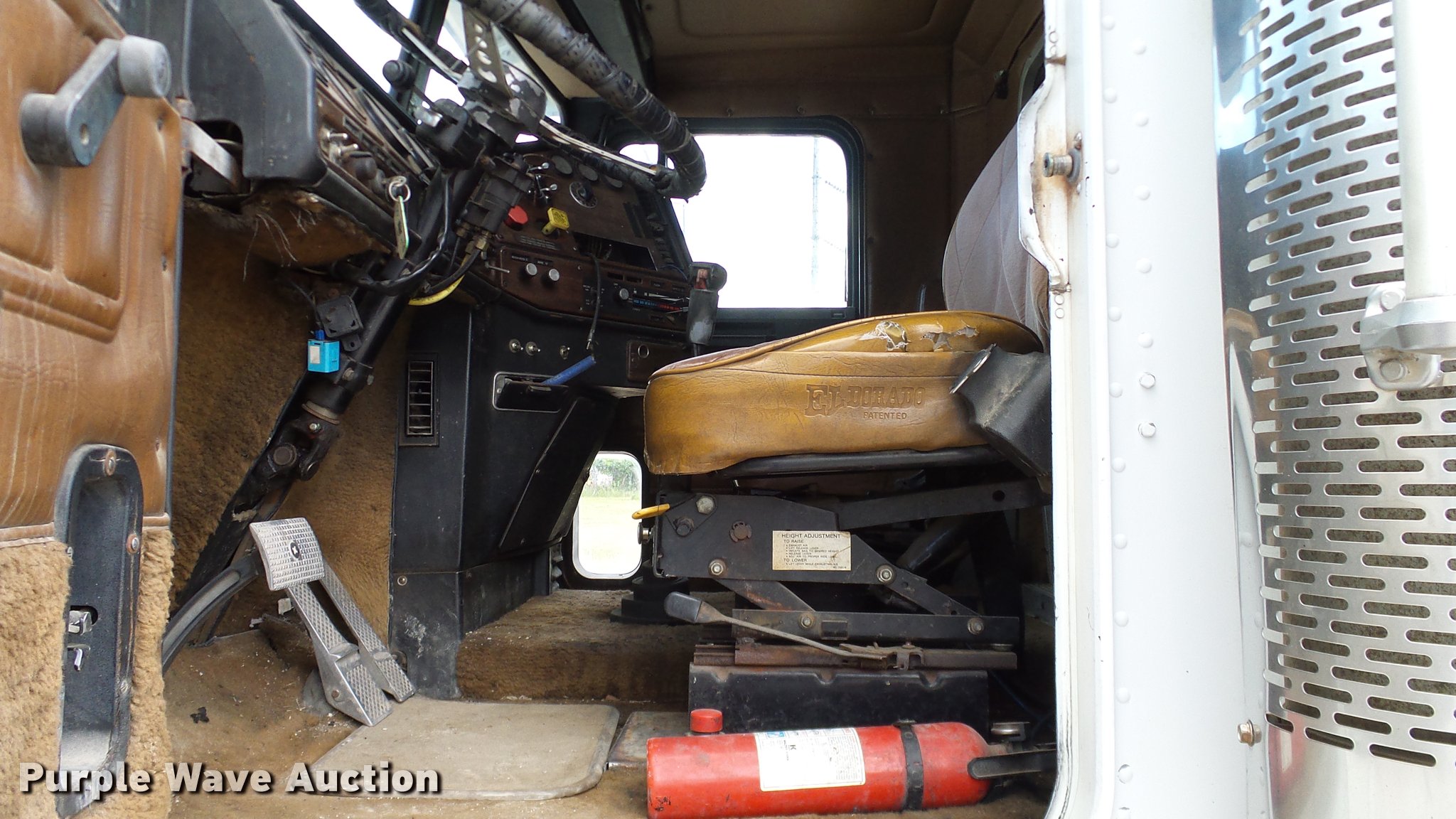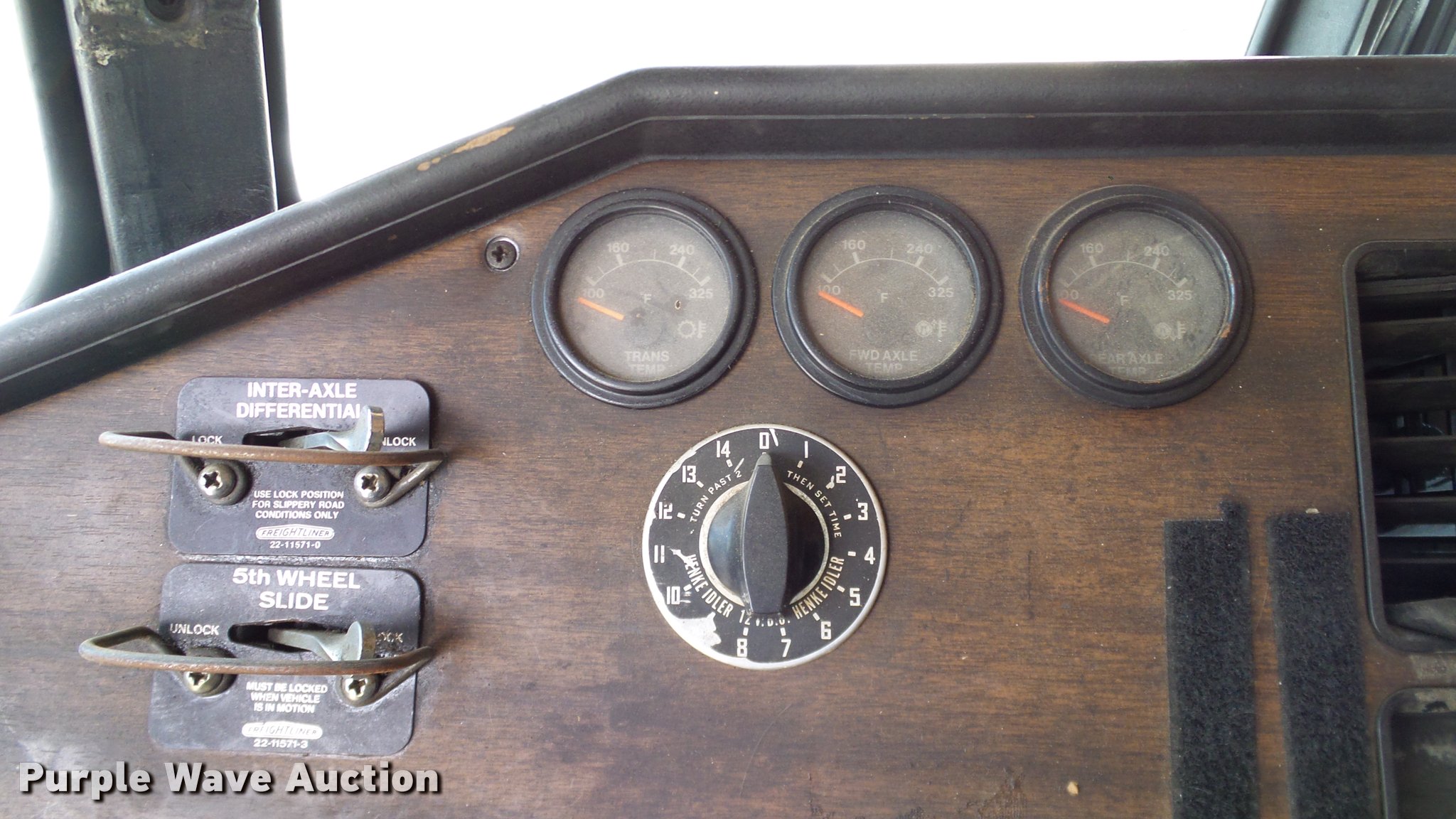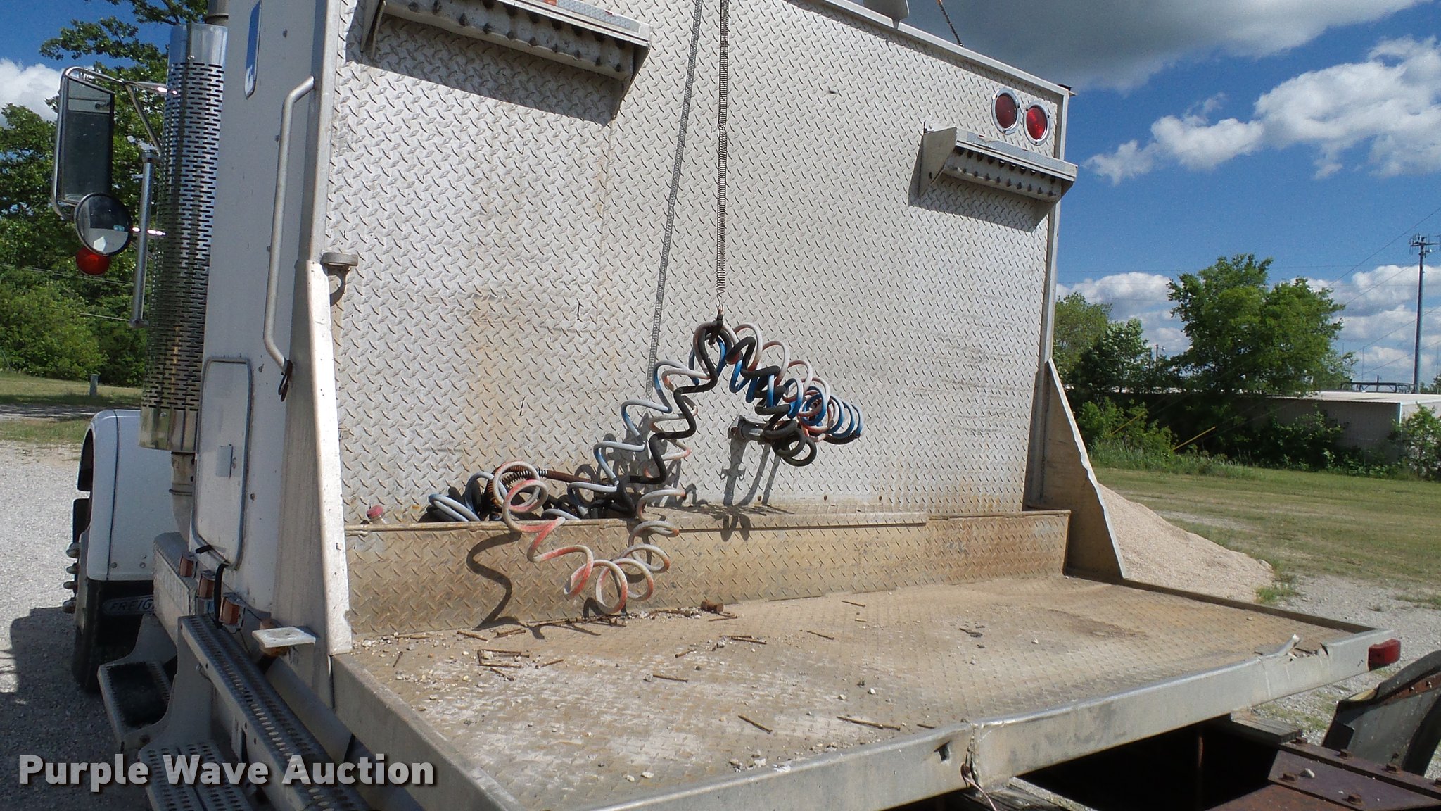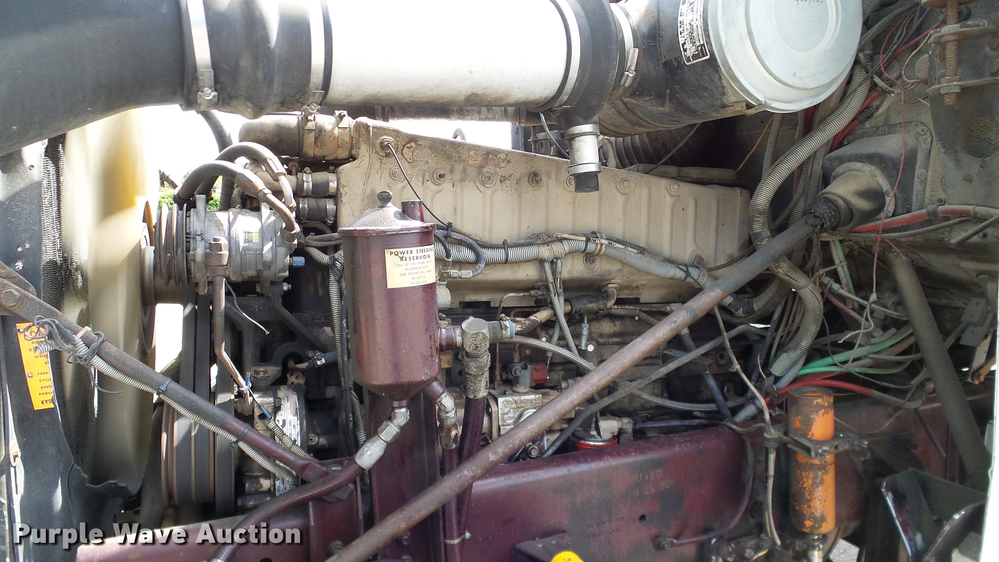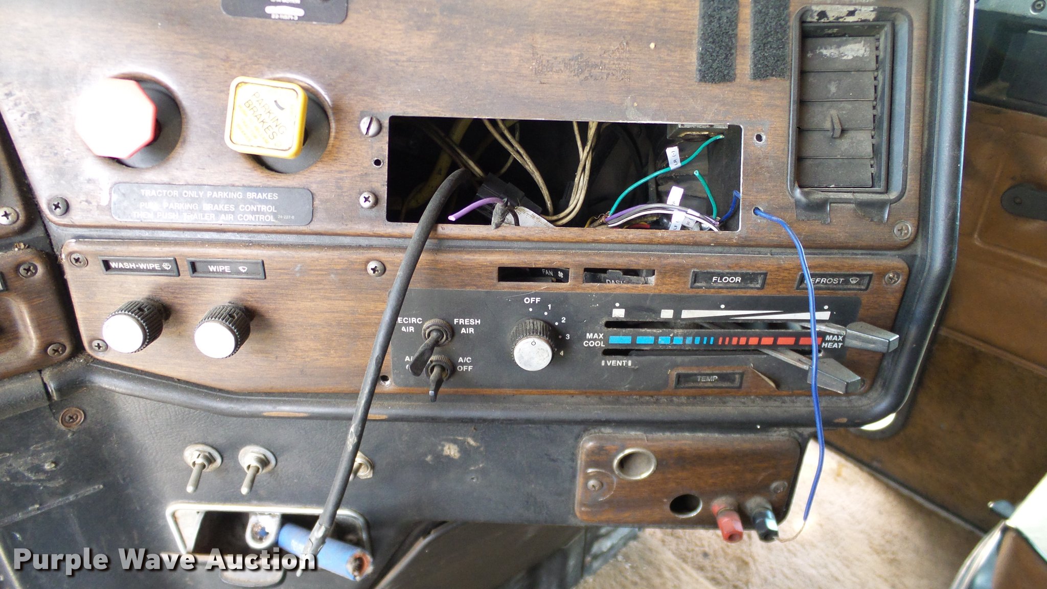 Purple Wave is selling a used Truck Tractor in Oklahoma. This item is a 1986 Freightliner FLC semi truck with the following: 750,374 miles on odometer, Cummins NTC-400 14.0L L6 six cylinder turbo diesel engine, Eaton Fuller manual transmission, Tandem axle, Inter-axle differential lock, AC and heat, Heated mirrors, Air suspension seat, 40" sleeper, Single bed, Ether start, Exterior visor, Beacon light, Single front exhaust stack, Aluminum deck plate, Air operated sliding fifth wheel plate, Aluminum headache rack, Chain hanger, Single fuel tank, Stainless steel quarter fenders, Mud flaps, Air suspension, Air brakes, Engine brake, 240" wheelbase, Aluminum wheels, 11R24.5 tires, Unit# D1-302-24