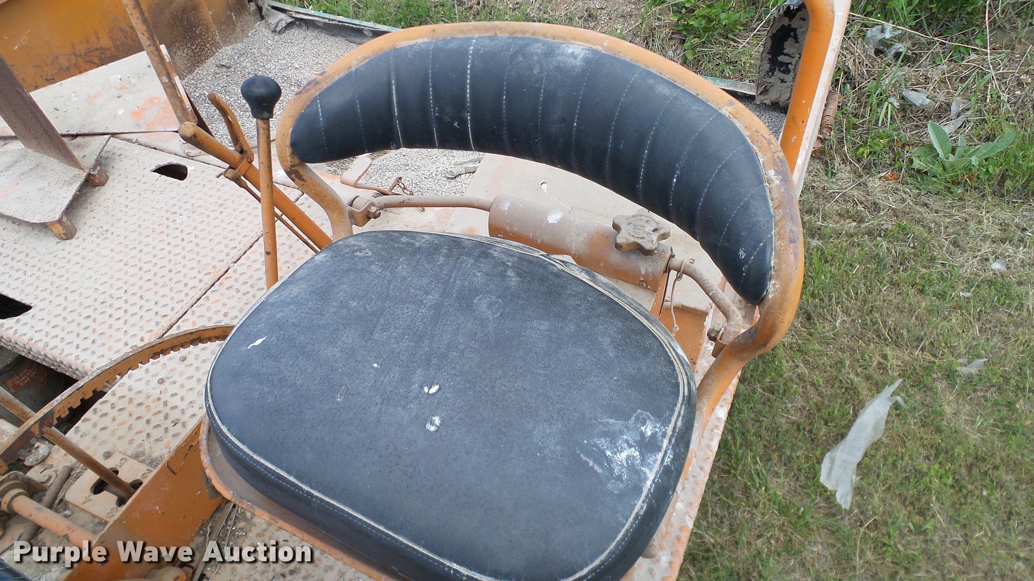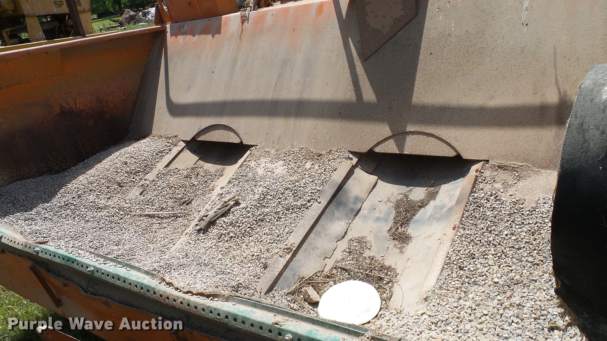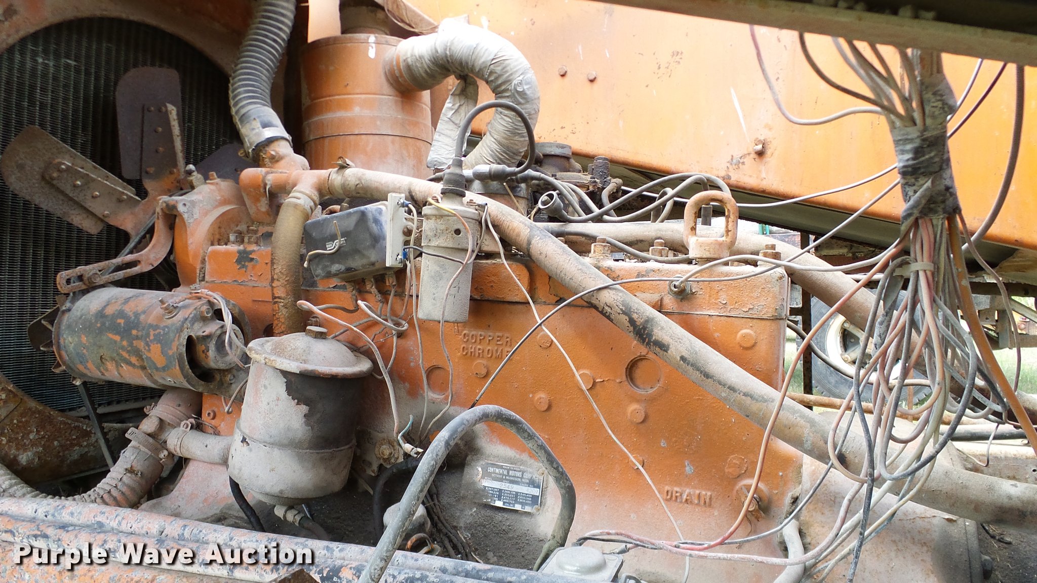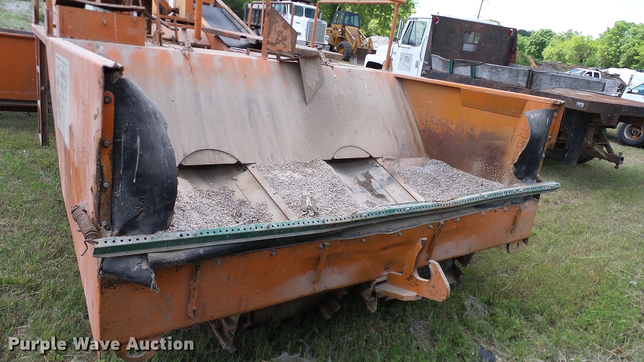 Purple Wave is selling a used Chip Spreader in Oklahoma. This item is a Spread Master Power Spreader K chip spreader with the following: Continental 1363 six cylinder gas engine, Serial 4207, Manual transmission, 5F-5R gears, (2) 20" conveyors, 4.5' x 64" gravel bin, 13' chipper, Rear pintle hitch, Rear tow/tie down points, 10.00R20 tires, Front left tire flat, No battery, Turns over, but will not start, Points may need to be replaced, Serial 2019, Unit# D-325-1