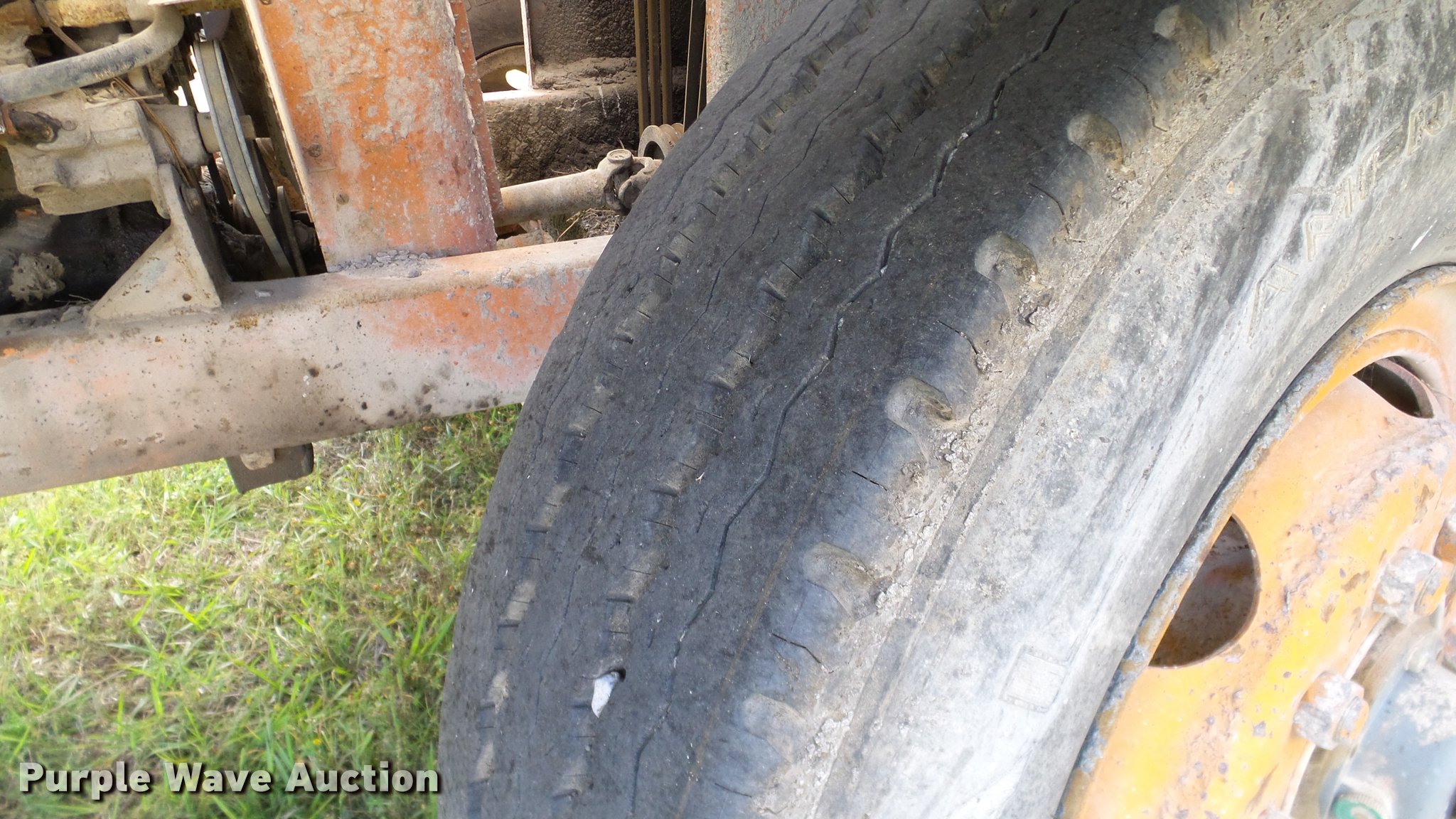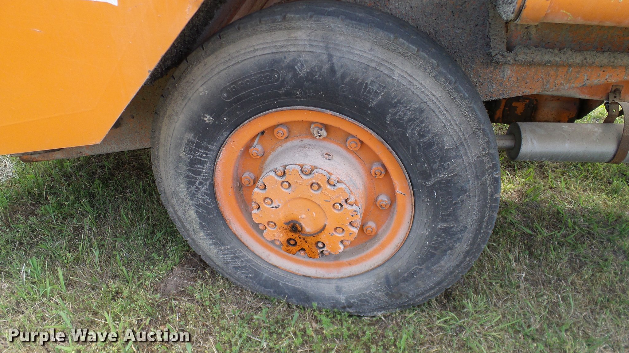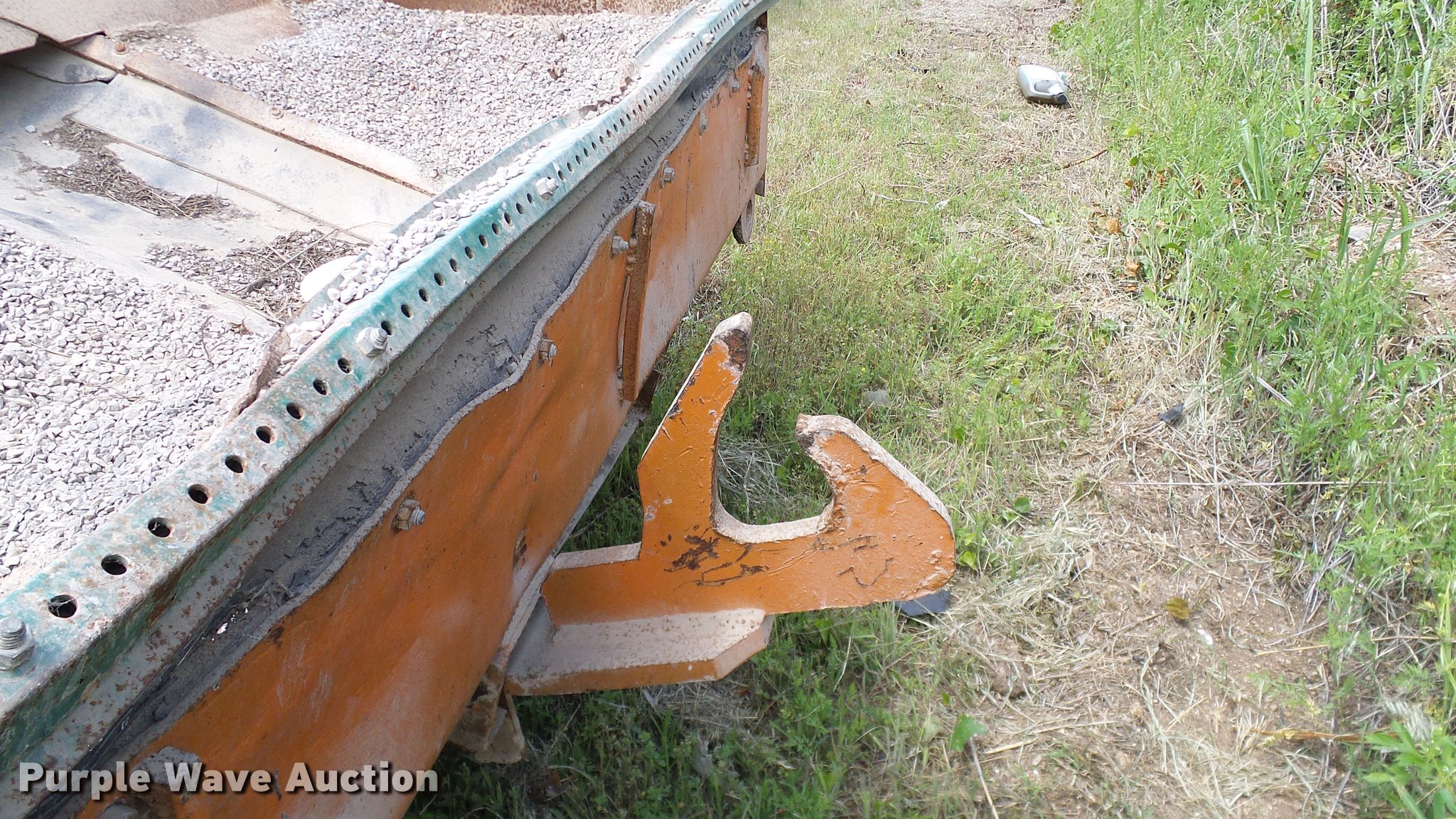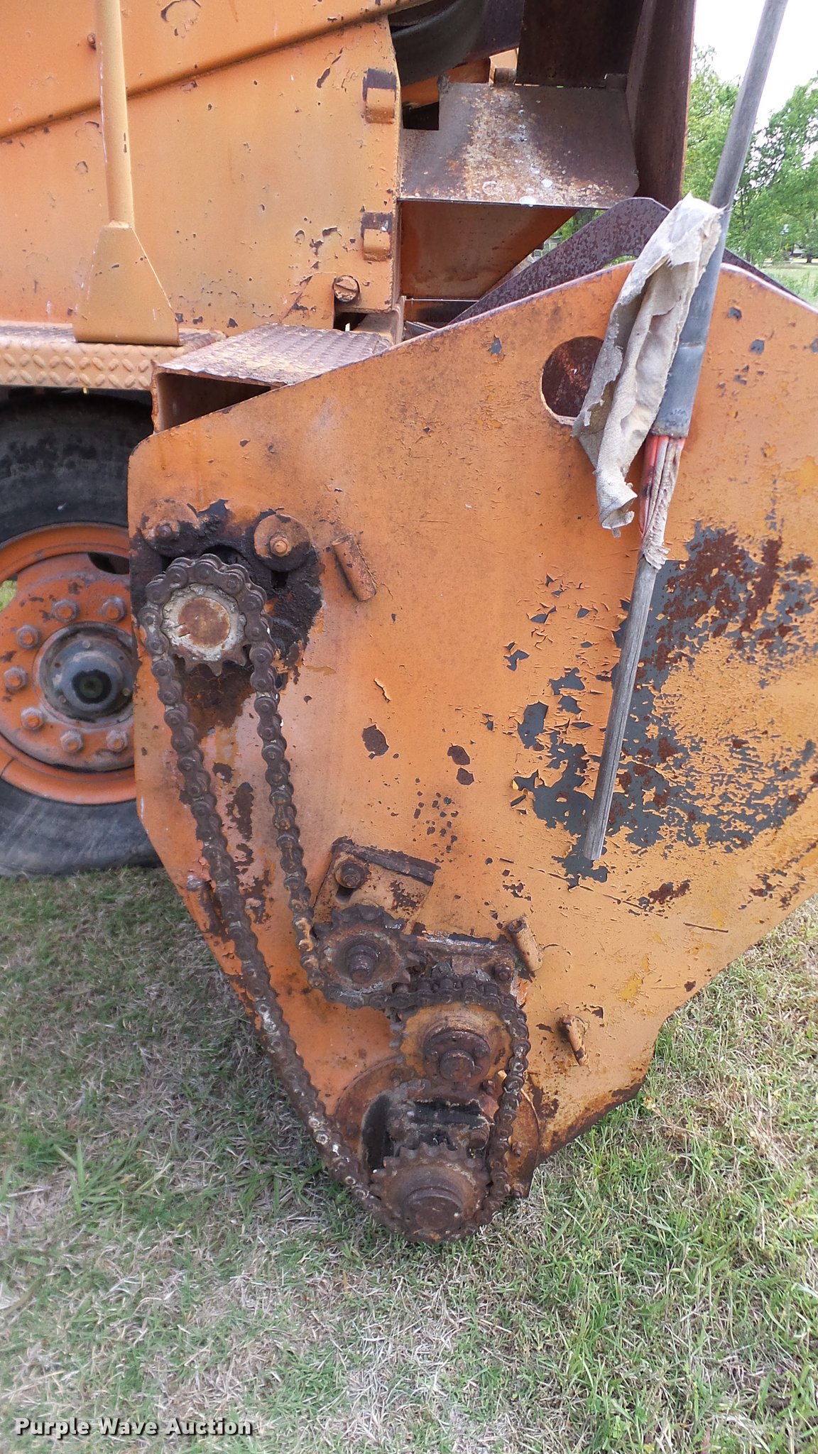 Purple Wave is selling a used Chip Spreader in Oklahoma. This item is a Spread Master Power Spreader K chip spreader with the following: Continental 1363 six cylinder gas engine, Serial 4207, Manual transmission, 5F-5R gears, (2) 20" conveyors, 4.5' x 64" gravel bin, 13' chipper, Rear pintle hitch, Rear tow/tie down points, 10.00R20 tires, Front left tire flat, No battery, Turns over, but will not start, Points may need to be replaced, Serial 2019, Unit# D-325-1