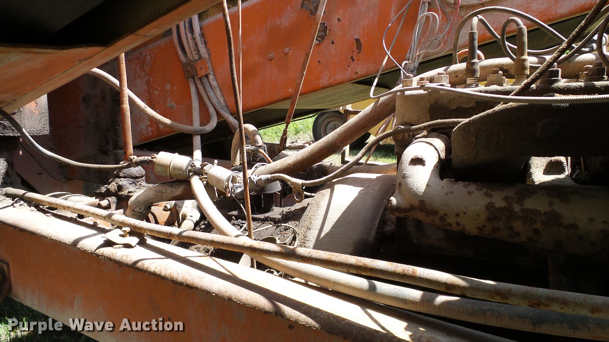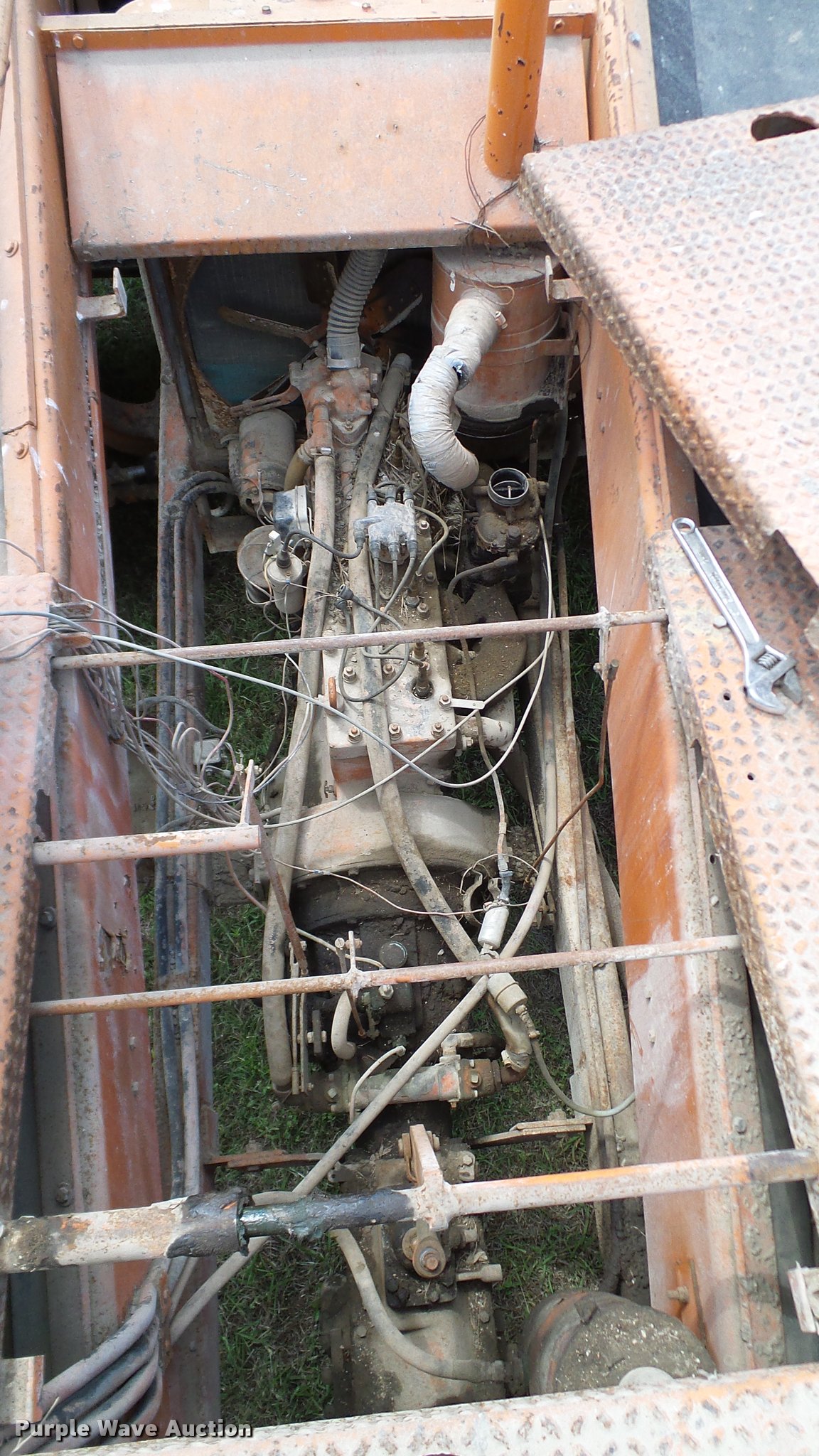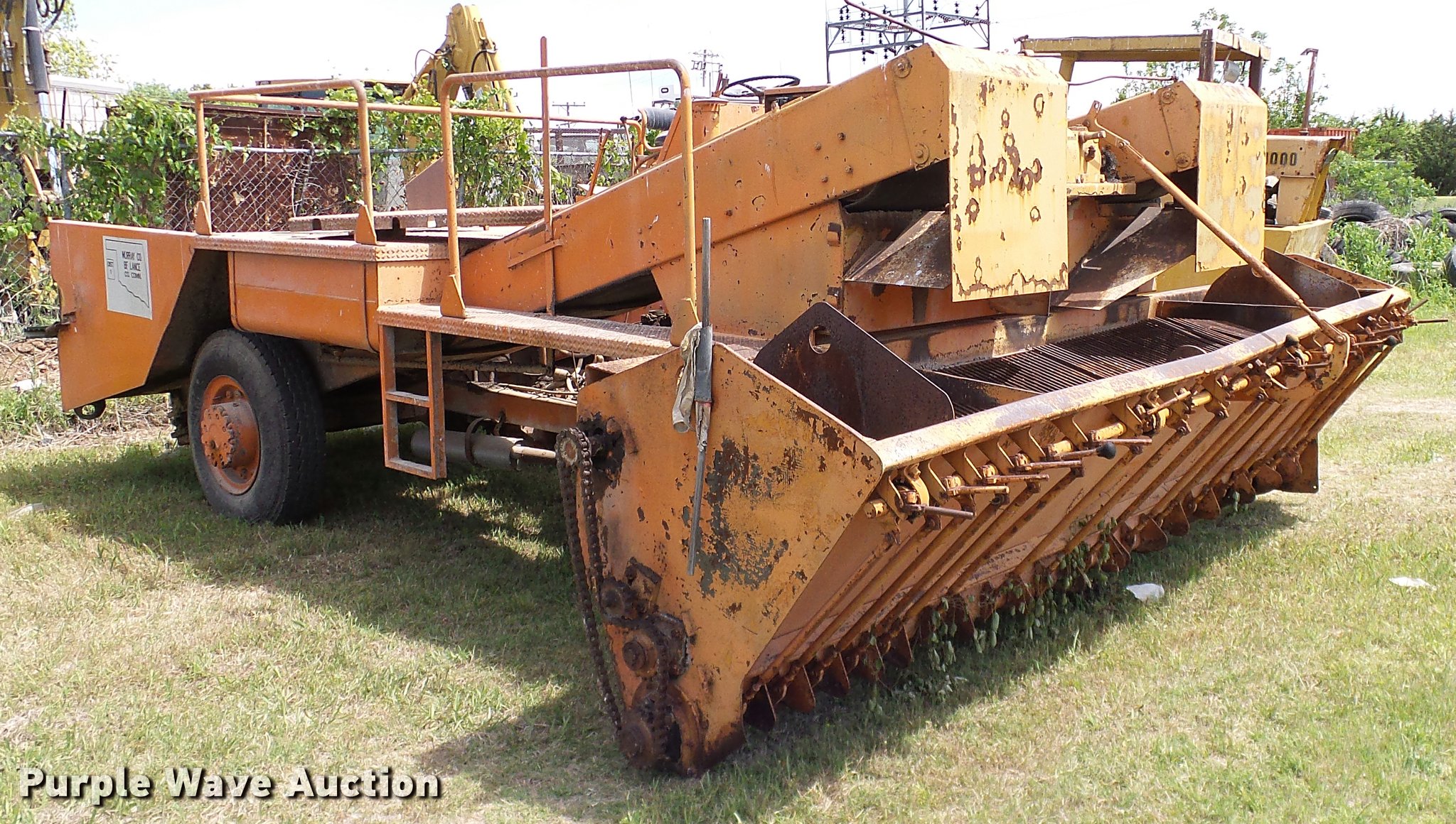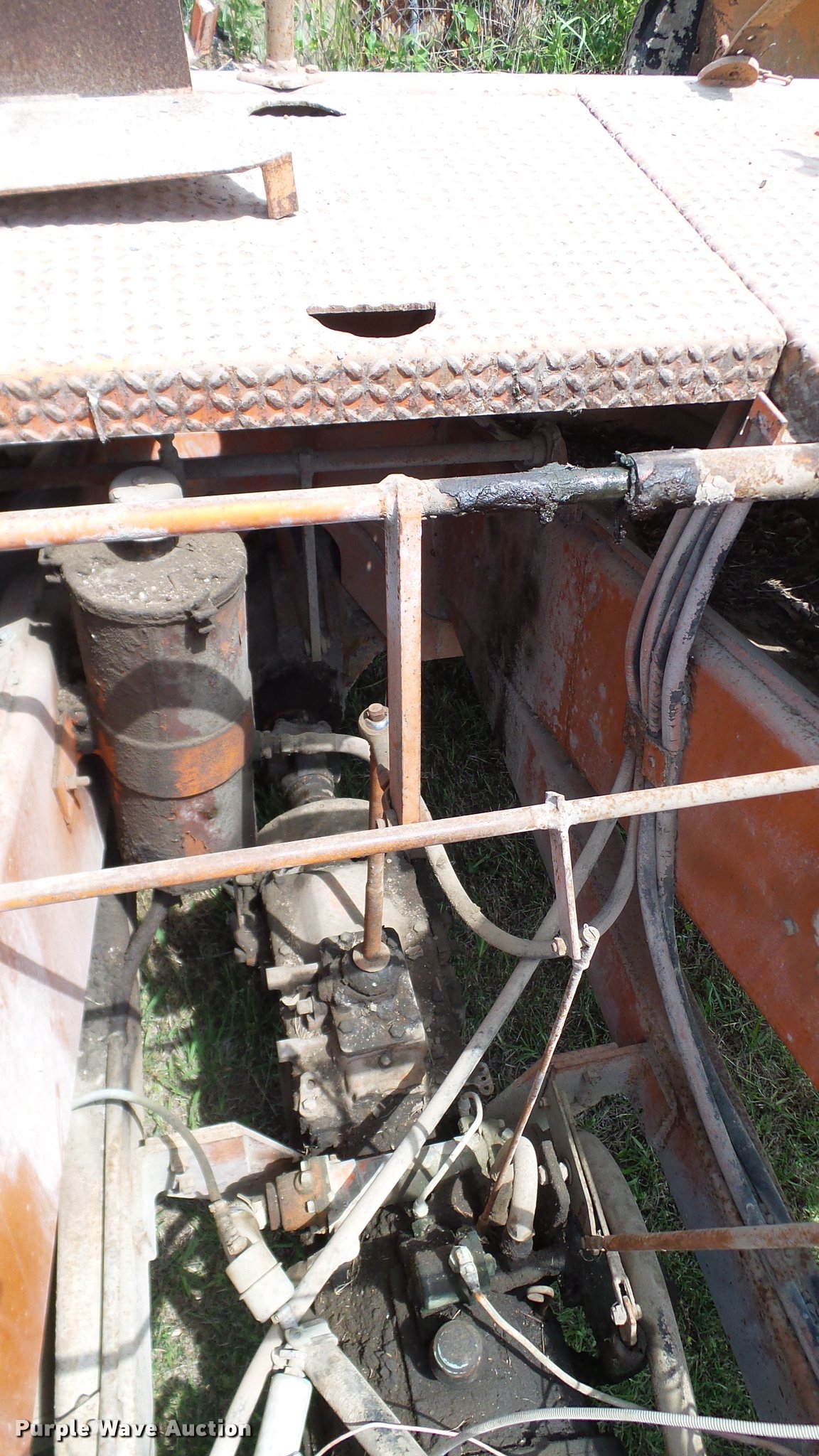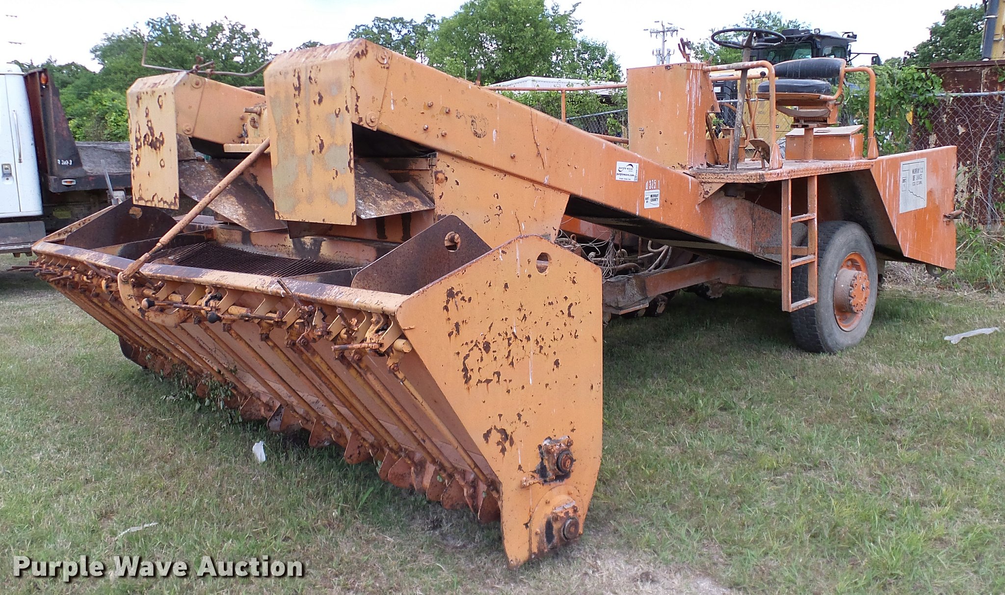 Purple Wave is selling a used Chip Spreader in Oklahoma. This item is a Spread Master Power Spreader K chip spreader with the following: Continental 1363 six cylinder gas engine, Serial 4207, Manual transmission, 5F-5R gears, (2) 20" conveyors, 4.5' x 64" gravel bin, 13' chipper, Rear pintle hitch, Rear tow/tie down points, 10.00R20 tires, Front left tire flat, No battery, Turns over, but will not start, Points may need to be replaced, Serial 2019, Unit# D-325-1