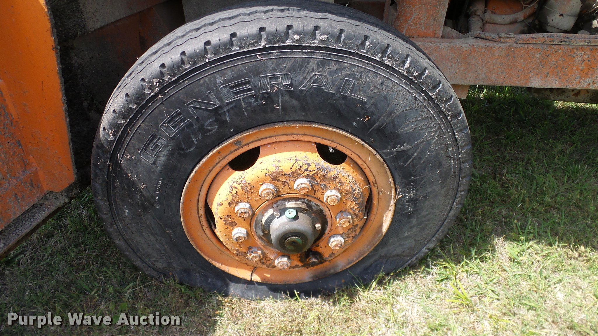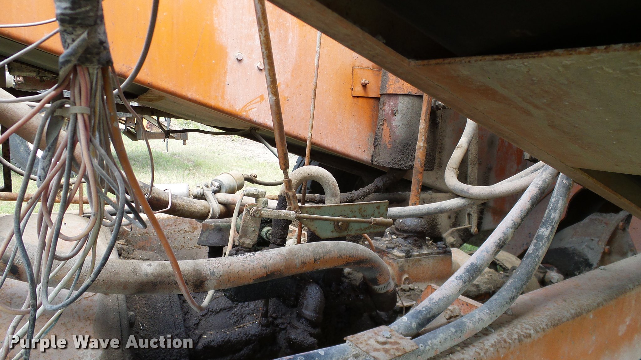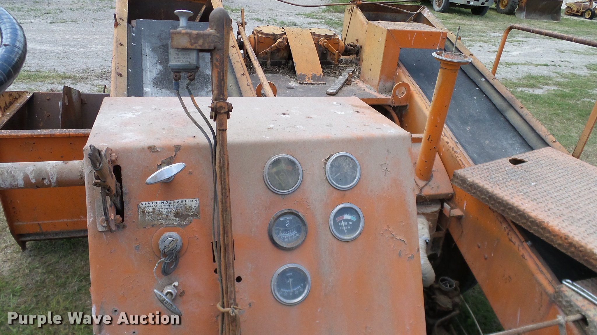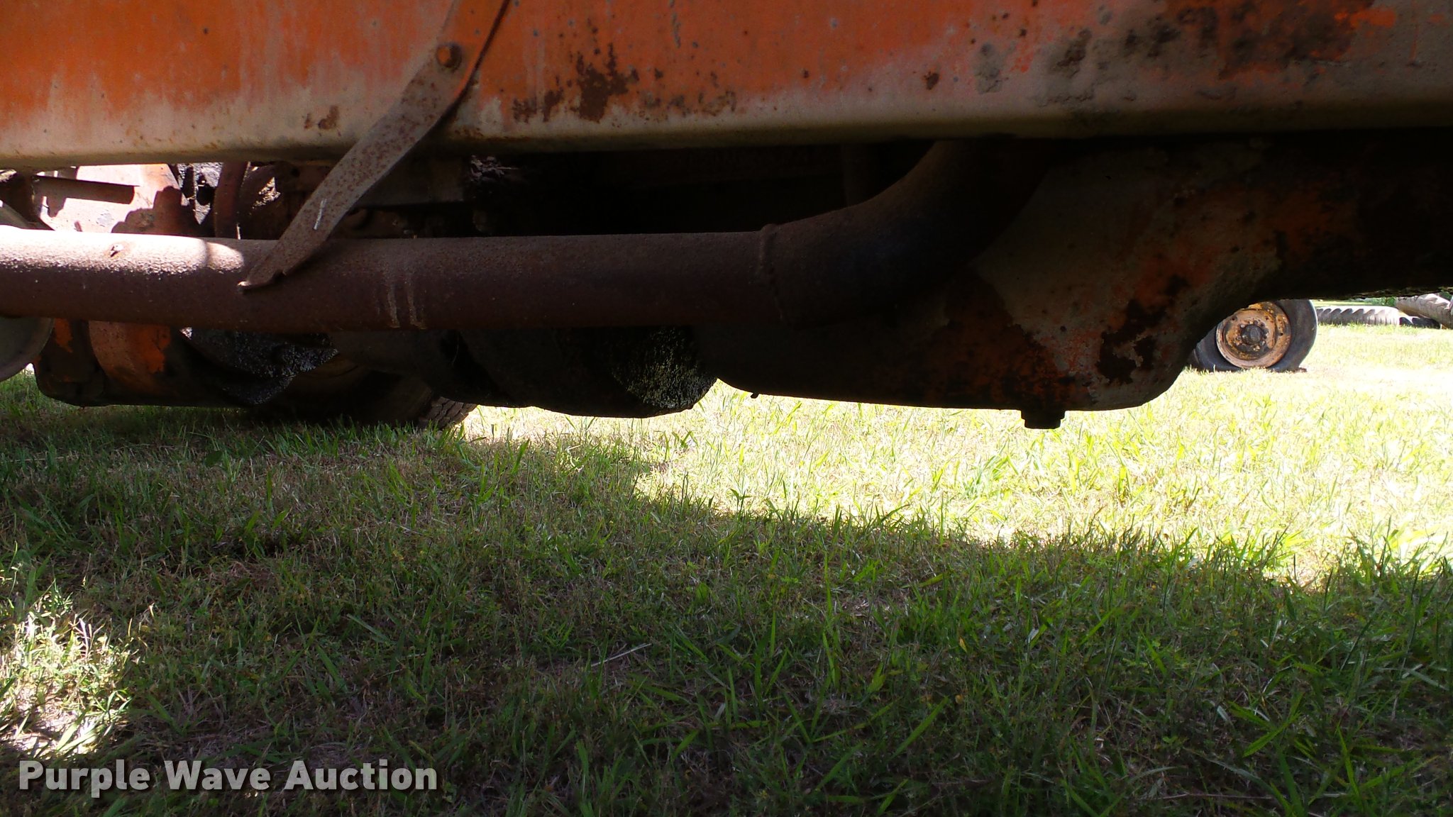 Purple Wave is selling a used Chip Spreader in Oklahoma. This item is a Spread Master Power Spreader K chip spreader with the following: Continental 1363 six cylinder gas engine, Serial 4207, Manual transmission, 5F-5R gears, (2) 20" conveyors, 4.5' x 64" gravel bin, 13' chipper, Rear pintle hitch, Rear tow/tie down points, 10.00R20 tires, Front left tire flat, No battery, Turns over, but will not start, Points may need to be replaced, Serial 2019, Unit# D-325-1