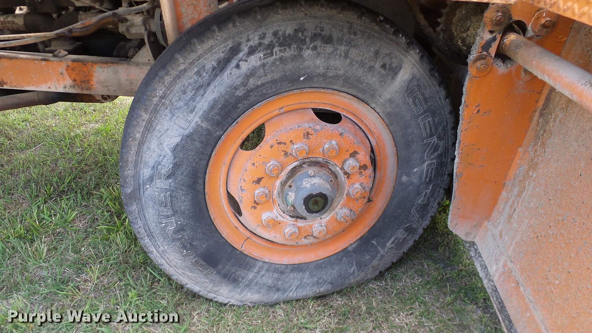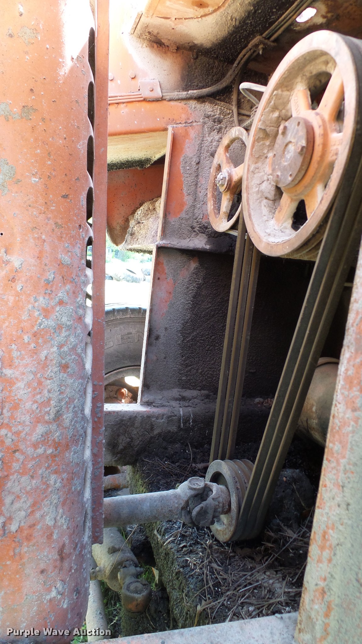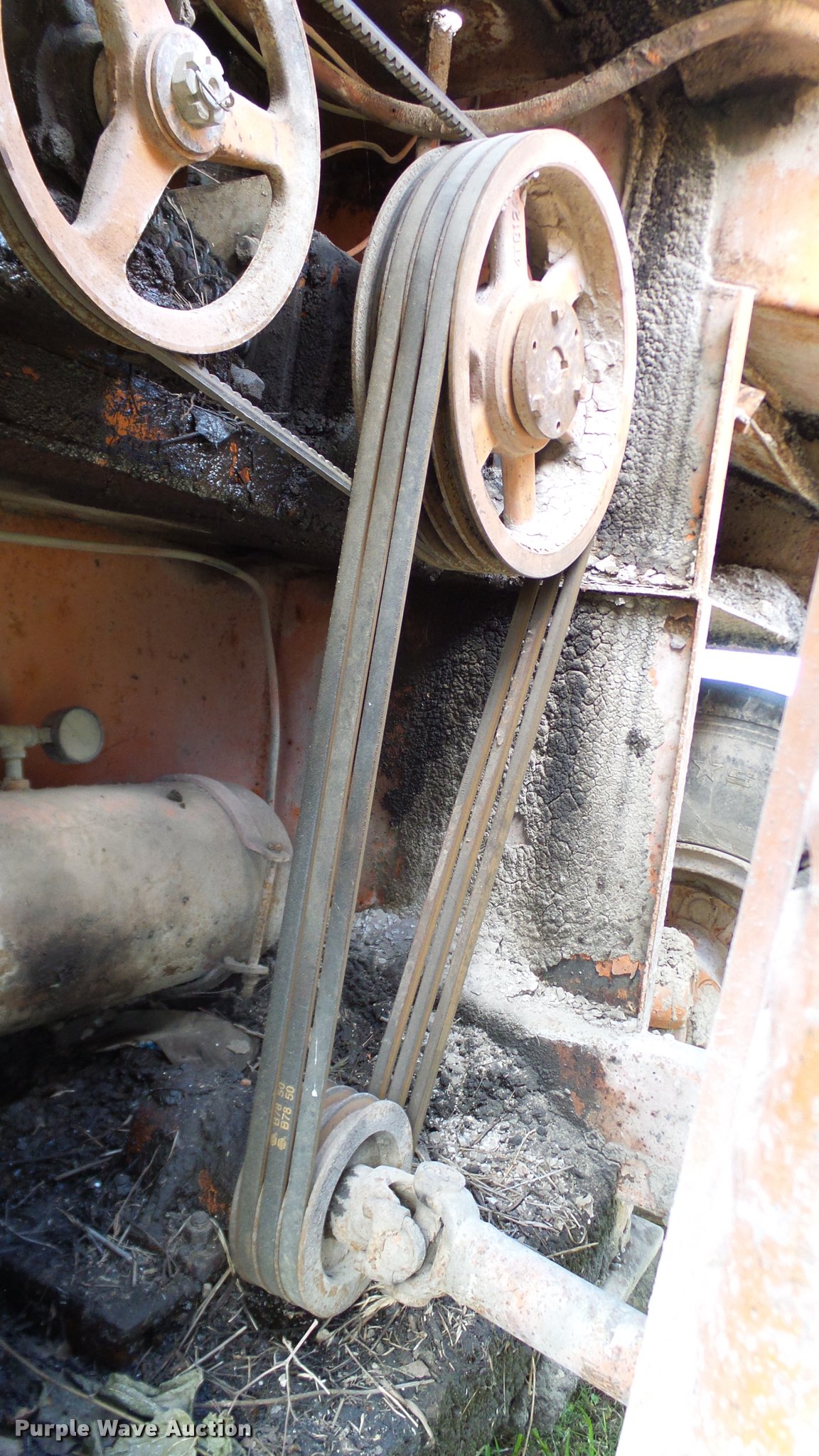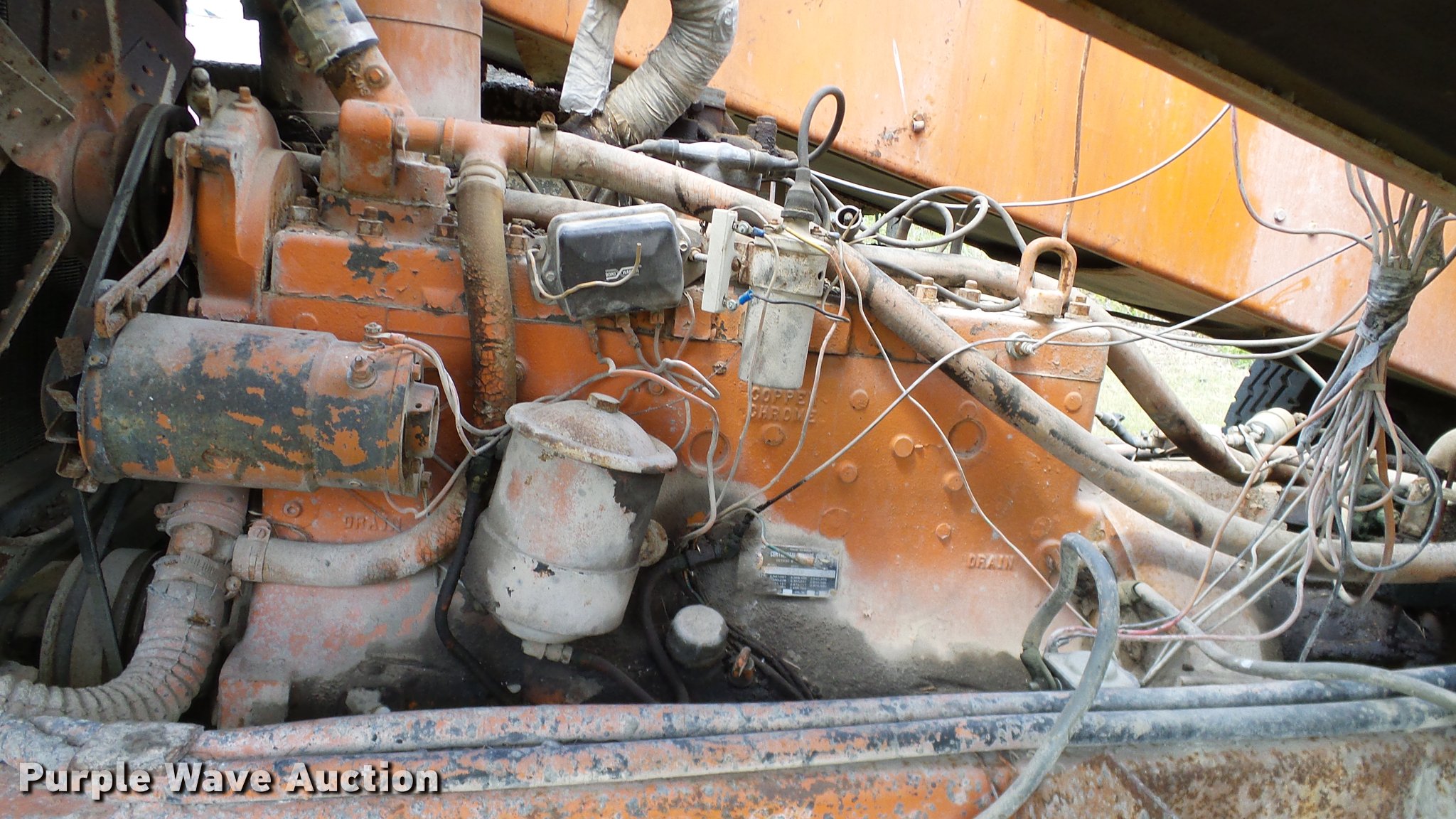 Purple Wave is selling a used Chip Spreader in Oklahoma. This item is a Spread Master Power Spreader K chip spreader with the following: Continental 1363 six cylinder gas engine, Serial 4207, Manual transmission, 5F-5R gears, (2) 20" conveyors, 4.5' x 64" gravel bin, 13' chipper, Rear pintle hitch, Rear tow/tie down points, 10.00R20 tires, Front left tire flat, No battery, Turns over, but will not start, Points may need to be replaced, Serial 2019, Unit# D-325-1