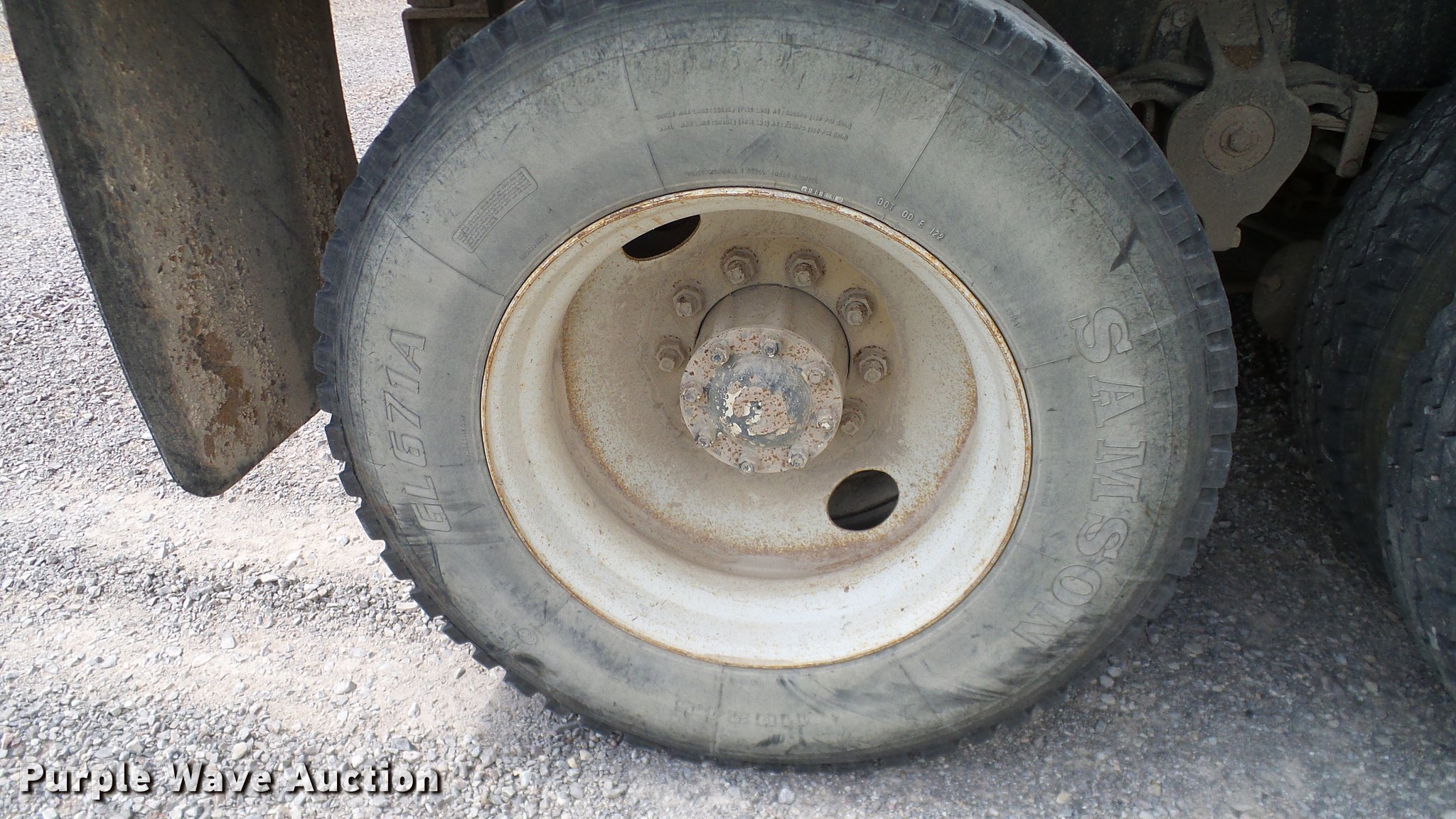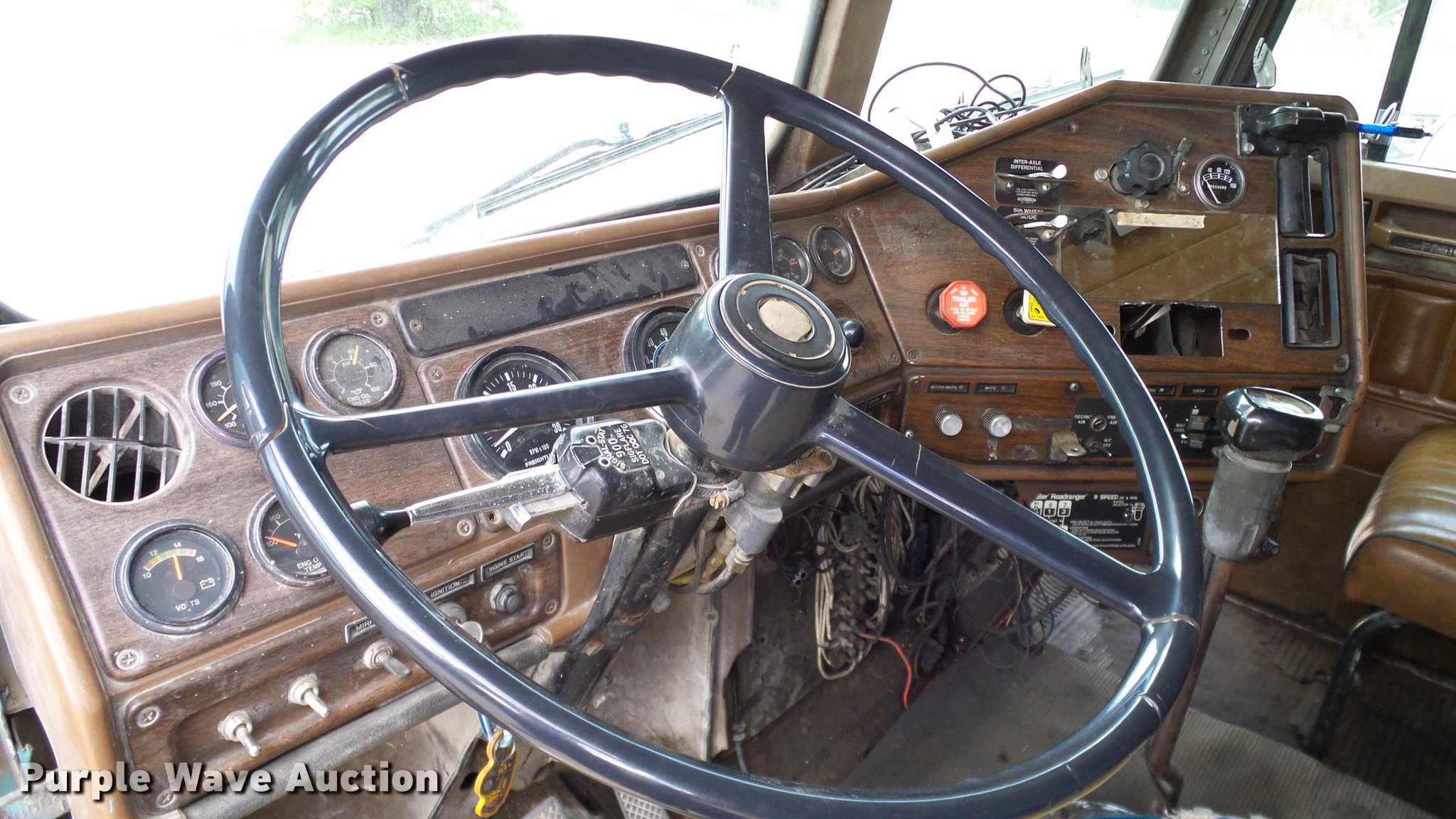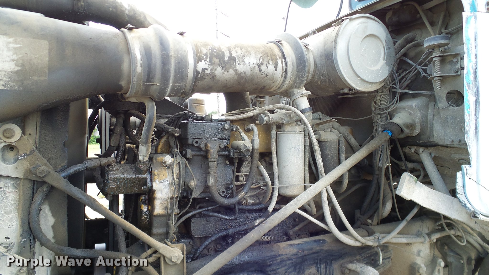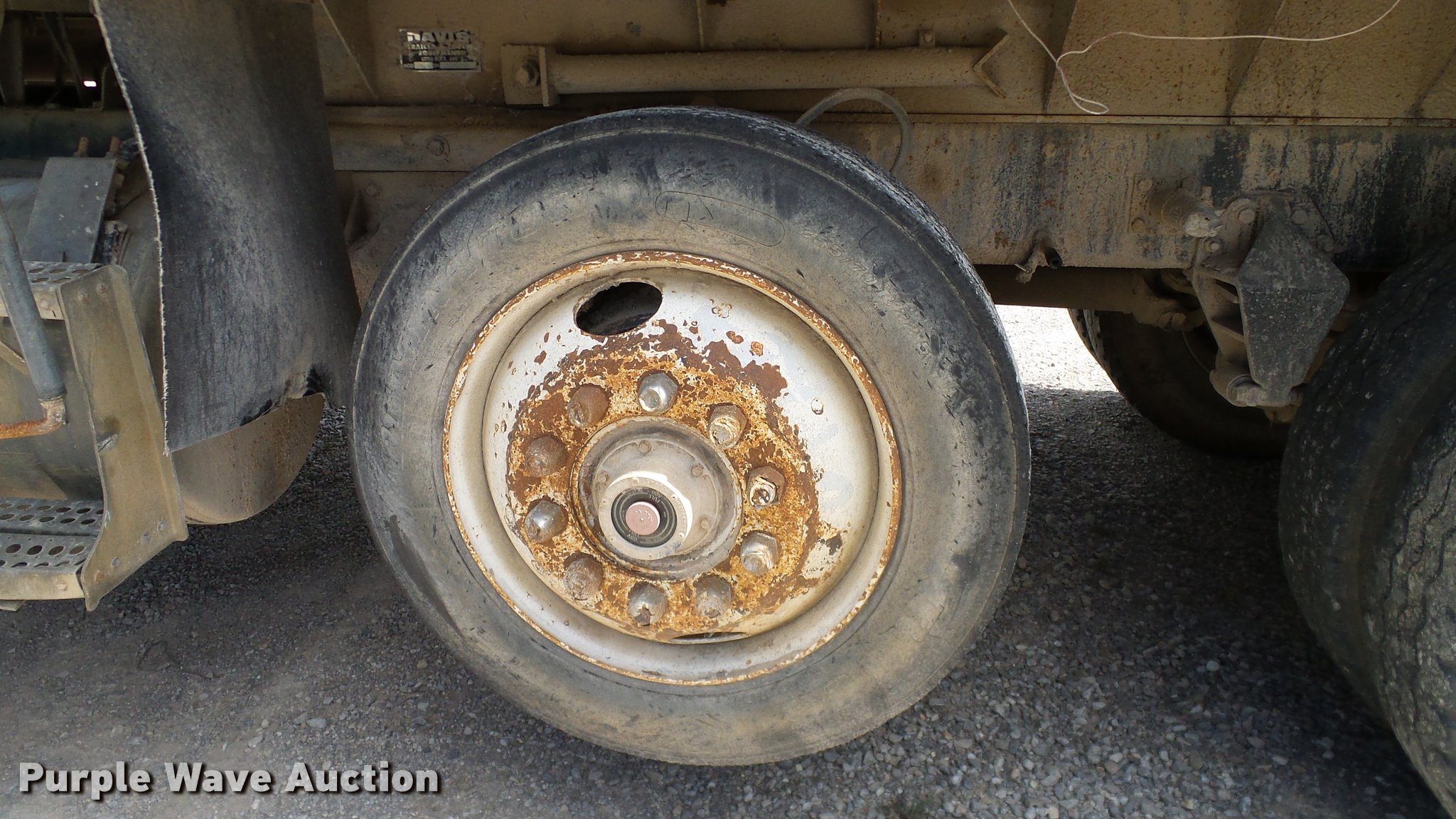 Purple Wave is selling a used Construction Dump Truck in Oklahoma. This item is a 1987 Freightliner FLC dump truck with the following: 596,127 miles on odometer, Caterpillar 14.6L L6 turbo diesel engine, Eaton Fuller nine speed manual transmission, Tandem axle, Tag lift axle, Inter-axle differential lock, AC and heat, Heated mirrors, Air suspension seat, Front tow hooks, Chrome bumper, PTO, Davis HD-77215 steel dump bed, 15.5'L x 8'W, 39" side height, 10" side board height, Rollover tarp, Manual end gate, Single fuel tank, Spring suspension, Air brakes, Engine brake, 204" wheelbase, 11R24.5 tires, Unit# D1-302-22