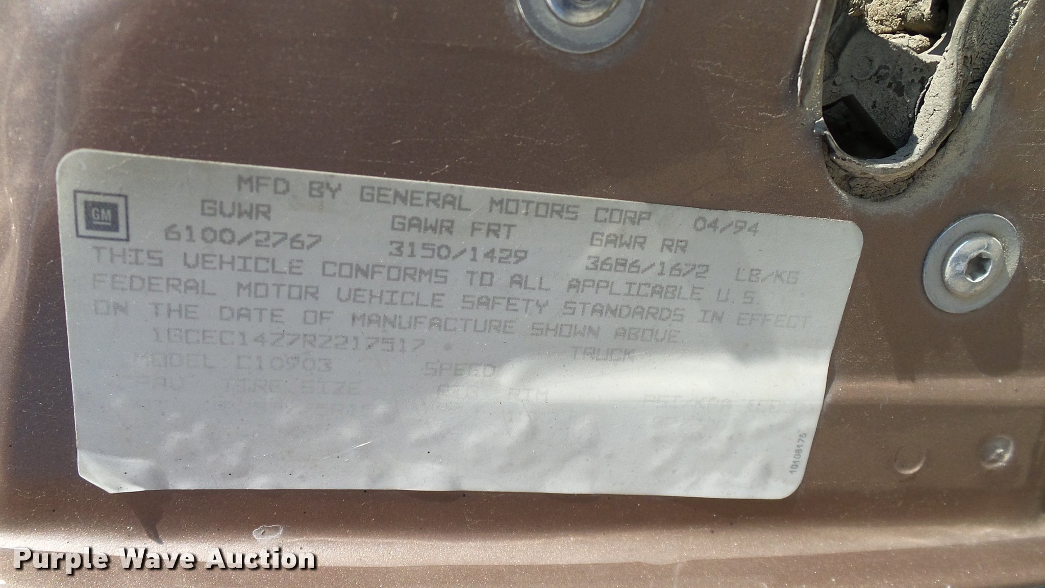 Purple Wave is selling a used 1/2 Ton Pickup or Van in Oklahoma. This item is a 1994 Chevrolet Cheyenne 1500 pickup truck with the following: 234,787 miles on odometer, 4.3L V6 OHV 12V gas engine, Automatic transmission, AC and heat, AM/FM, Manual windows and locks, Cloth interior, Long bed, Plastic bed liner, 235/75R15 tires, Unit# D3-302-10
