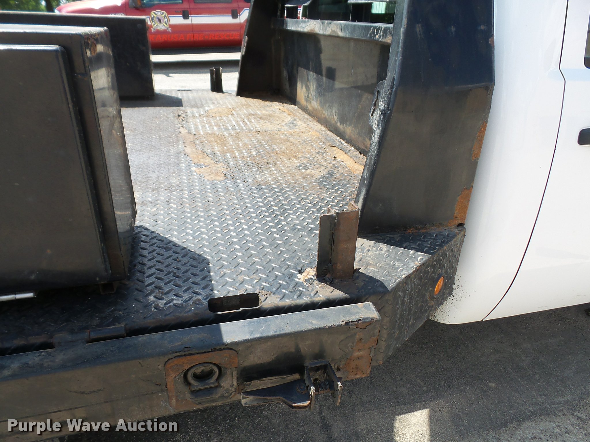 2009 GMC Sierra 3500HD flatbed pickup truck. 96,559 miles on odometer, 6.0L V8 OHV 16V gas engine, Automatic transmission, Four wheel drive, AC and heat, Tilt, AM/FM/CD, Manual windows and locks, Vinyl interior, Front tow hooks, Strobe light, Bradford Built flatbed 9'4"L x 96"W, Toolbox, Gooseneck ball, Receiver hitch, 225/75R17 tires, Seat torn, Pintle hitch receiver is not included, Maintenance records available upon request. Kansas title. 1GDJK74K99E123245. Wakarusa Township. 300 W 31st St. Lawrence, KS 66046
