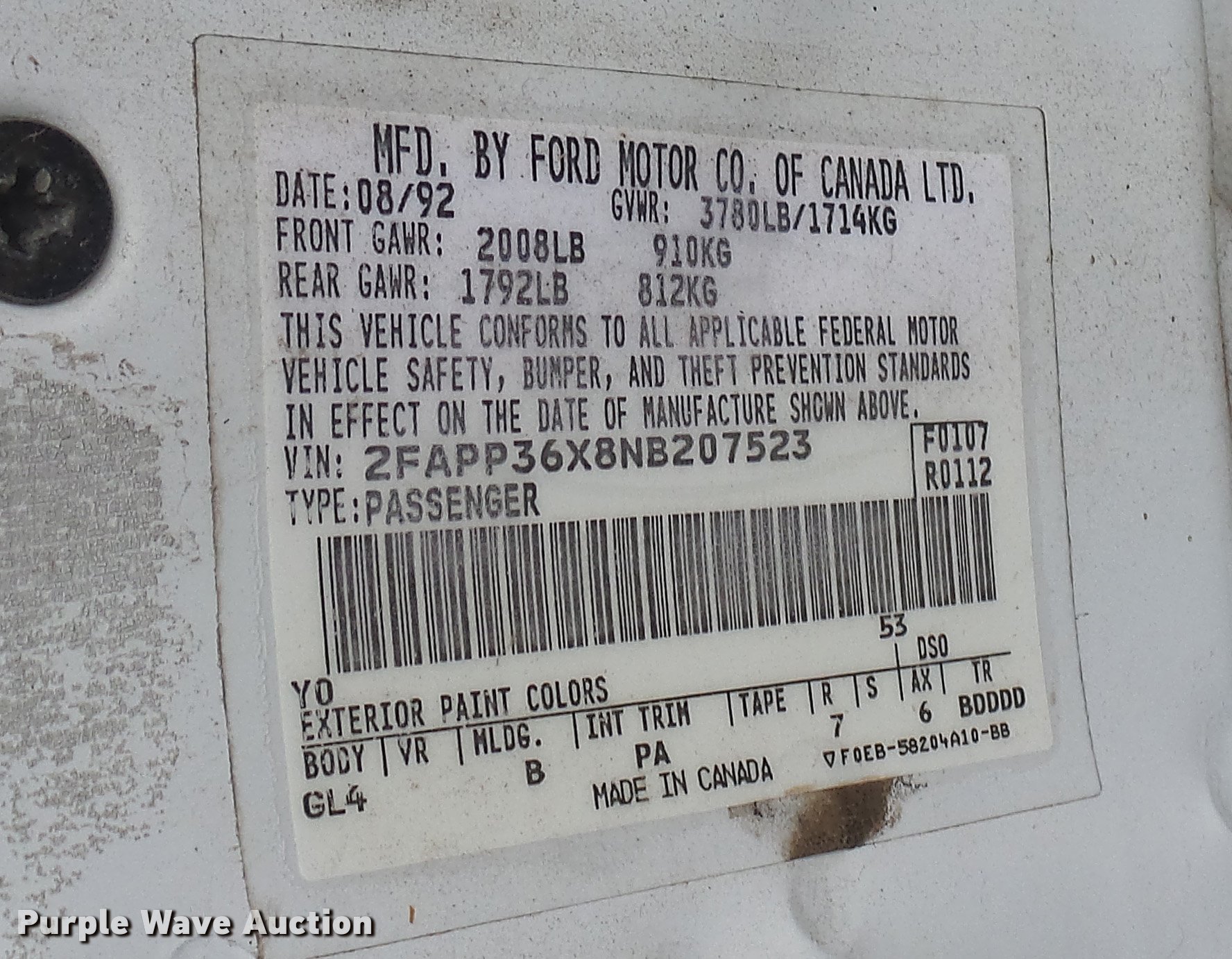 Purple Wave is selling a used Passenger Vehicle in Kansas. This item is a 1992 Ford Tempo GL with the following: 51,661 miles on odometer, 2.3L L4 OHV 8V gas engine, Automatic transmission, AC and heat, Cruise, AM/FM, Manual windows and locks, Cloth interior, P185/70R14 tires, Body damage