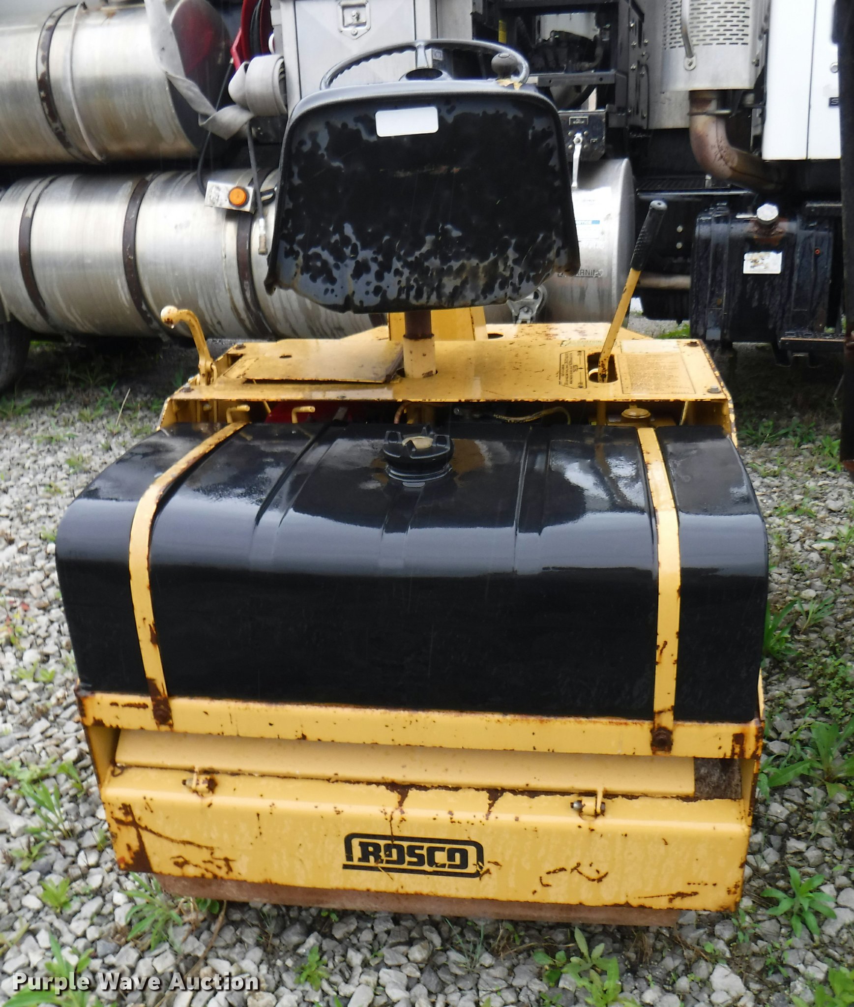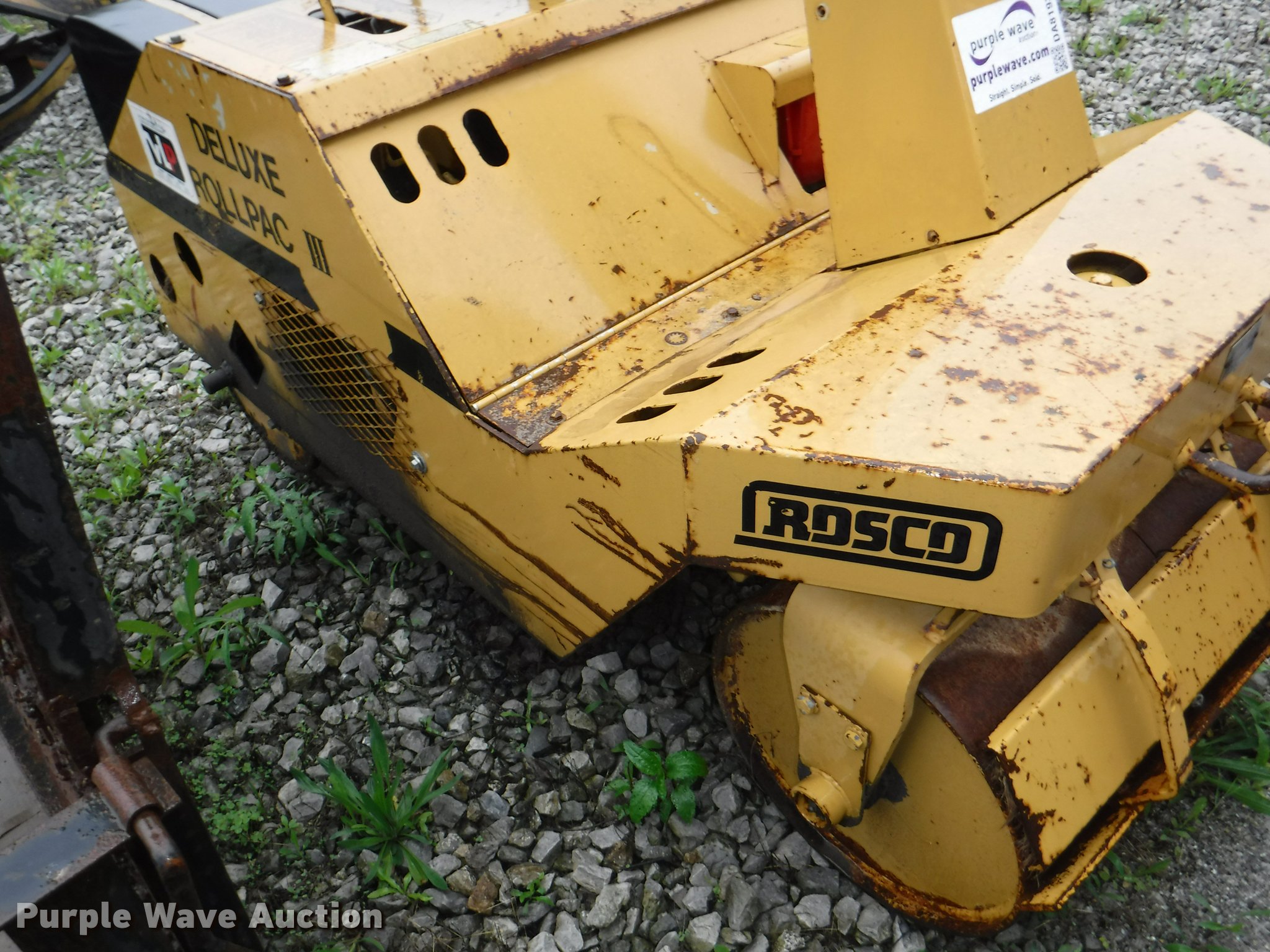 Purple Wave is selling a used Double Drum Roller Compactor in Missouri. This item is a Rosco Deluxe Roll Pac III double drum roller with the following: Kohler gas engine, 27.5"W smooth front drum, 34"W smooth rear drum, Dead battery, Unknown operating condition, Serial 32600