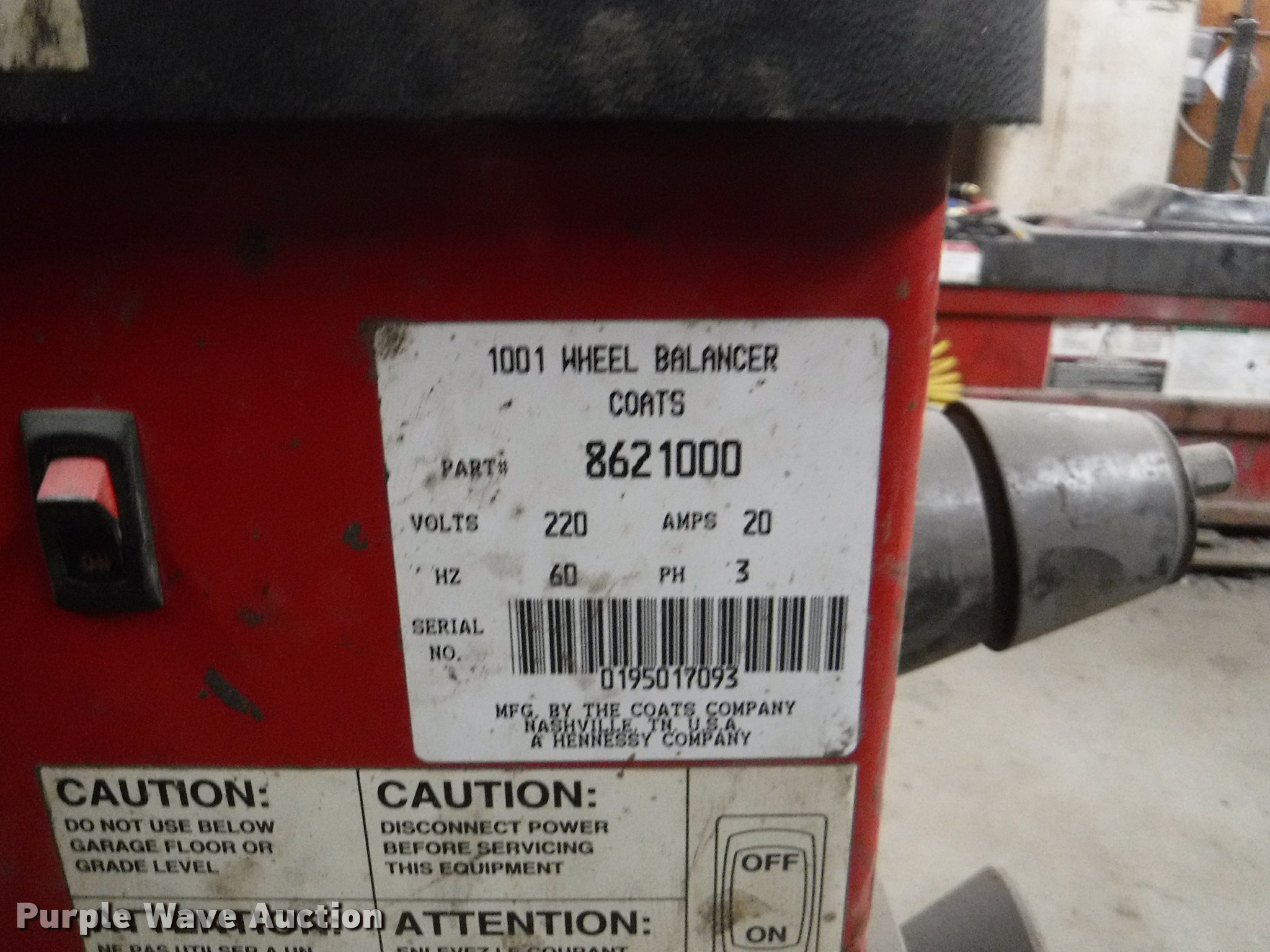 Coats 1001 tire balancer has sold in St. Joseph, Missouri for $357.50. Item DA8196 sold on June 6th, 2017.