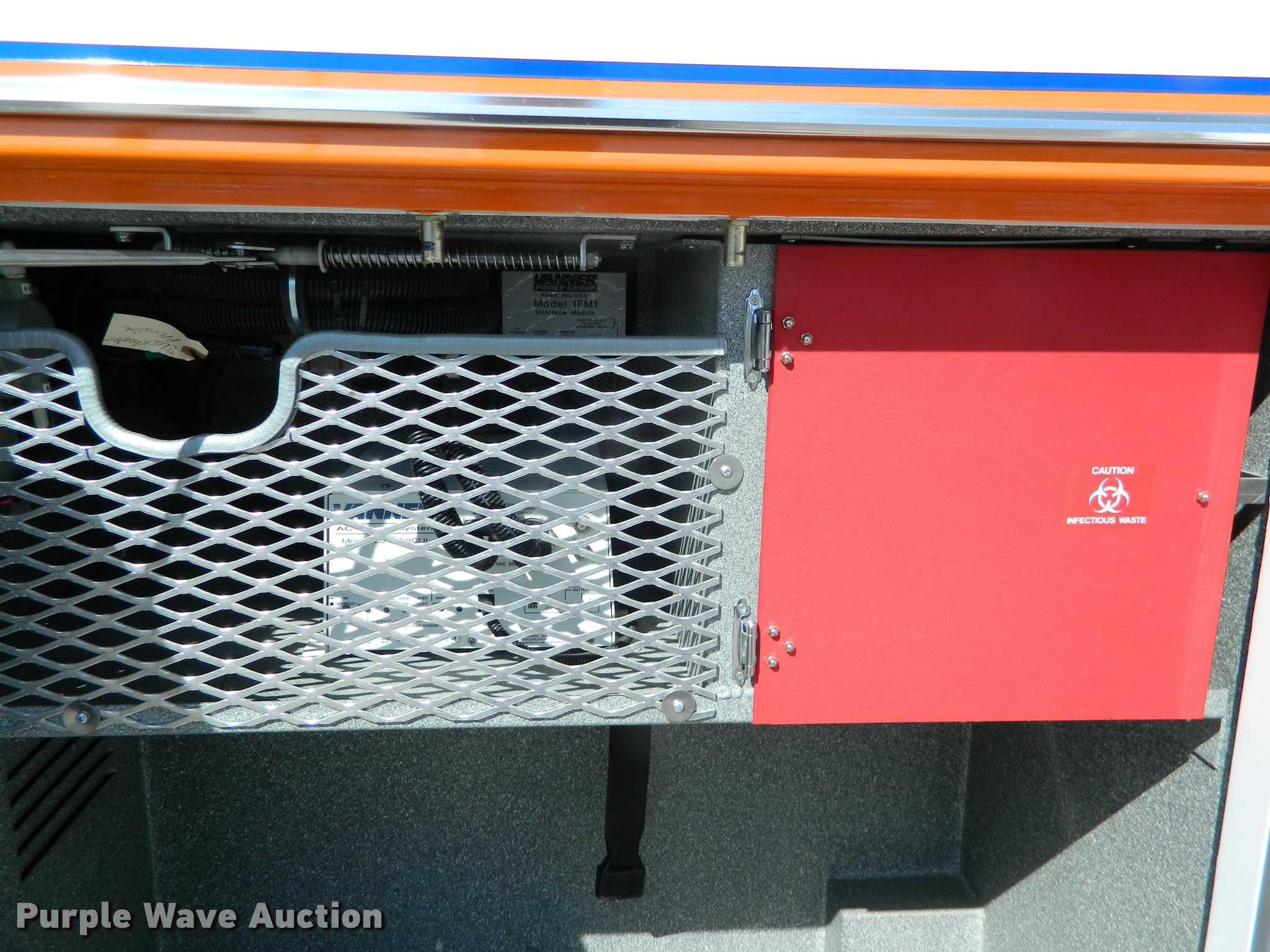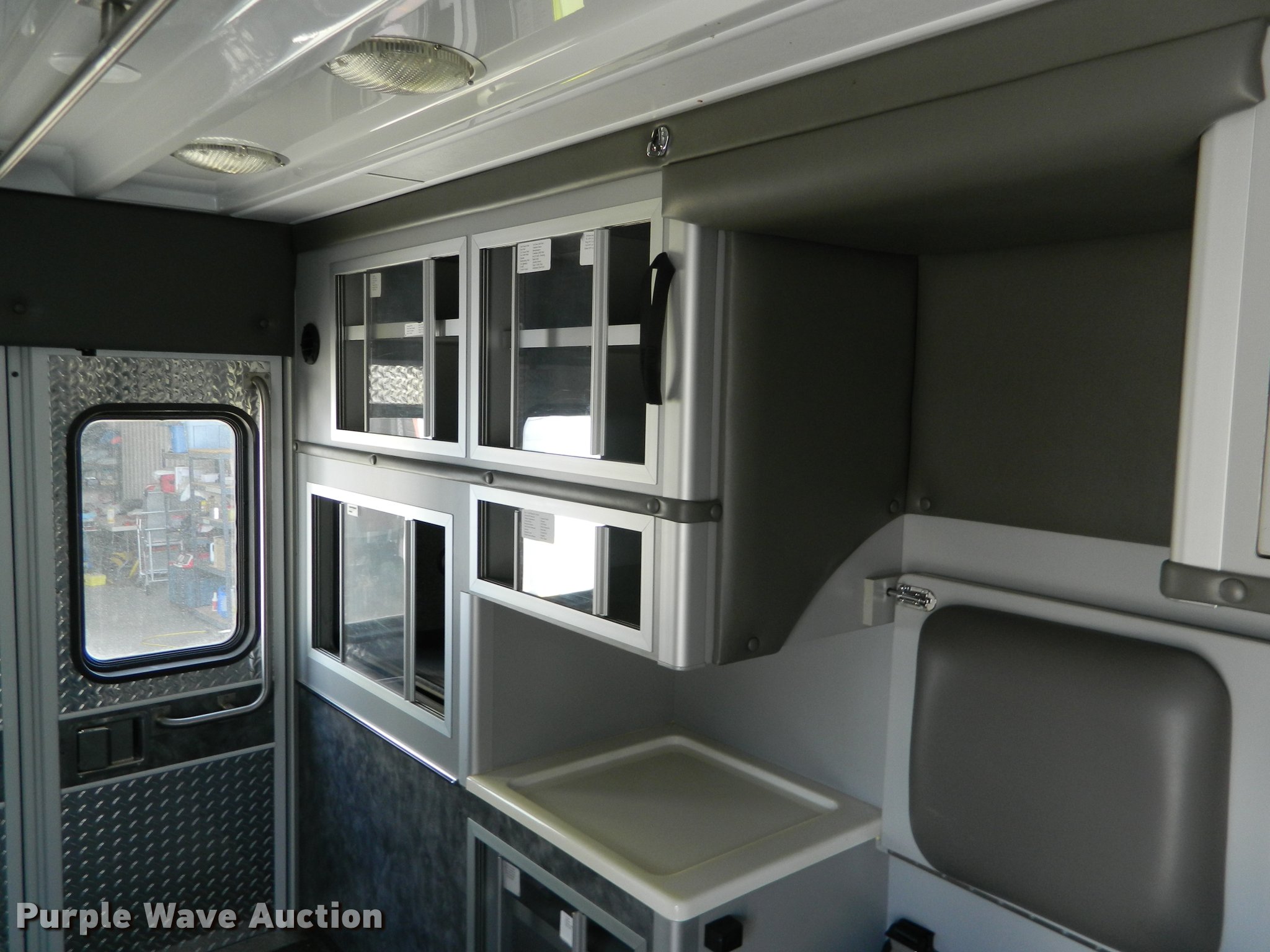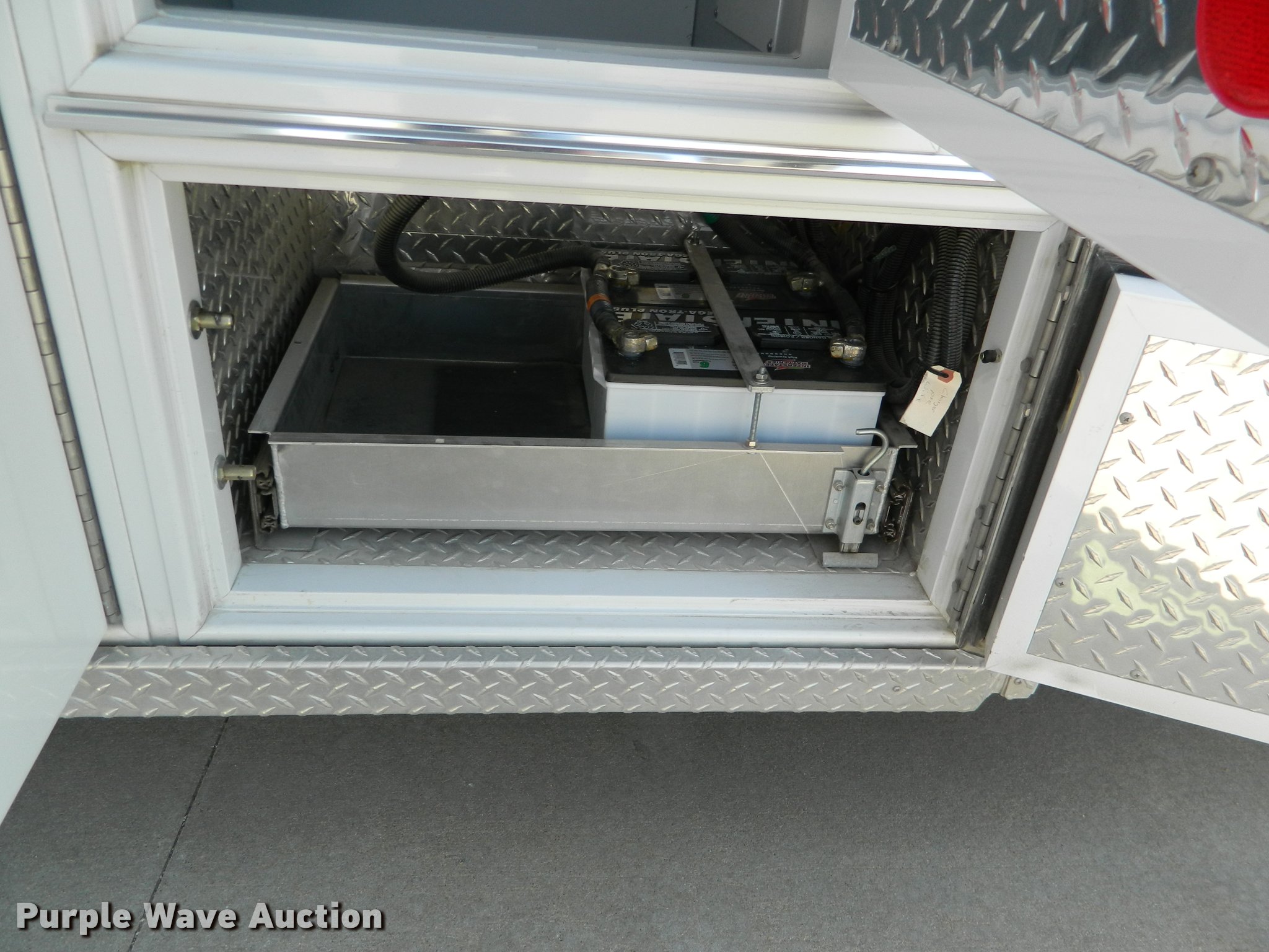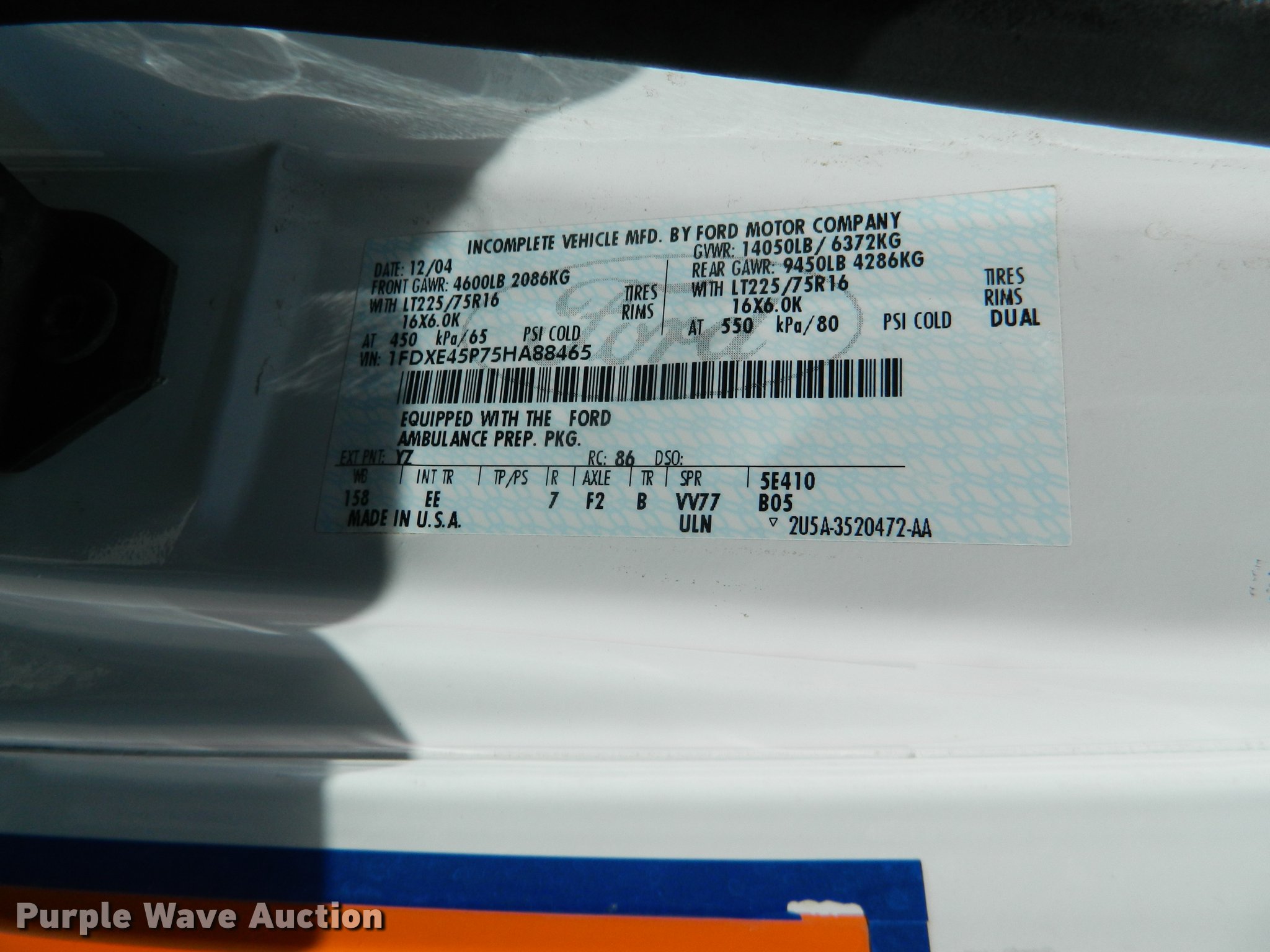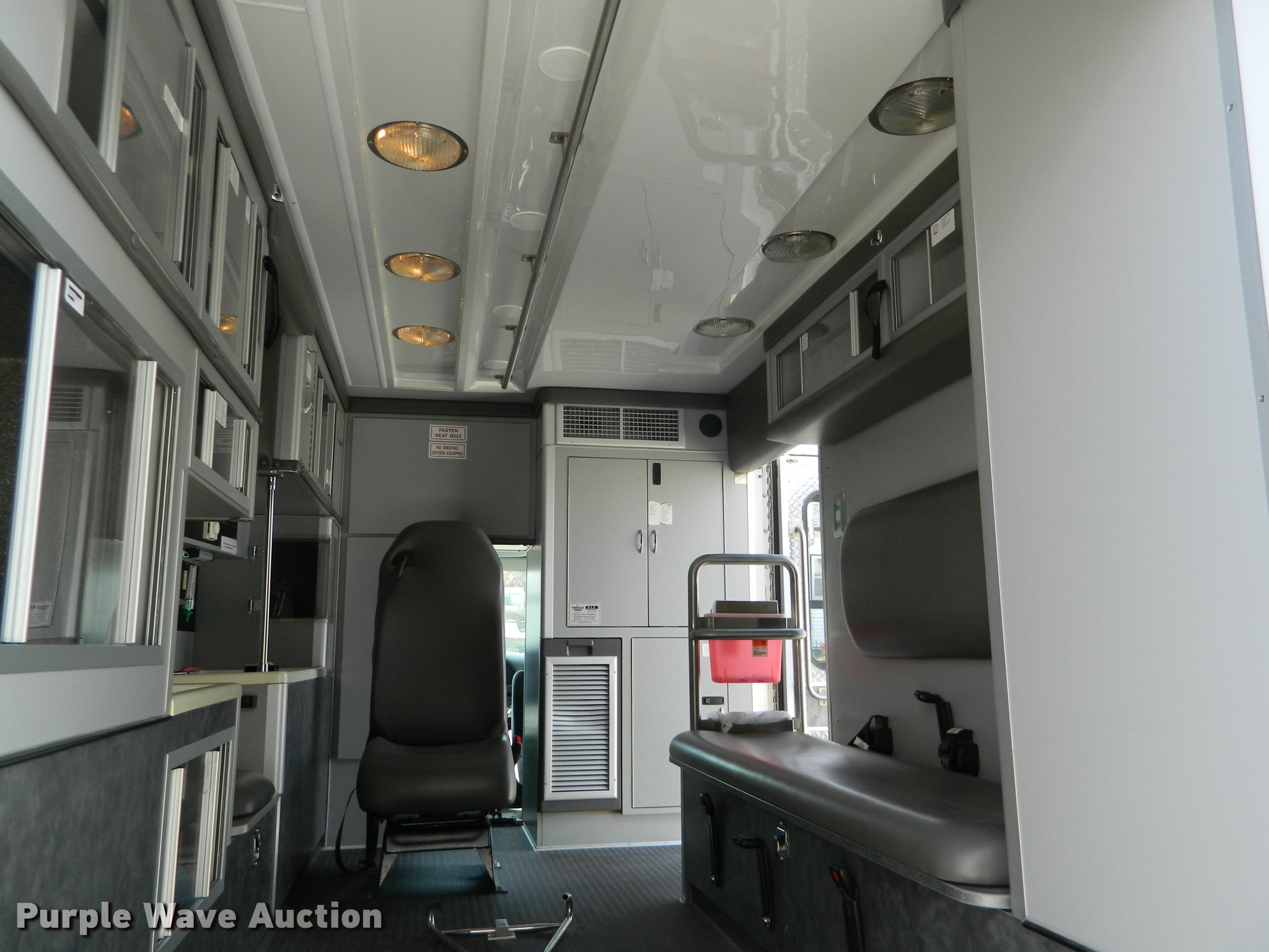 Purple Wave is selling a used Fire Truck or Emergency Vehicle in Kansas. This item is a 2005 Ford E450 ambulance with the following: 55,390 miles on odometer, 6.0L V8 OHV 32V diesel engine, Automatic transmission, AC and heat, Tilt, Cruise, AM/FM, Power windows and locks, AC inverter, Emergency lights, Siren, PA system, Wheeled Coach body, 225/75R16 tires, GVWR 14,050 lbs, Two-way radio not included