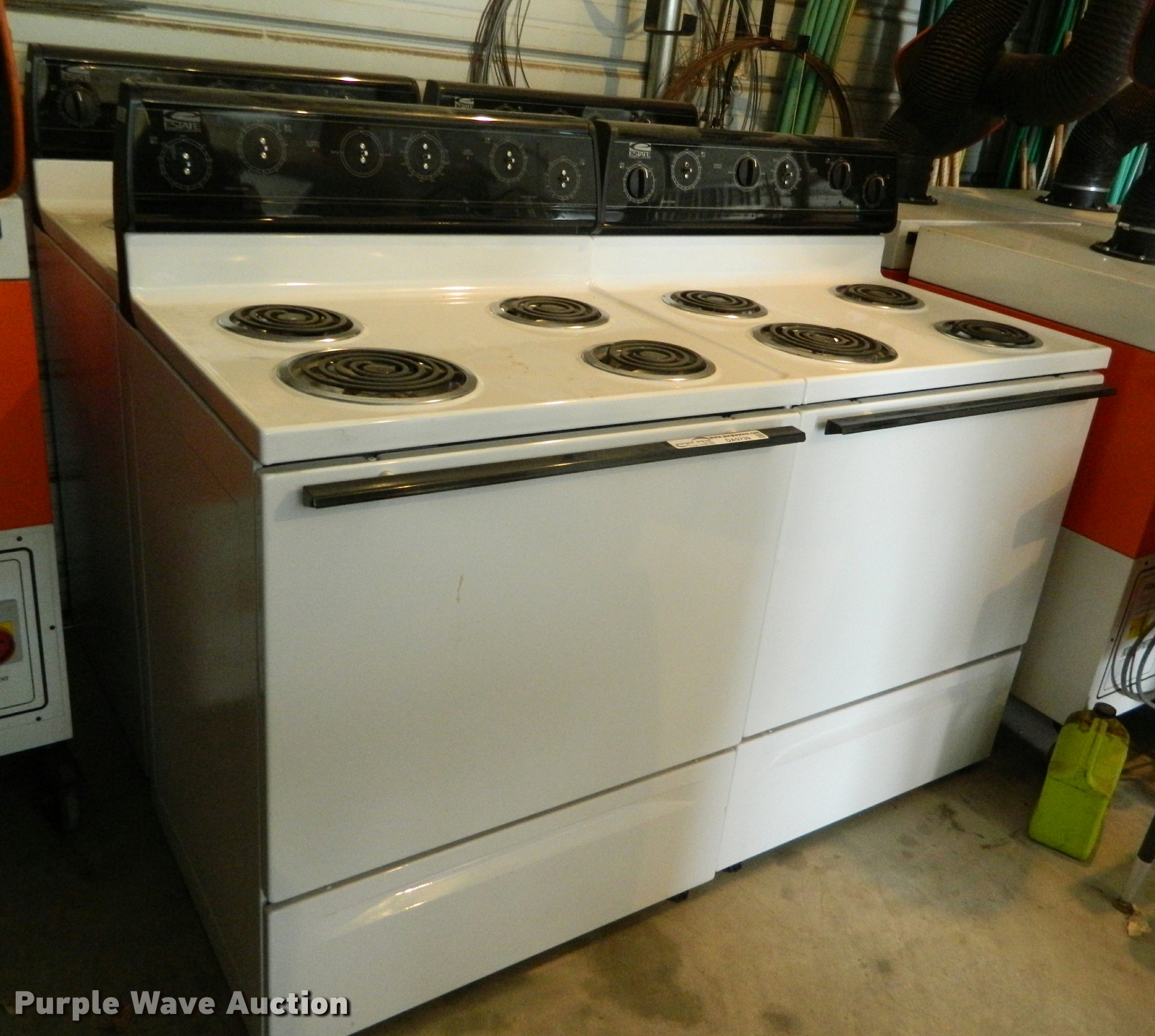 Purple Wave is selling a used Appliances in Kansas. This item is a (4) Estate electric cook stoves with the following: 240V, Knobs missing, Unknown operating condition