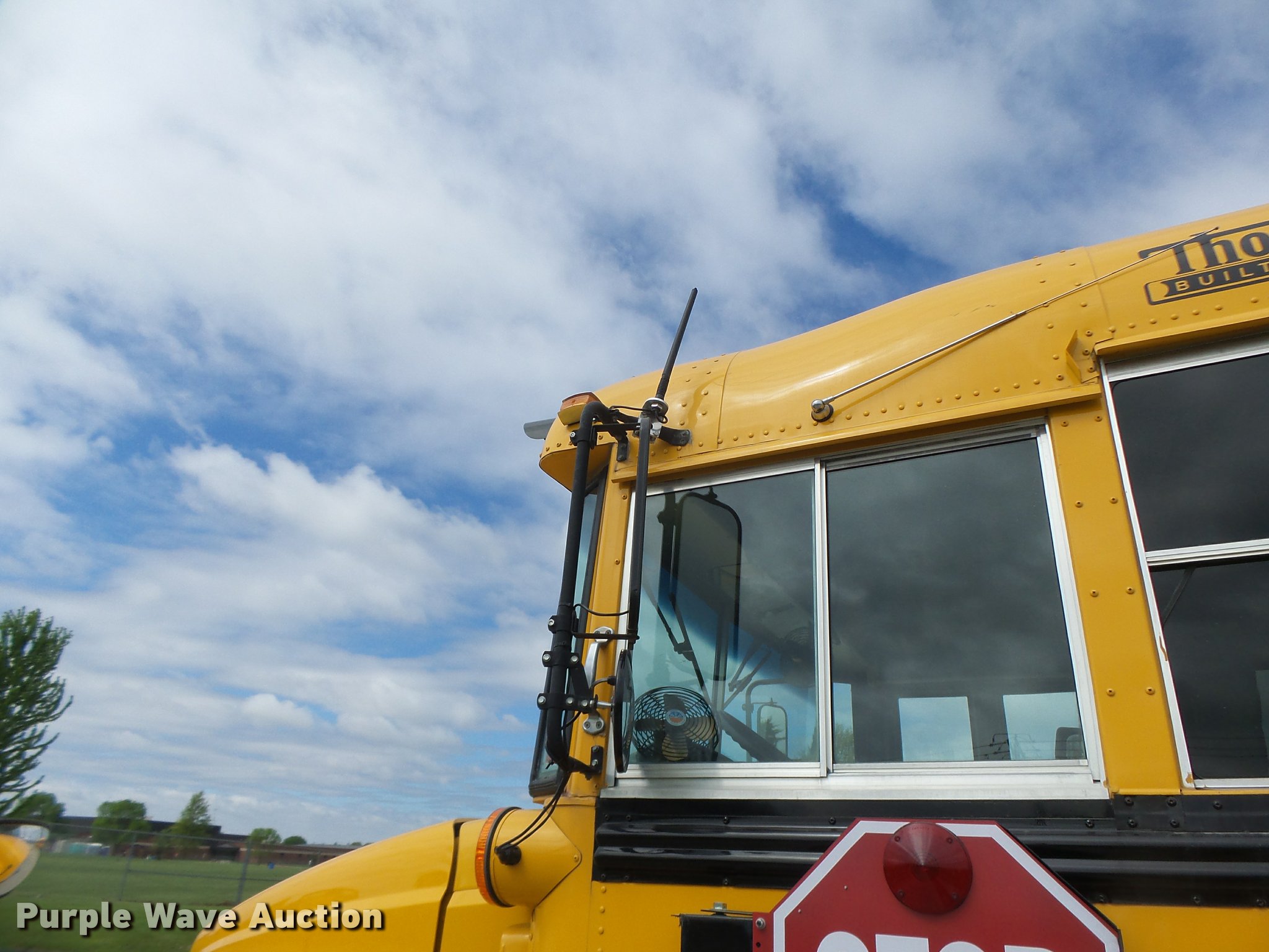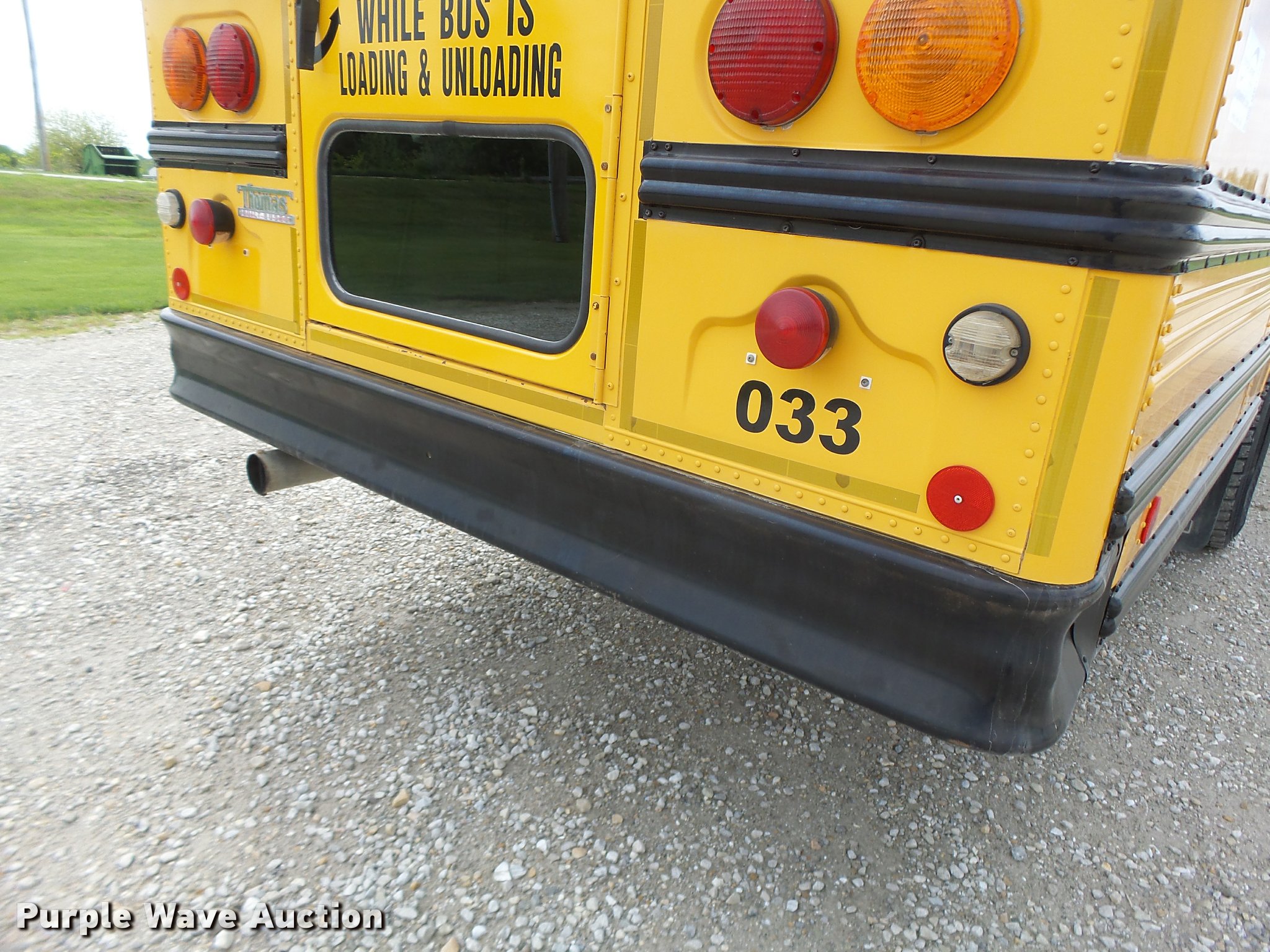 Purple Wave is selling a used Bus in Missouri. This item is a 2003 Freightliner FS65 school bus with the following: 125,485 miles on odometer, Cummins ISB 5.9L L6 turbo diesel engine, Five speed manual transmission, Single axle, Heat, Heated mirrors, Suspension seat, 65 passenger capacity, Ceiling and rear emergency exits, Stop sign, Thomas body, Front and rear tow hooks, Spring suspension, Hydraulic brakes, 11R22.5 tires, Unit# 33