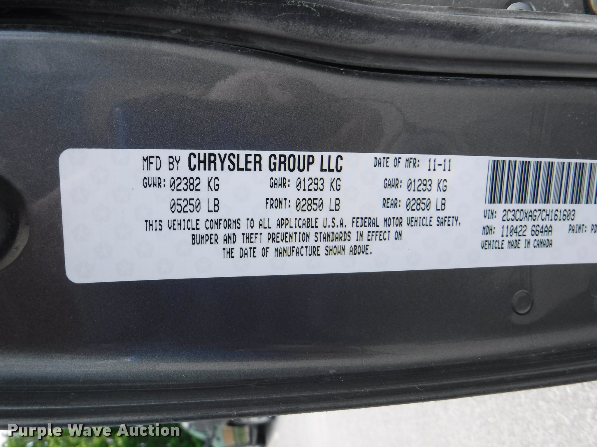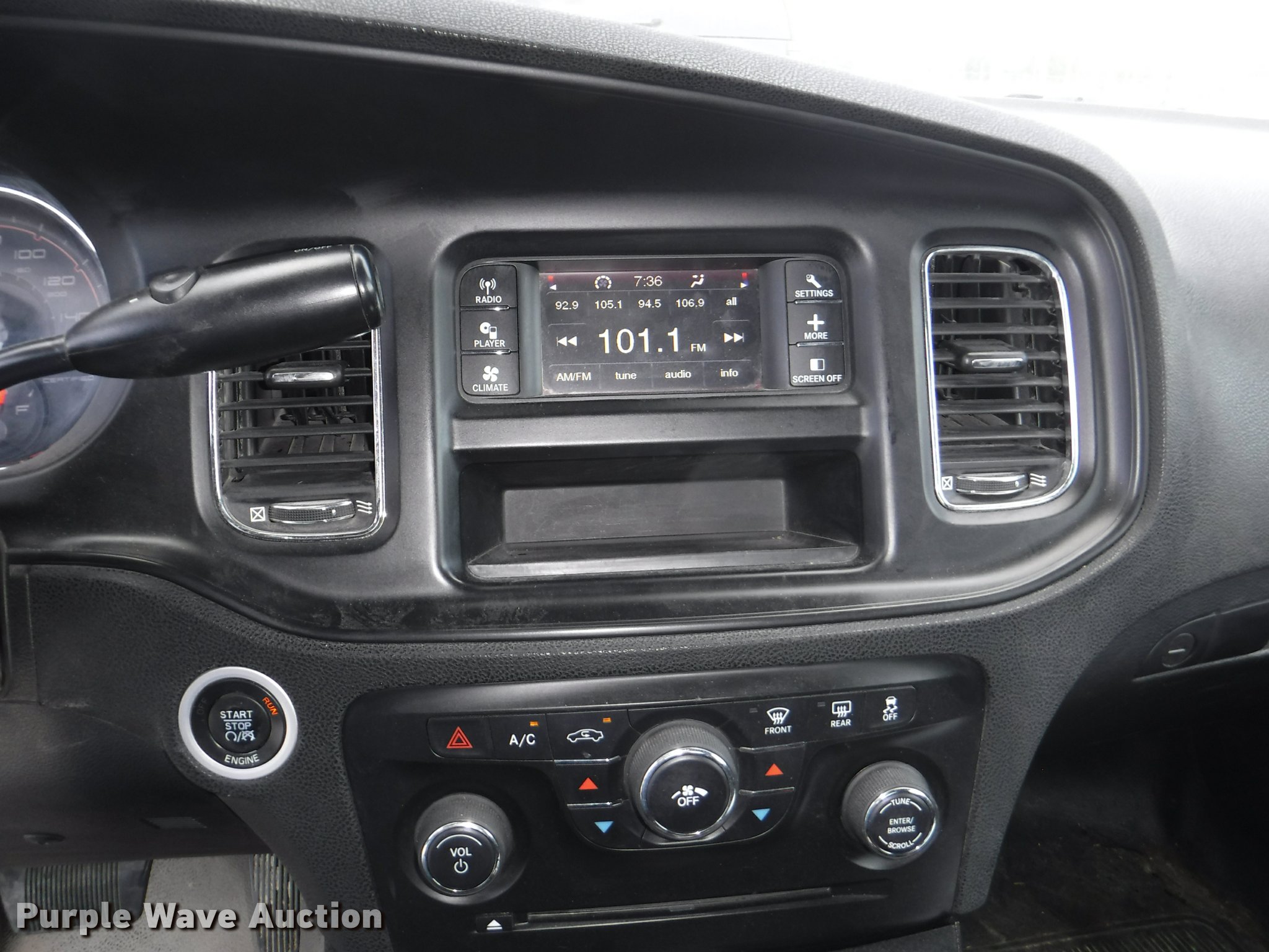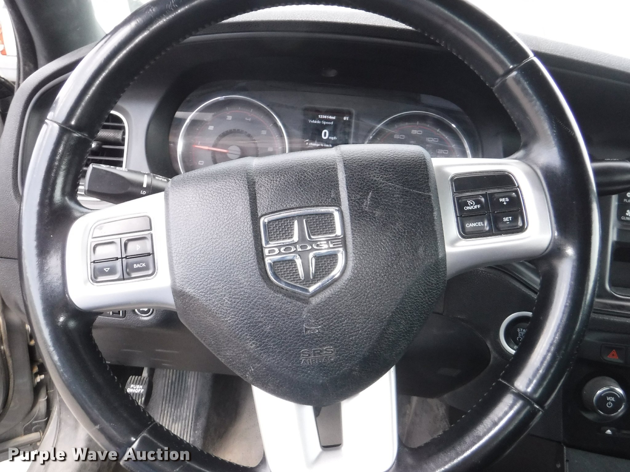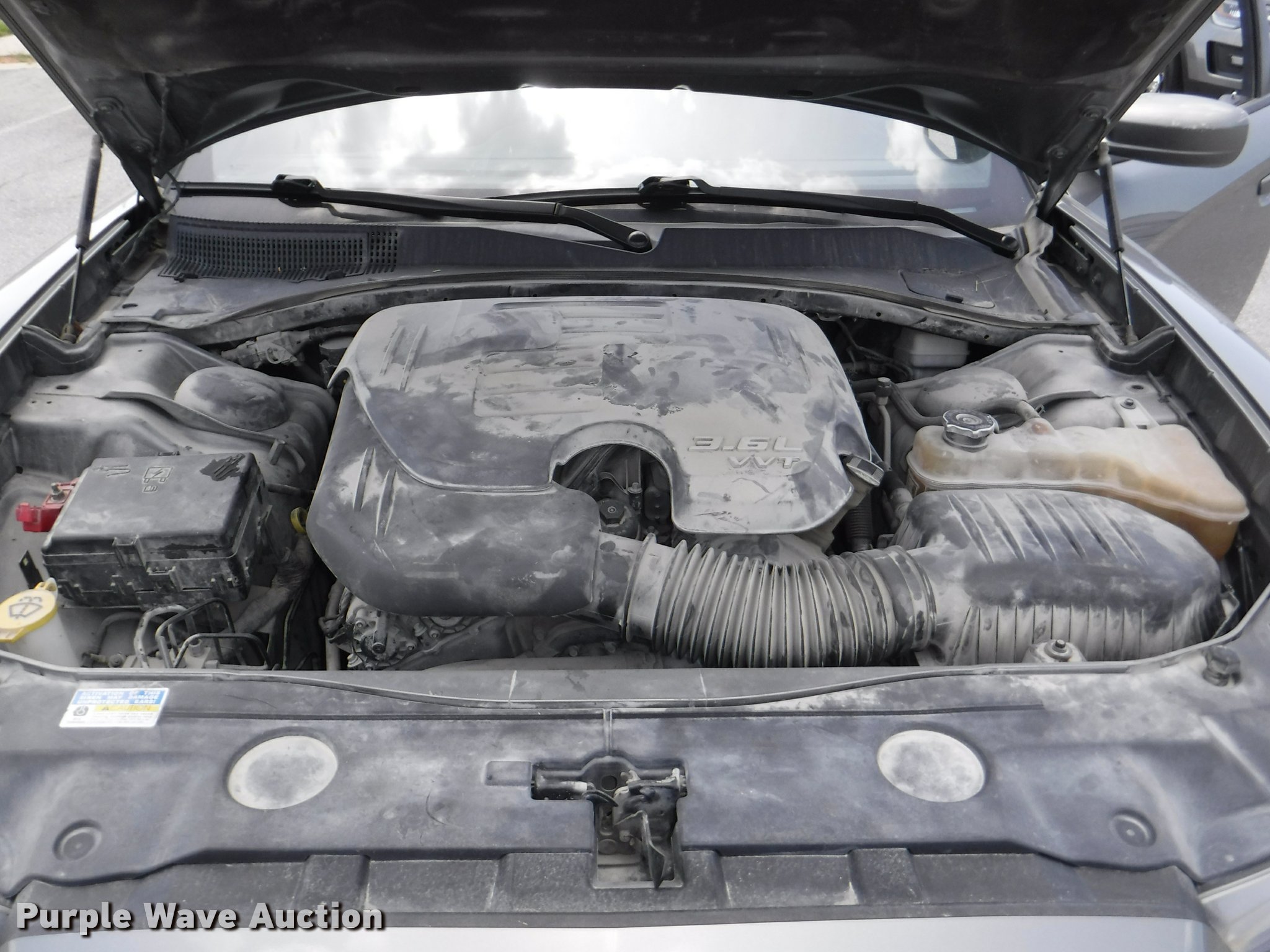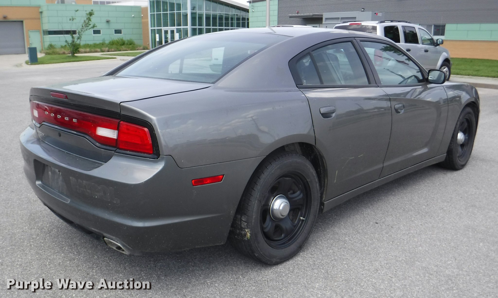 Purple Wave is selling a used Passenger Vehicle in Kansas. This item is a 2012 Dodge Charger with the following: 123,614 miles on odometer, 3.6L V6 DOHC 24V gas engine, Automatic transmission, AC and heat, Tilt, Cruise, AM/FM/CD, Power windows, locks, mirrors, and seats, Cloth interior, Hard plastic rear interior, Spotlight, Cage divider, Pro guard push bar, 225/60R18 tires, Dead battery