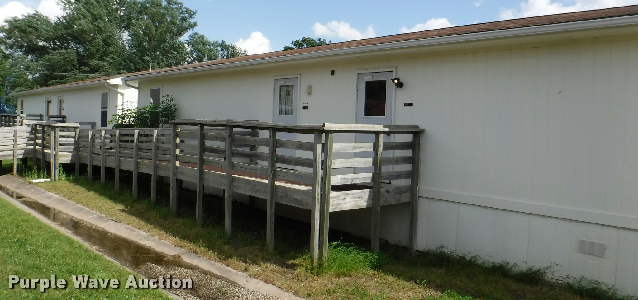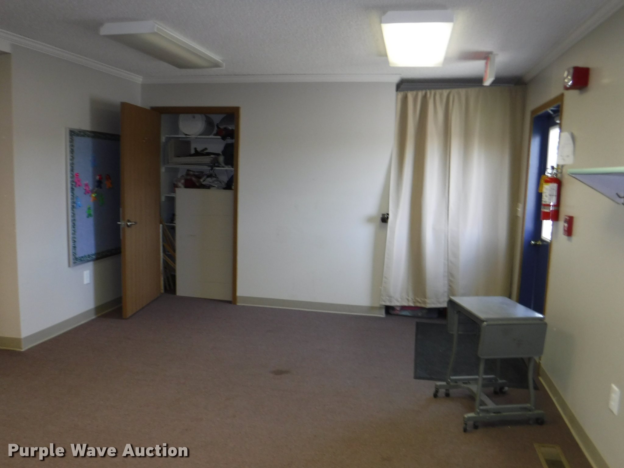 Purple Wave is selling a used Manufactured Home or Office in Kansas. This item is a (2) Kan-Build modular classroom buildings with the following: 66'L x 28'W, (2) exterior central AC units, Bryant, One unknown, Carrier interior heaters, (2) bathrooms, (2) classrooms per building, Storage areas, Carpet, Interior contents not included, Buildings are still in use, Walkways are optional for purchaser to take, Bottom skirting damaged, Some exterior window screens torn, Utilities will be disconnected prior to auction, Approx. 20 years old