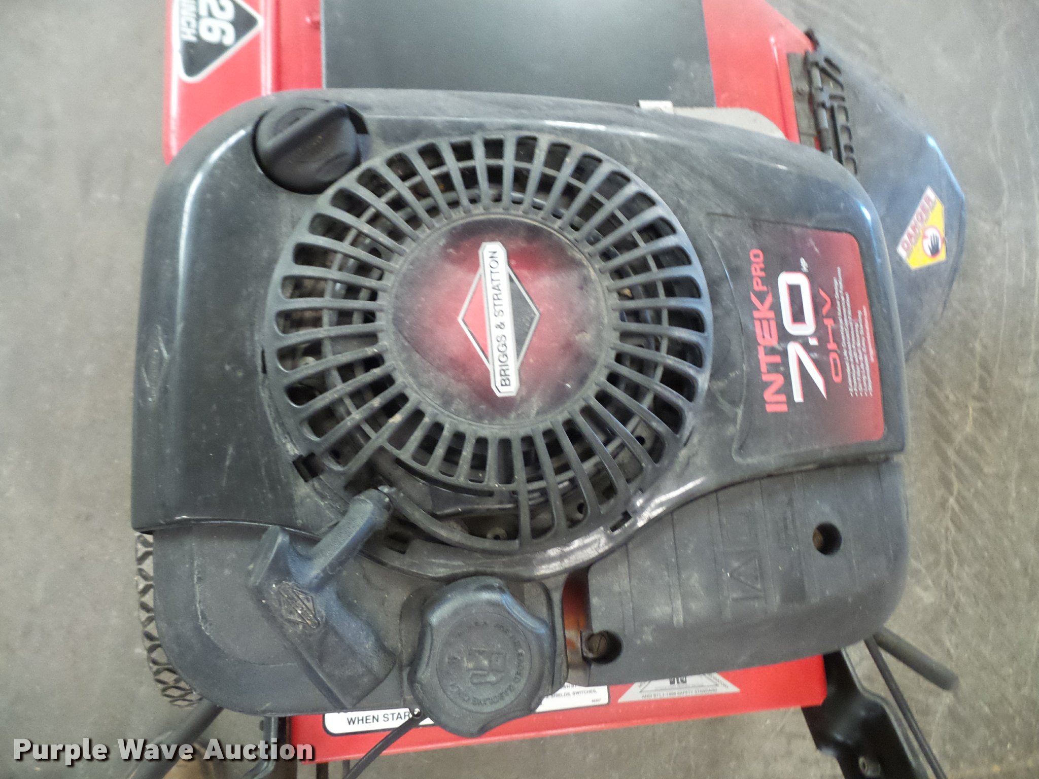 Purple Wave is selling a used Lawn and Garden in Kansas. This item is a Snapper self-propelled mower with the following: 26" cut, Intec 7.0 HP gas engine, Six speed self-propelled system