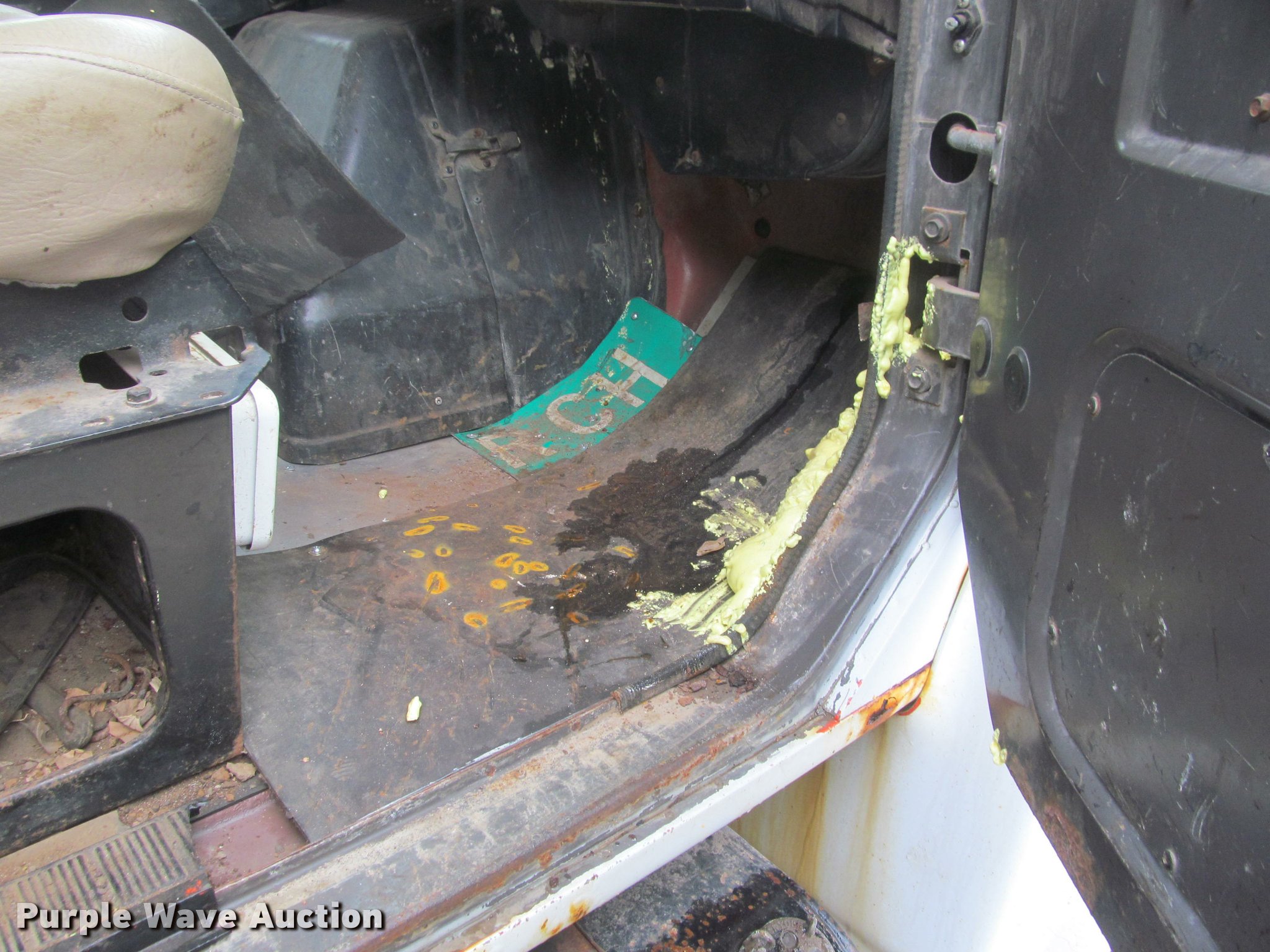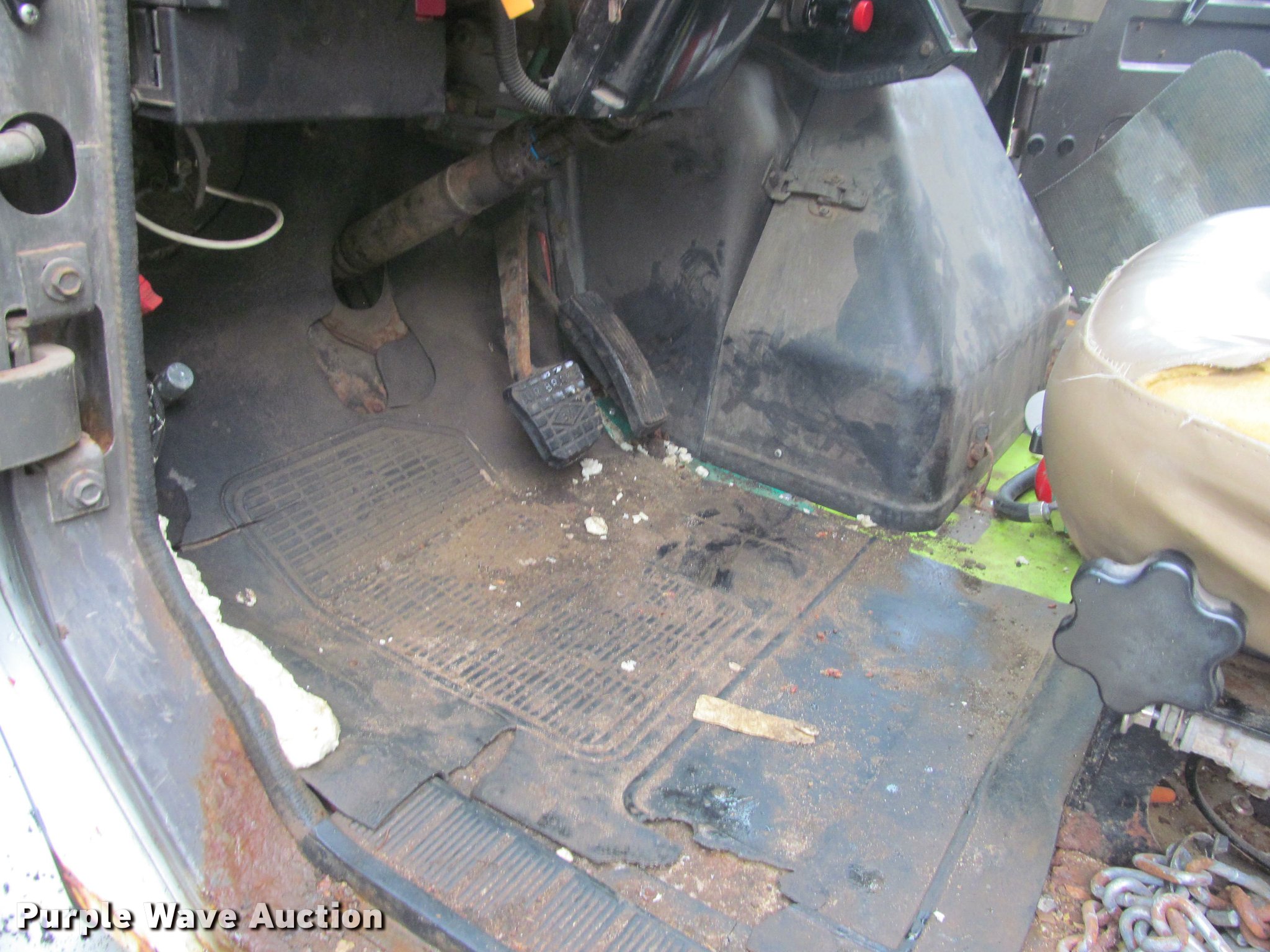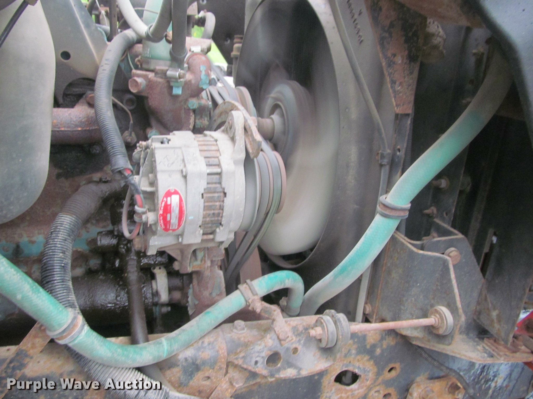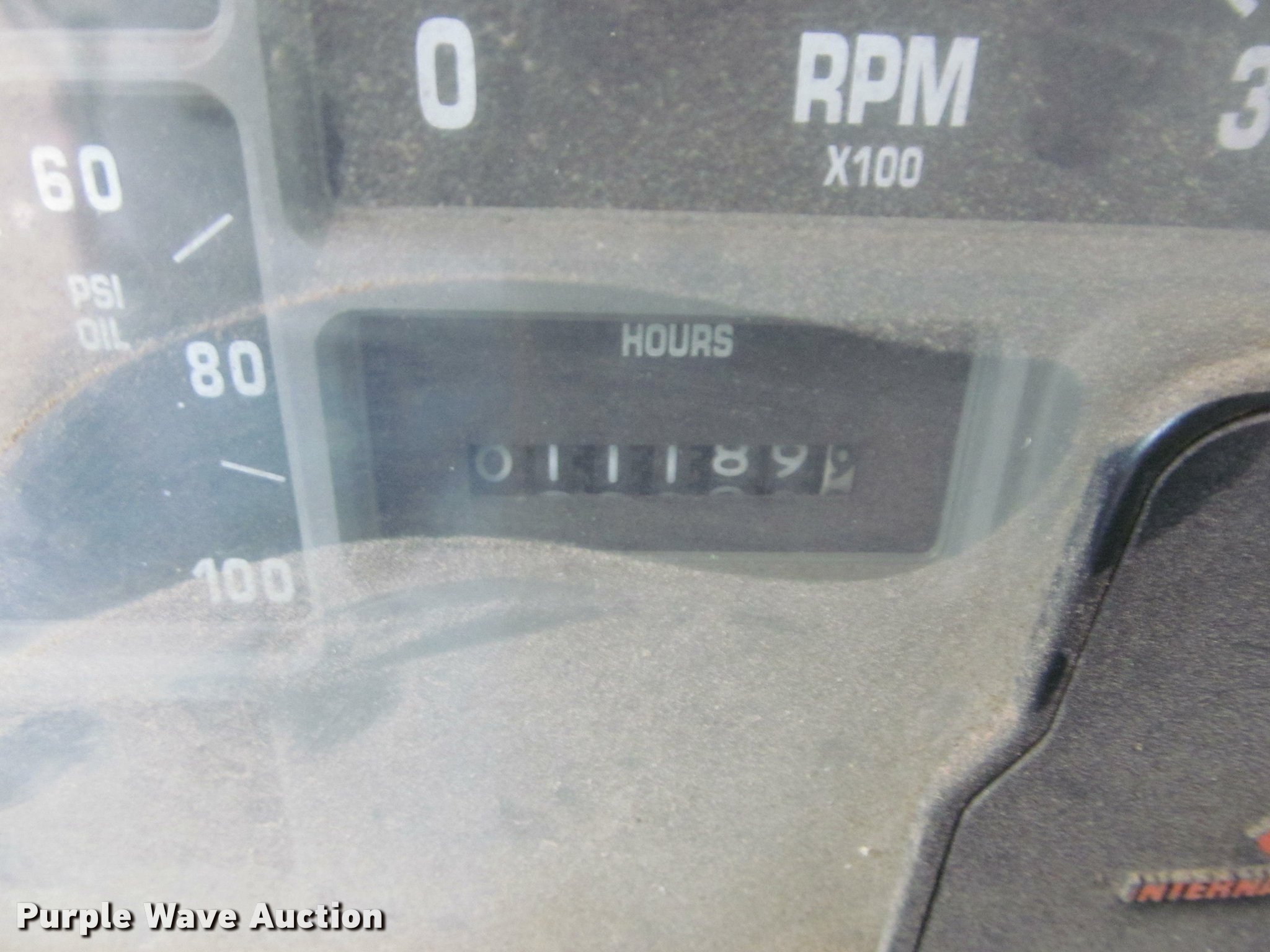 Purple Wave is selling a used Construction Dump Truck in Kansas. This item is a 1993 International 4900 dump truck with the following: 126,456 miles on odometer, 11,189 hours on meter, International DT466 7.6L L6 turbo diesel engine, Automatic transmission, Tandem axle, Inter-axle differential lock, Heat, AM/FM, Air suspension seat, Toolboxes, Front work lights, Block heater, Front mounted PTO, PTO, 10'L x 95"W steel dump bed, 24" side height, 10" side board height, Rollover tarp, Manual end gate, Single ram hoist, Hydraulic remotes, Monroe plow, 11'W, Swenson spreader, 10'L, Serial 61914, Dual fuel tanks, Spring suspension, Air brakes, 152" wheelbase, 295/75R22.5 tires, Rust, Bed will not dump, Right side fuel tank inoperable