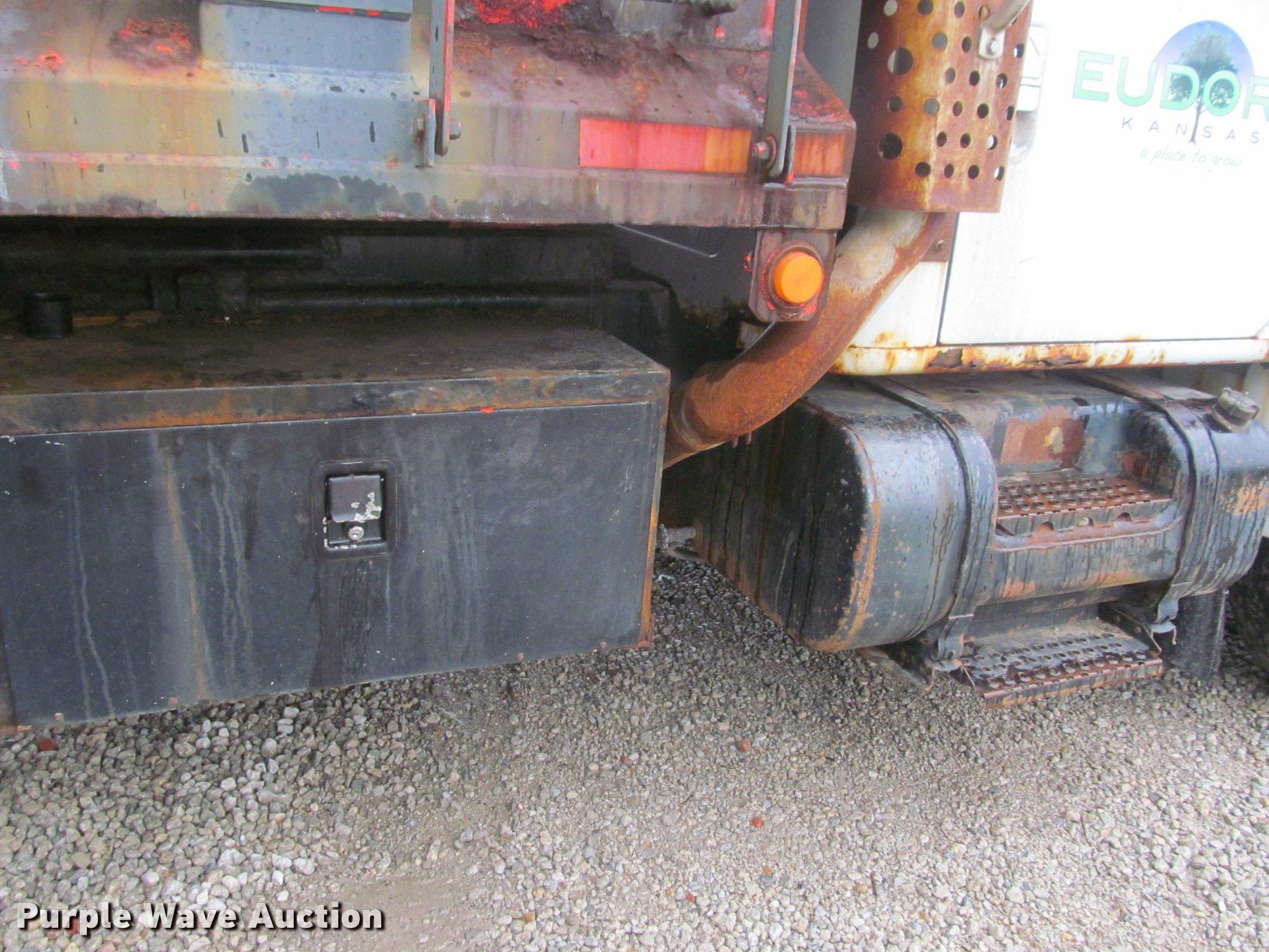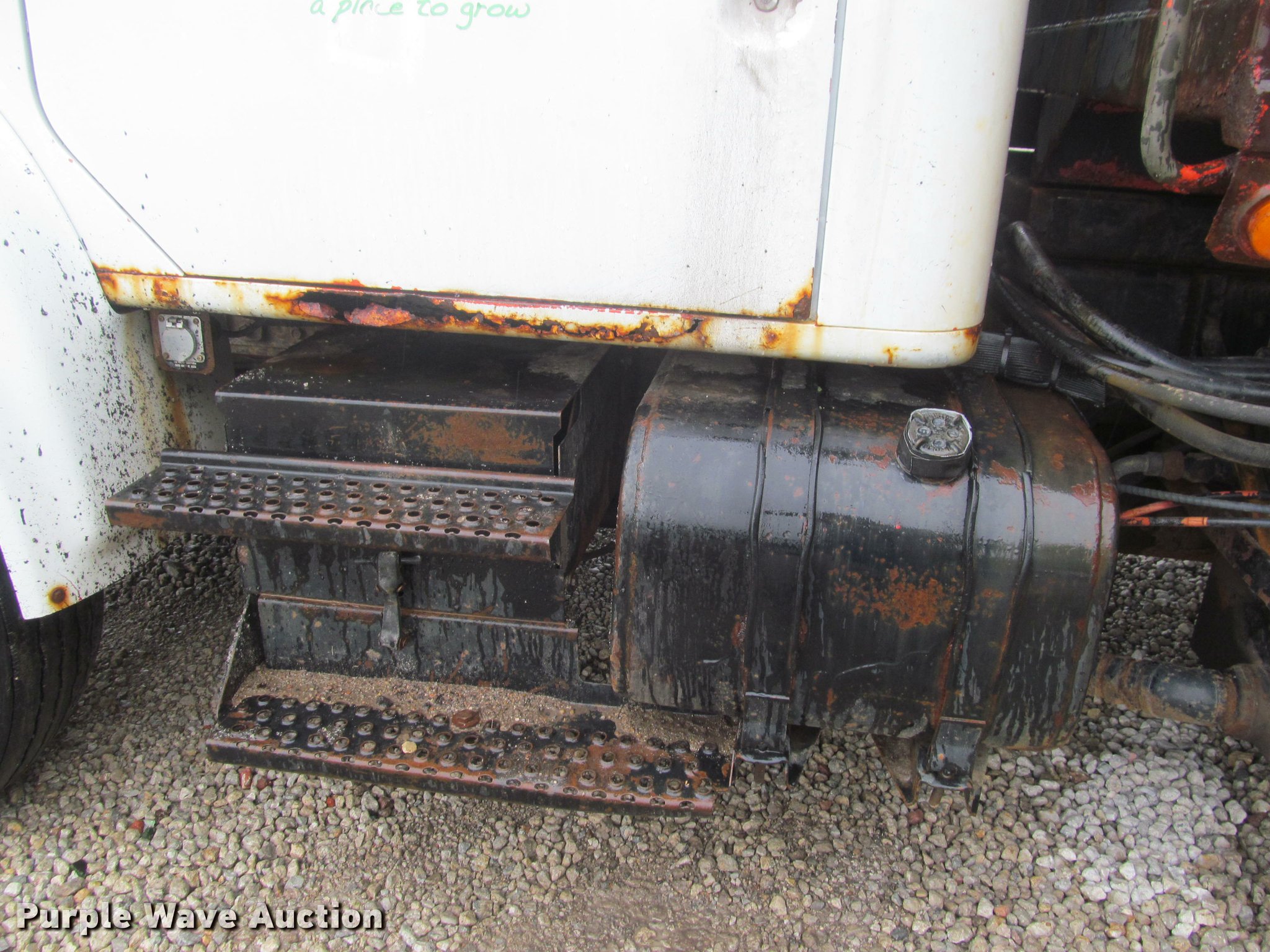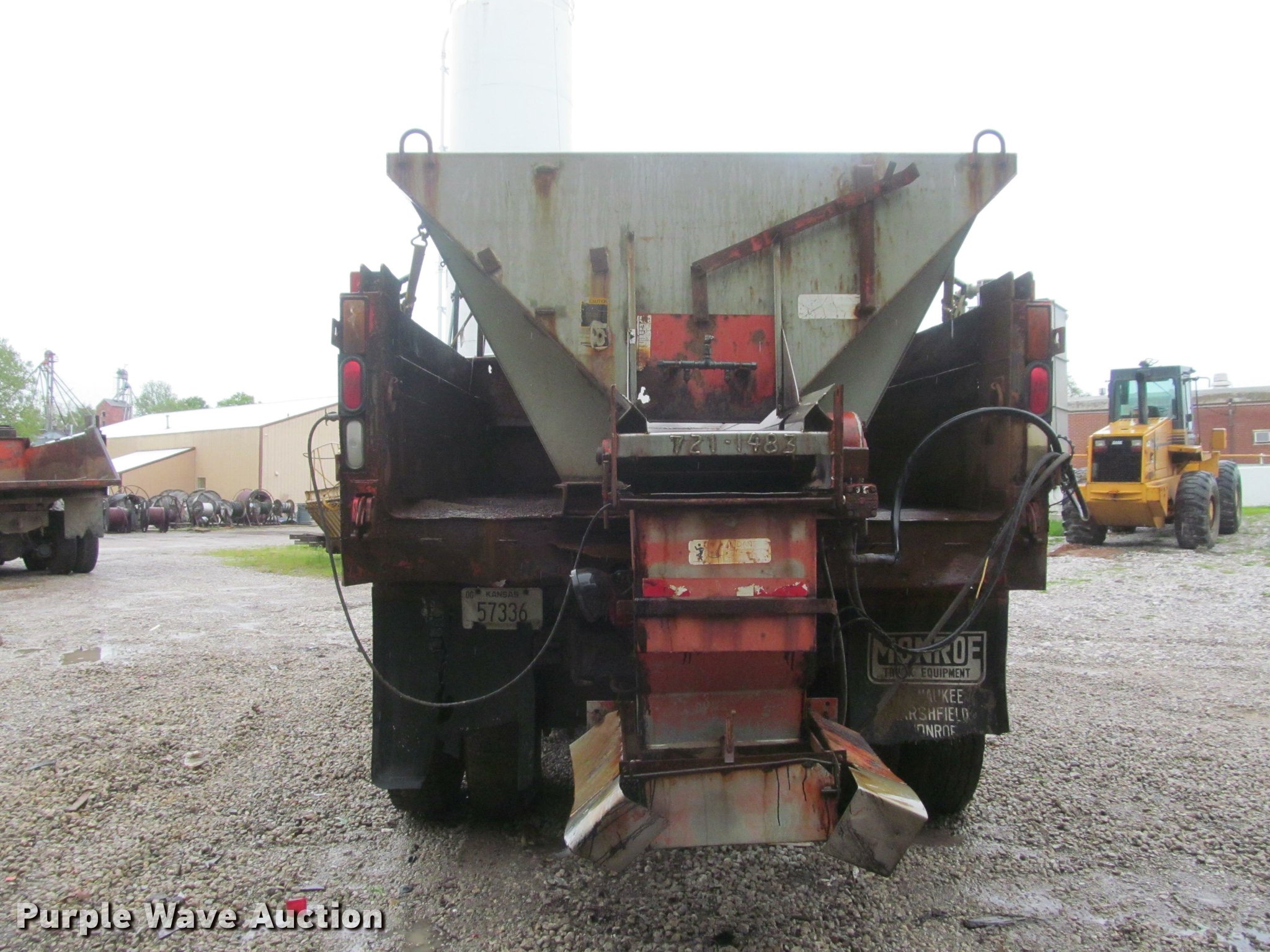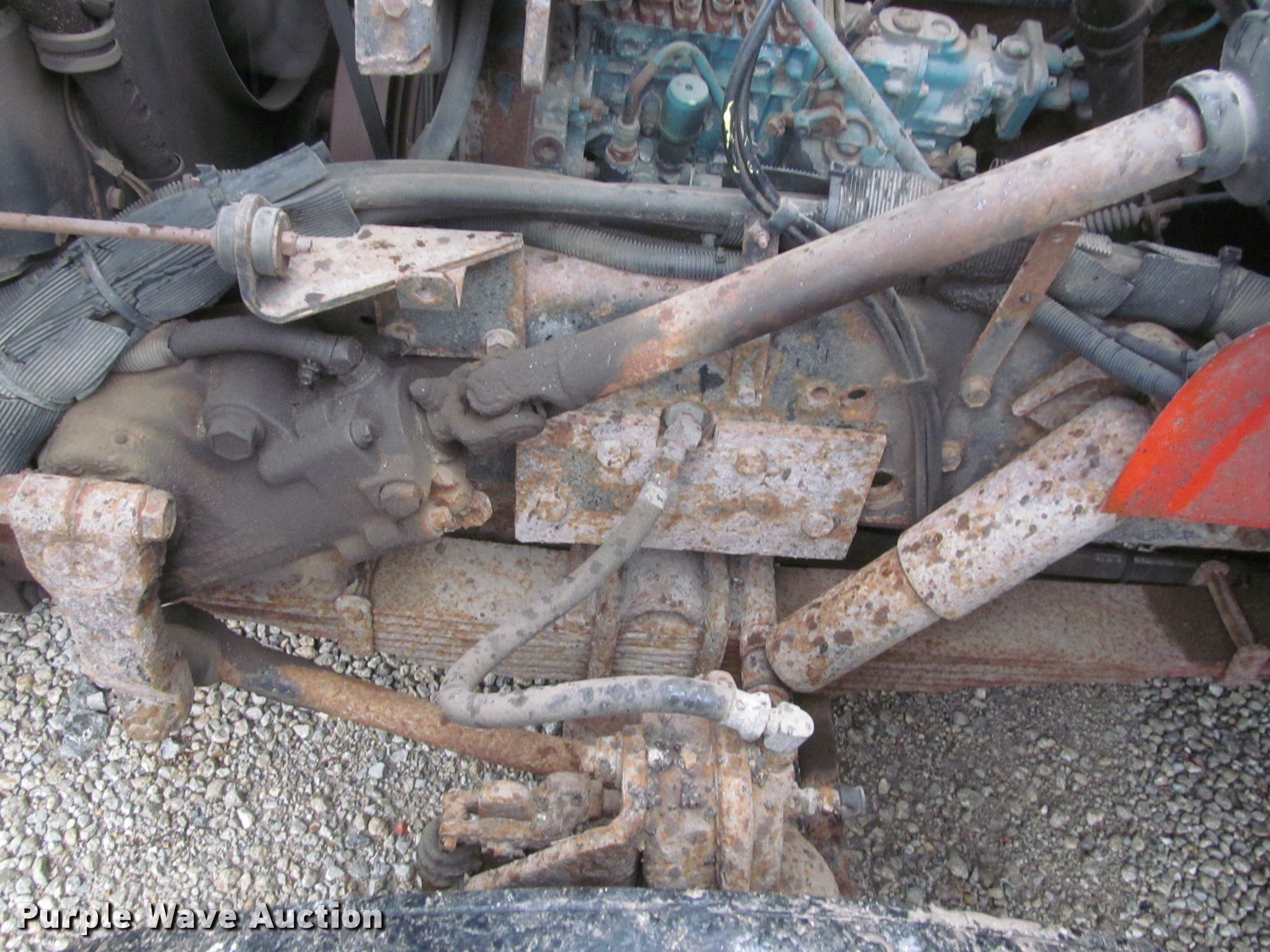 Purple Wave is selling a used Construction Dump Truck in Kansas. This item is a 1993 International 4900 dump truck with the following: 126,456 miles on odometer, 11,189 hours on meter, International DT466 7.6L L6 turbo diesel engine, Automatic transmission, Tandem axle, Inter-axle differential lock, Heat, AM/FM, Air suspension seat, Toolboxes, Front work lights, Block heater, Front mounted PTO, PTO, 10'L x 95"W steel dump bed, 24" side height, 10" side board height, Rollover tarp, Manual end gate, Single ram hoist, Hydraulic remotes, Monroe plow, 11'W, Swenson spreader, 10'L, Serial 61914, Dual fuel tanks, Spring suspension, Air brakes, 152" wheelbase, 295/75R22.5 tires, Rust, Bed will not dump, Right side fuel tank inoperable