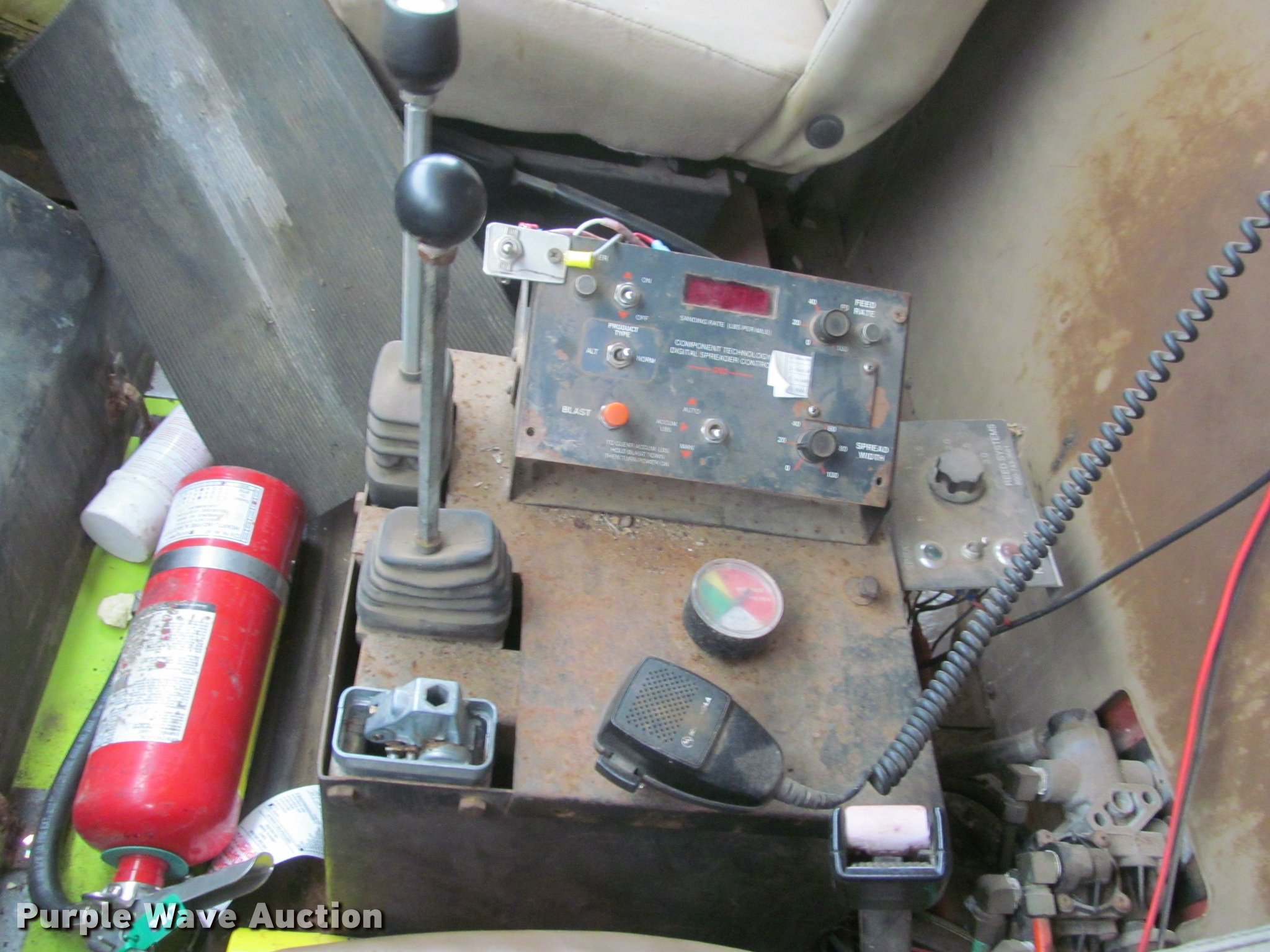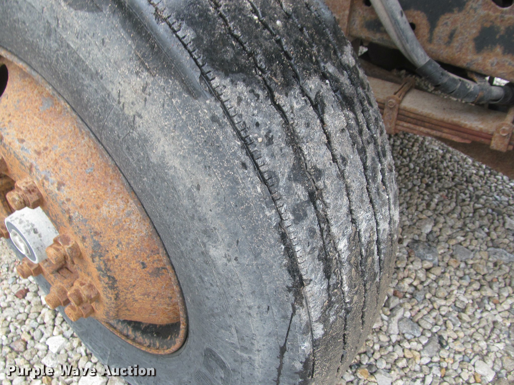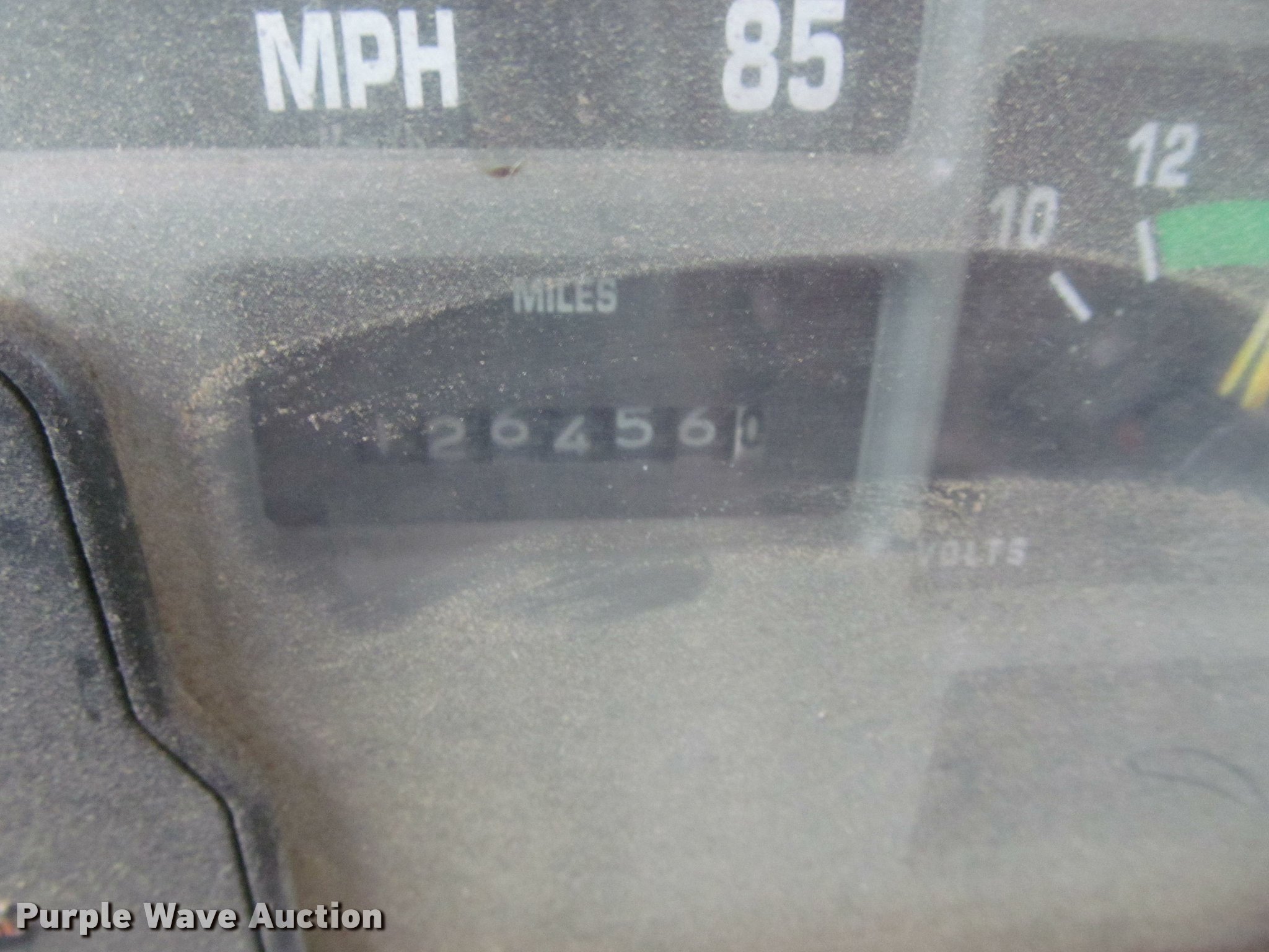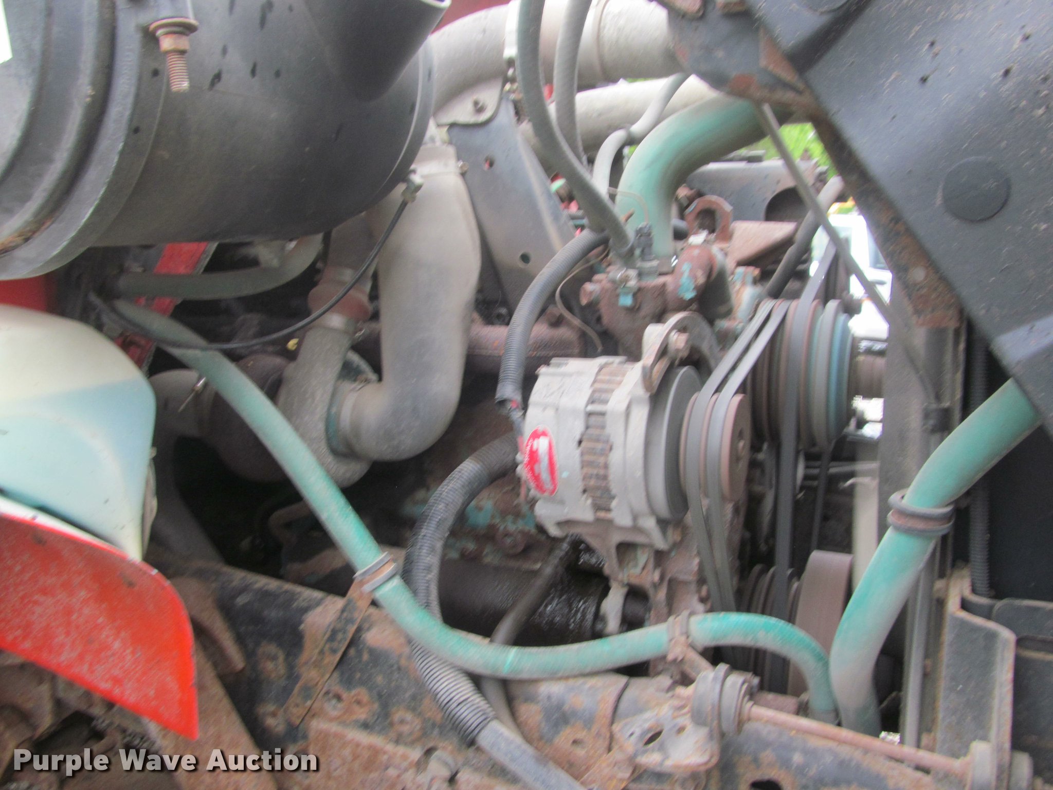 Purple Wave is selling a used Construction Dump Truck in Kansas. This item is a 1993 International 4900 dump truck with the following: 126,456 miles on odometer, 11,189 hours on meter, International DT466 7.6L L6 turbo diesel engine, Automatic transmission, Tandem axle, Inter-axle differential lock, Heat, AM/FM, Air suspension seat, Toolboxes, Front work lights, Block heater, Front mounted PTO, PTO, 10'L x 95"W steel dump bed, 24" side height, 10" side board height, Rollover tarp, Manual end gate, Single ram hoist, Hydraulic remotes, Monroe plow, 11'W, Swenson spreader, 10'L, Serial 61914, Dual fuel tanks, Spring suspension, Air brakes, 152" wheelbase, 295/75R22.5 tires, Rust, Bed will not dump, Right side fuel tank inoperable