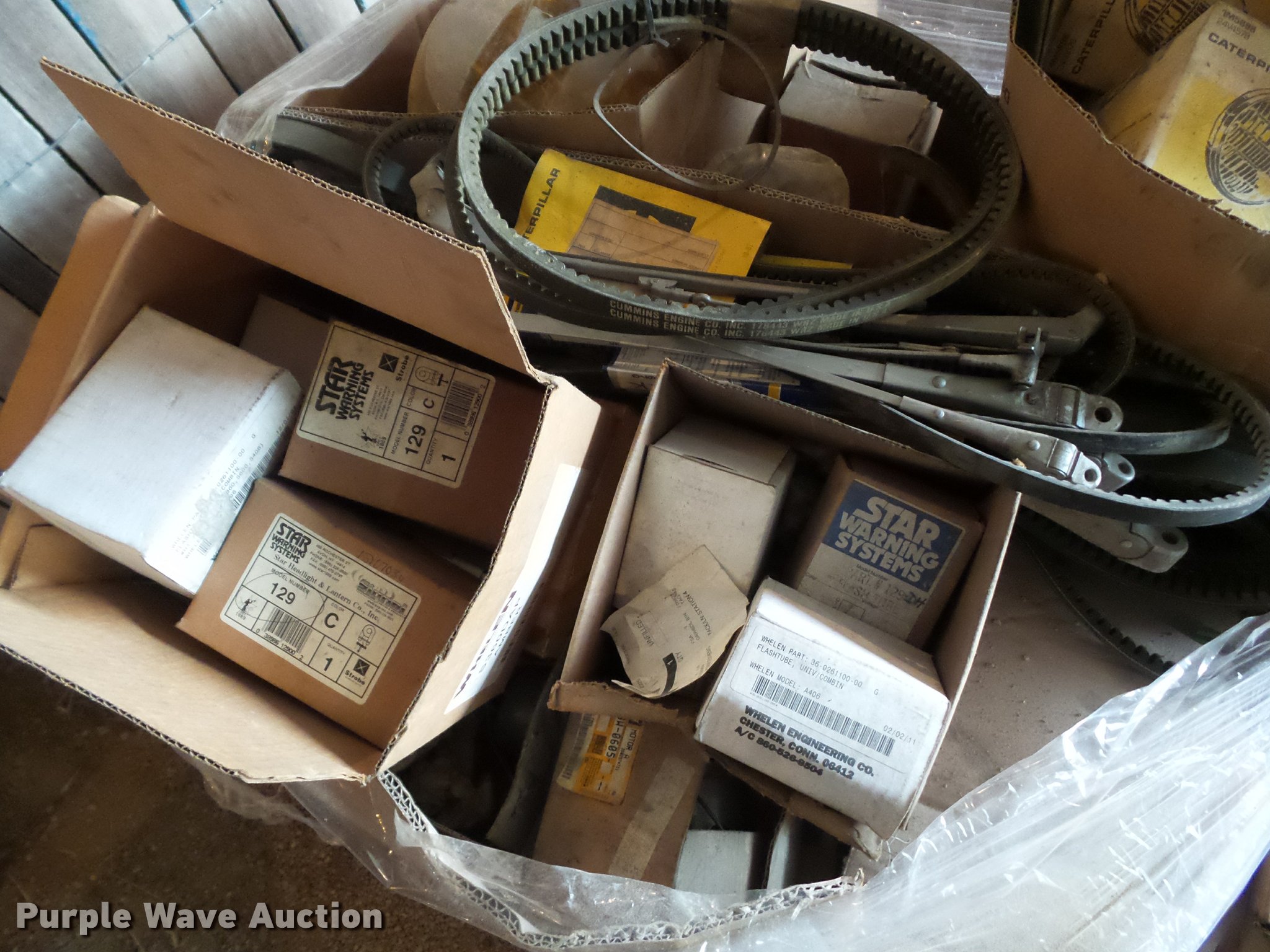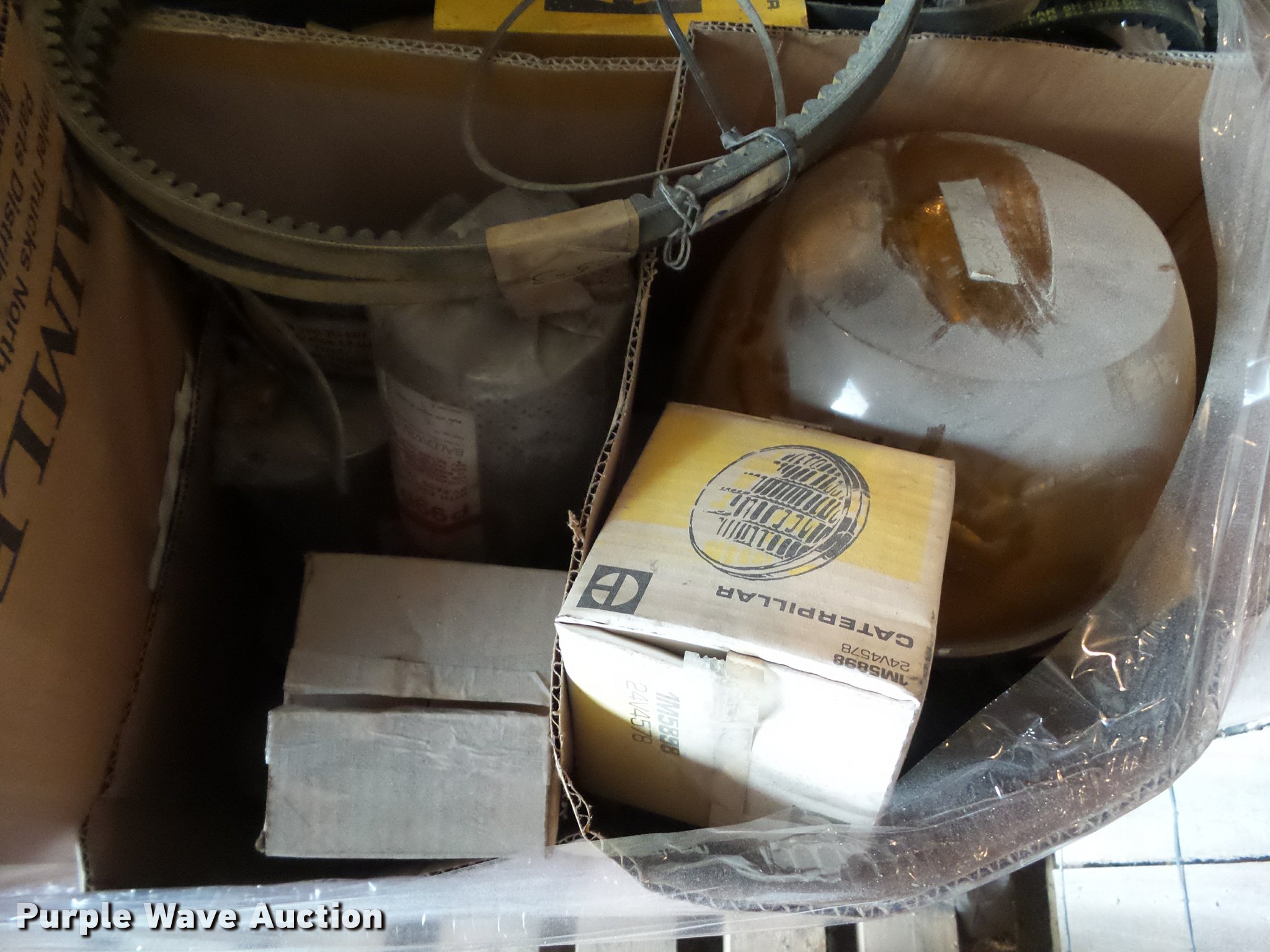 Purple Wave is selling a used Motor Grader Attach. in Iowa. This item is a Caterpillar 12G and 14G parts with the following: Electric motors, Fans, Filters, Belts, Wiper arms, Strobe lights
