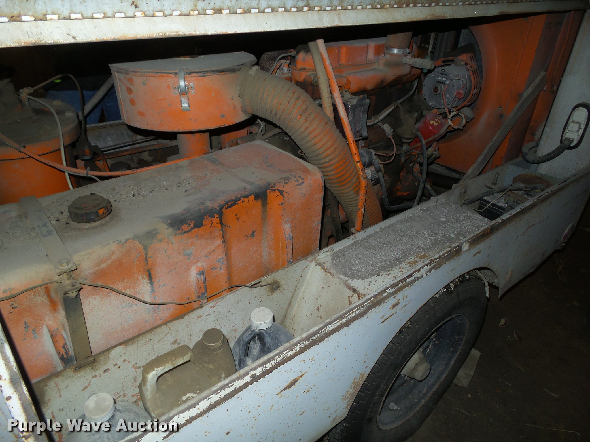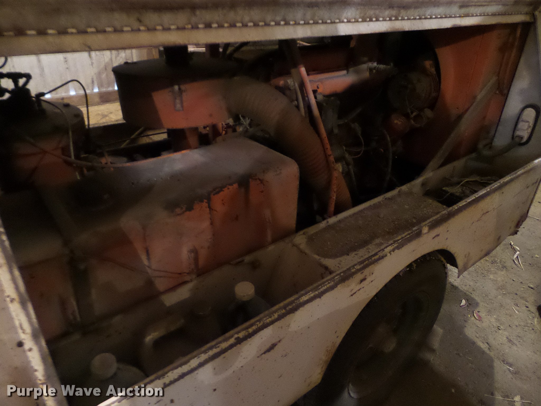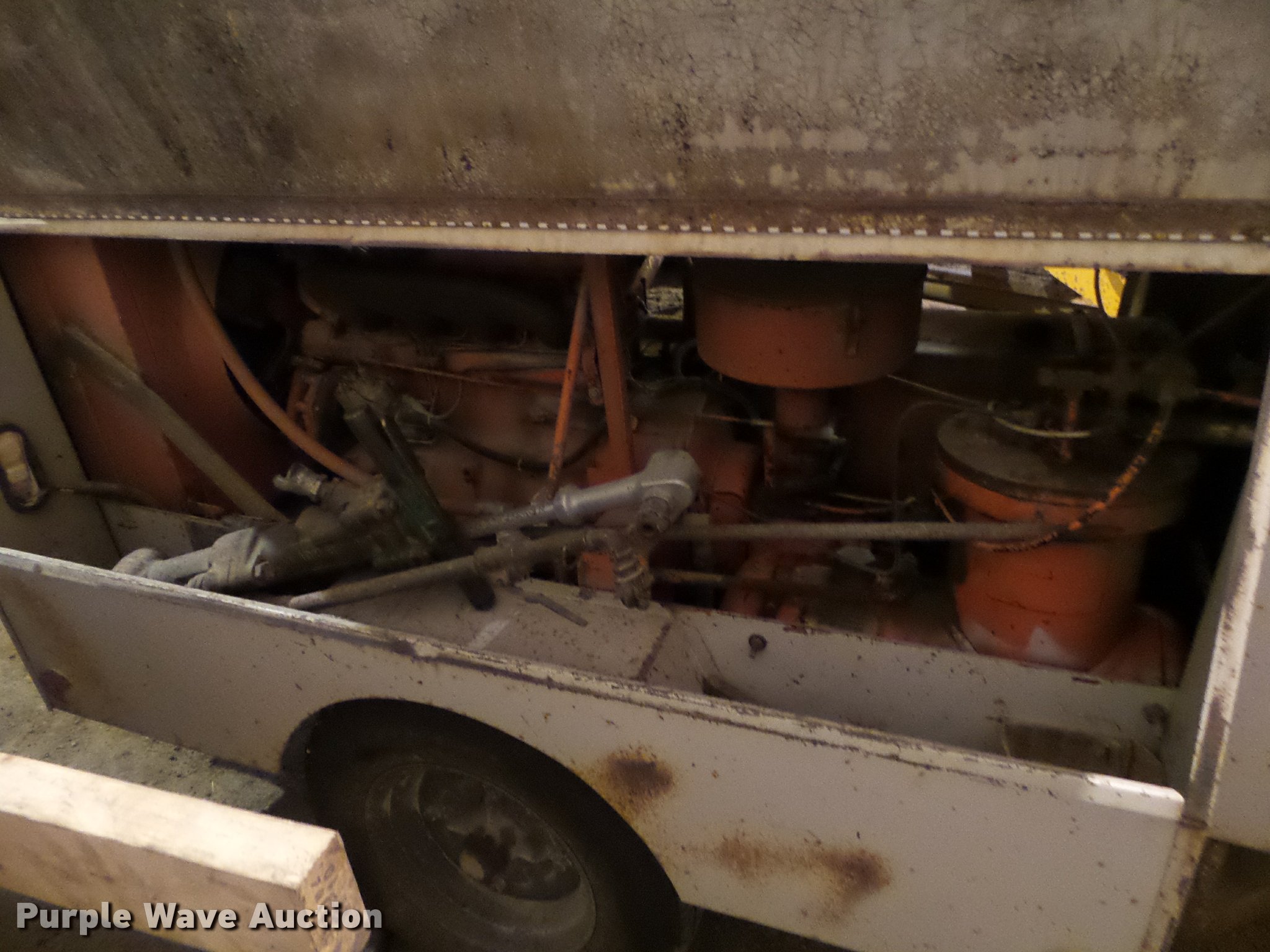 Purple Wave is selling a used Air Compressor in Iowa. This item is a Joy air compressor with the following: Model 0018502201EA, 2,999 hours on meter, 125 psig, Assorted bits and spades, Tampers, Jack hammer, Hoses, ST205/75R15 tires, Unknown operating condition, Serial 400254