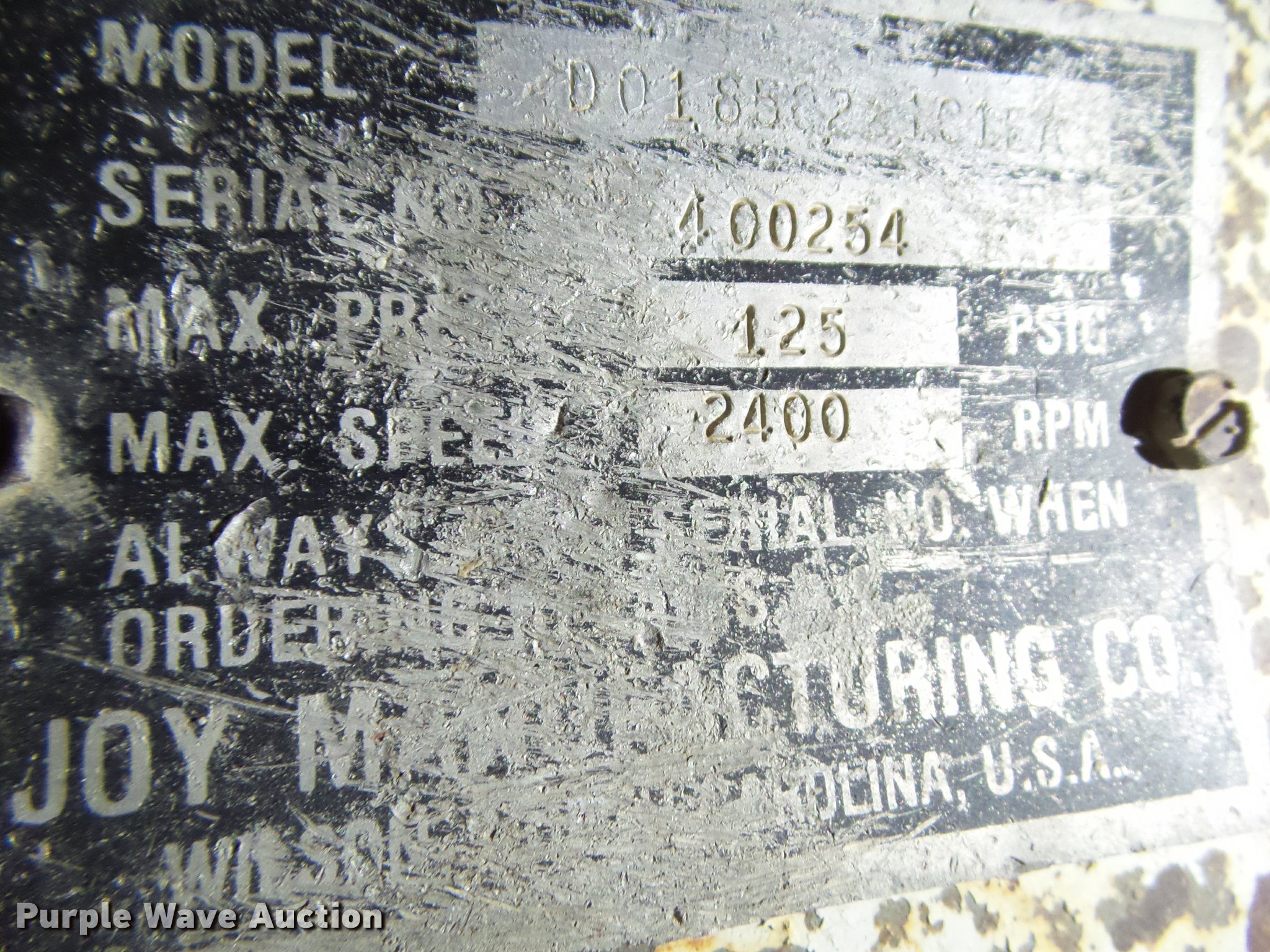 Joy air compressor | SOLD! June 6 Government Auction
