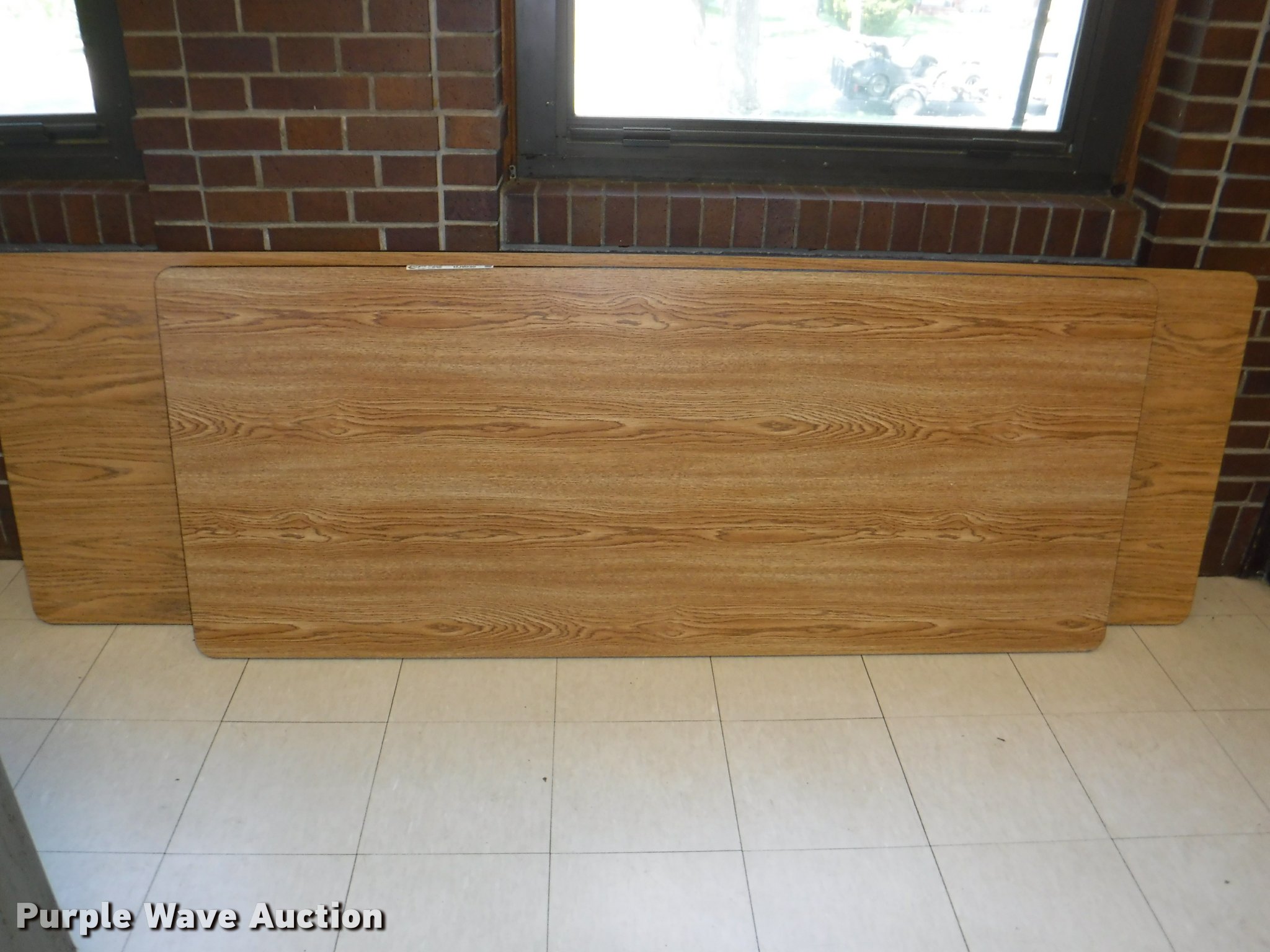 Purple Wave is selling a used Furniture in Kansas. This item is a (4) tables with the following: (2) folding lunchroom, 6' wood folding, 8' wood folding