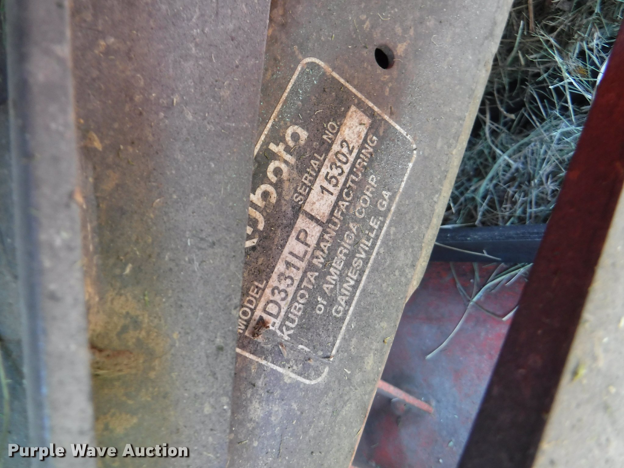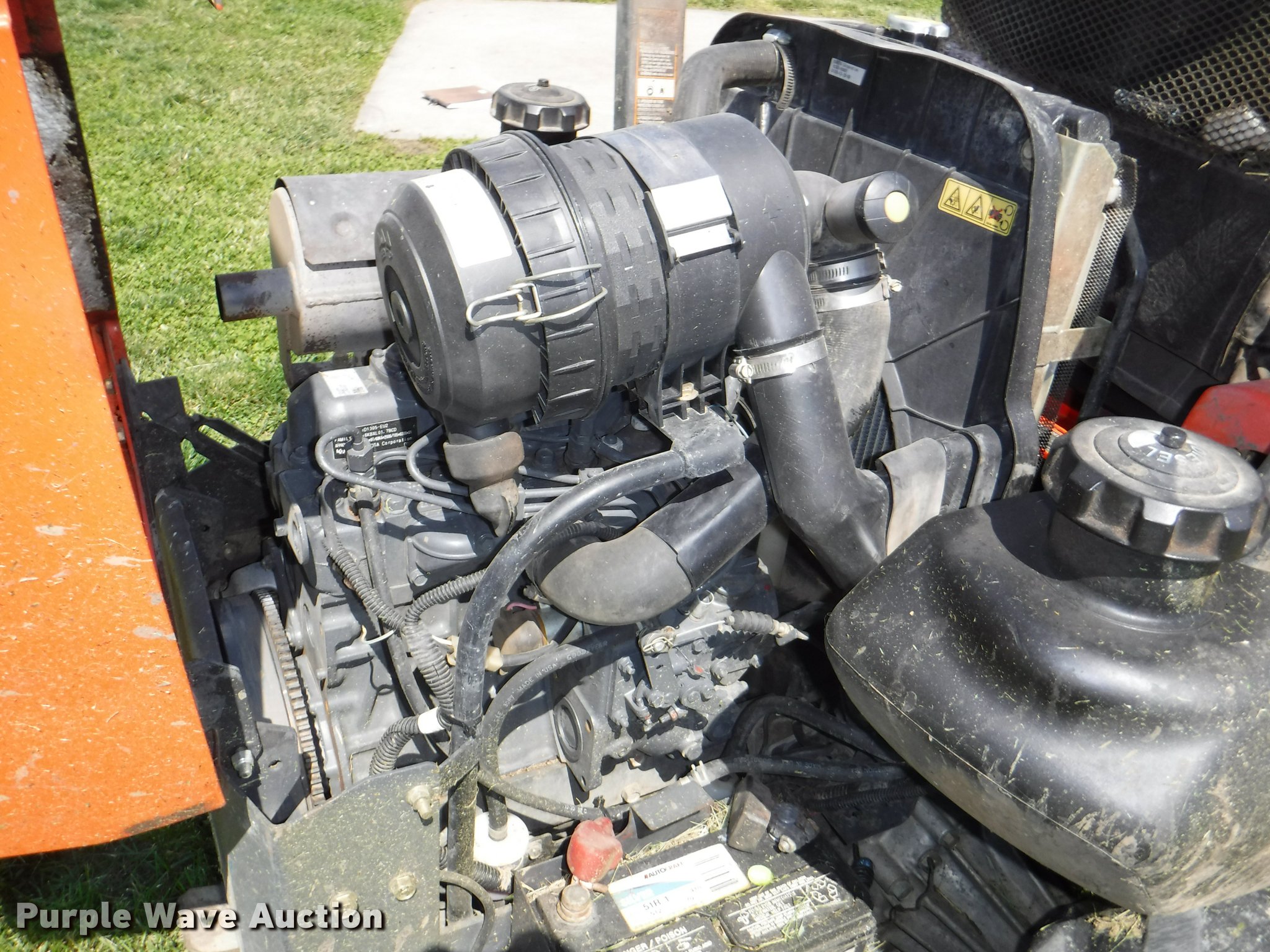 Purple Wave is selling a used Commercial Turf Mower in Kansas. This item is a Kubota ZD331 ZTR lawn mower with the following: 2,182 hours on meter, 72"W cutting capacity, Kubota three cylinder diesel engine, ROPS, Vinyl seat, Deck model D331LP, Serial 15302, 64" underbelly blade, Model ZD3110A, Mounting bracket, Serial 21105328, 15 x 6.00-4.50 front tires, 26 x 12.00-12 rear tires, Ignition issues, Spindle blade damaged, Additional parts included