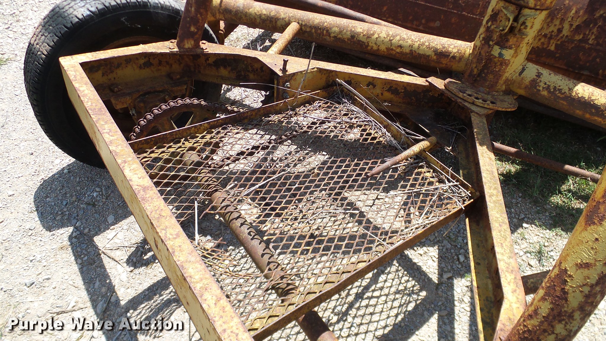 W.E. Grace broom. 86"W, 4" bristles, Manual pivot, Ground driven, Hydraulic raise, 235/75R15 tires, Serial K3248. Murray County - District No. 1. Dougherty, OK 73030