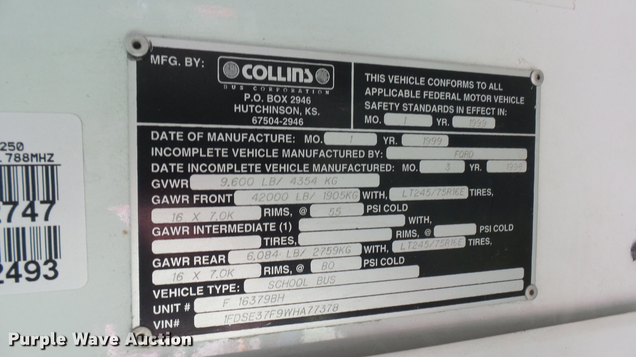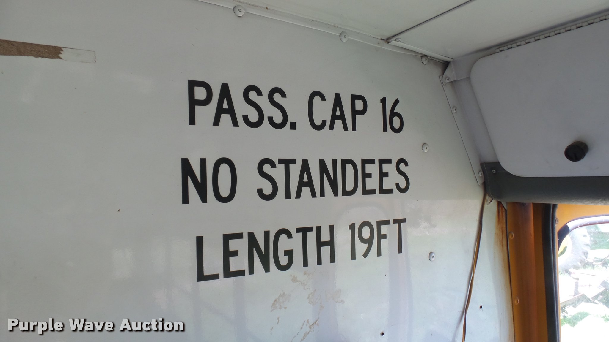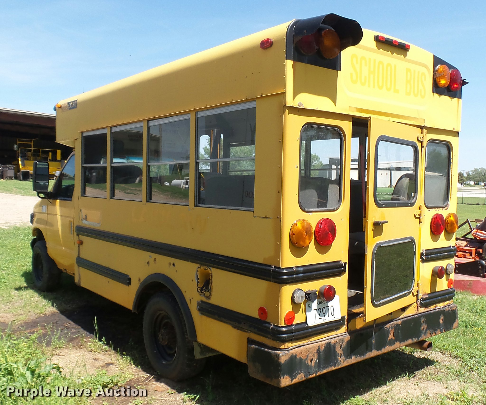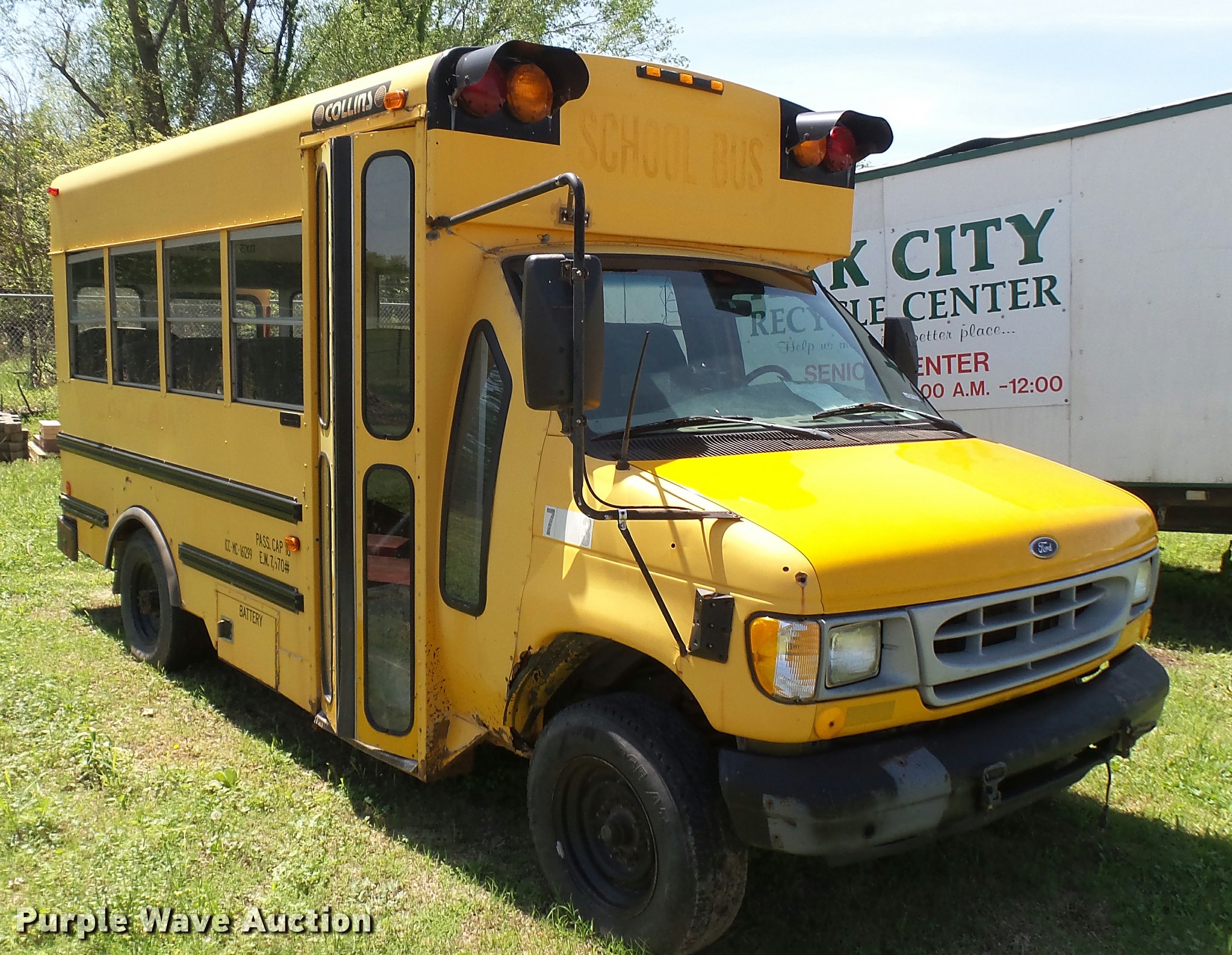 Purple Wave is selling a used Bus in Kansas. This item is a 1998 Ford Econoline Super Duty school bus with the following: 191,249 miles on odometer, 7.3L 16V OHV V8 turbo diesel engine, Automatic transmission, Collins school bus body, Heat, AM/FM/cassette, Manual lwindows and locks, Vinyl interior, 16 passenger, Rust, Dead battery, 225/75R16 tires