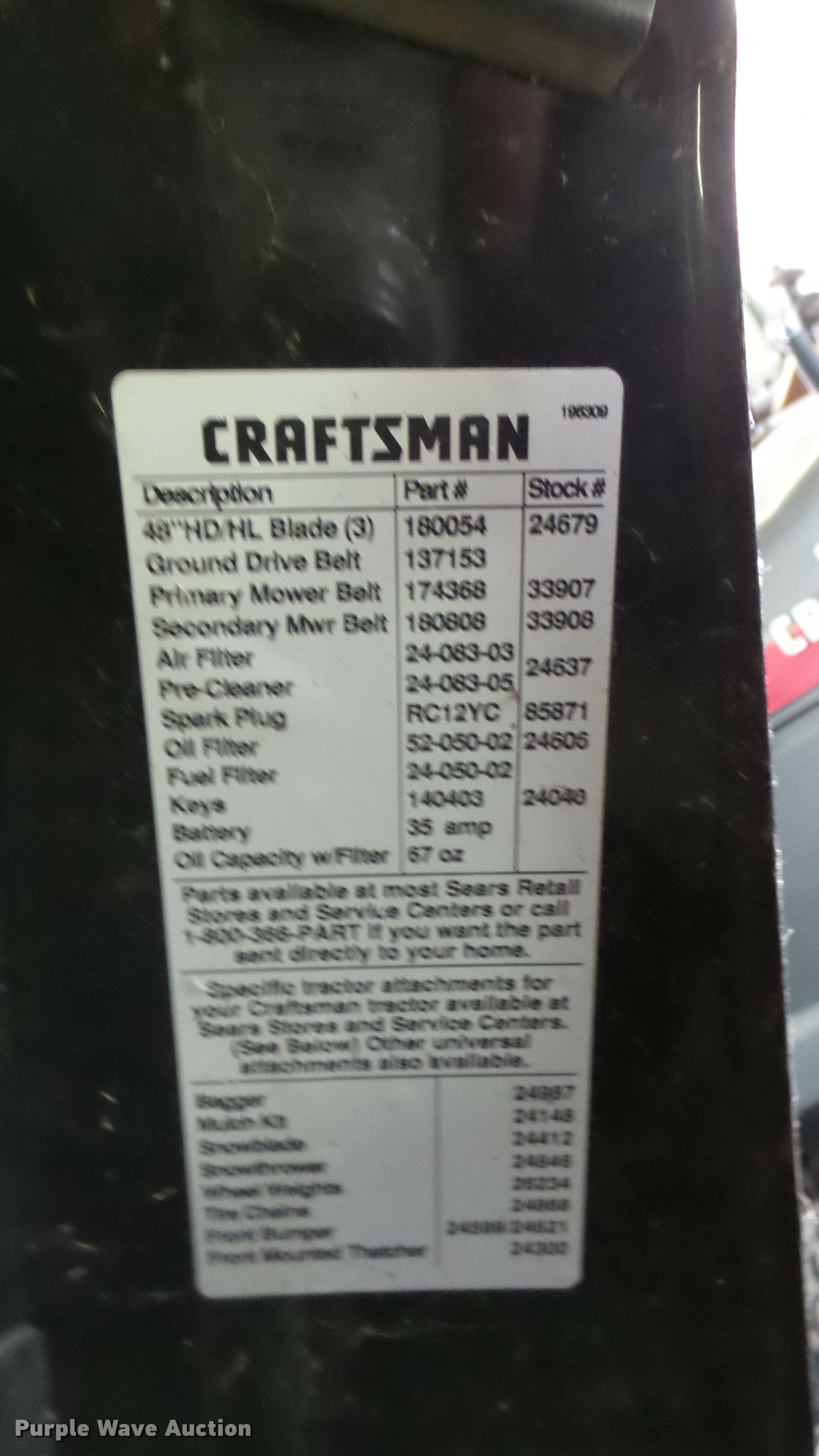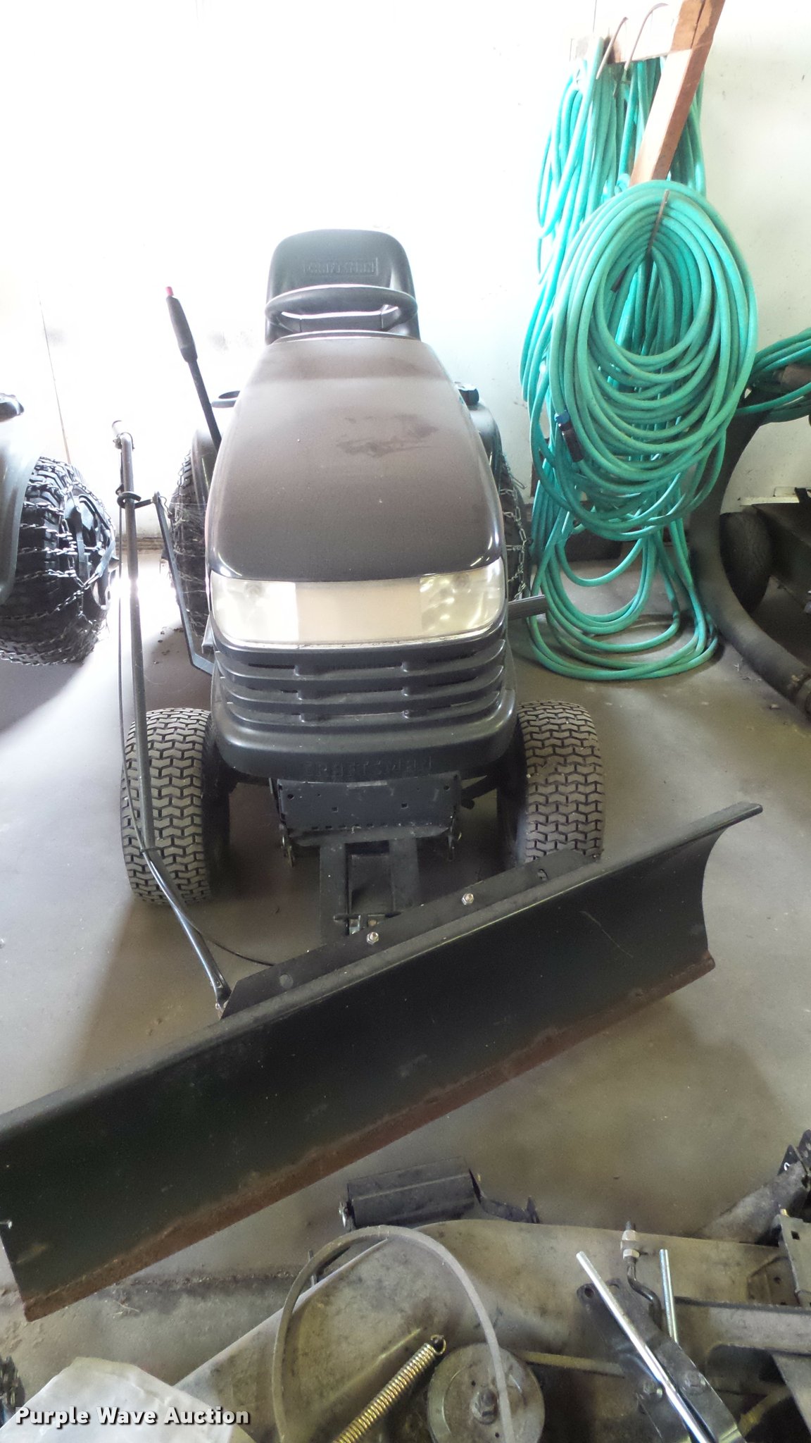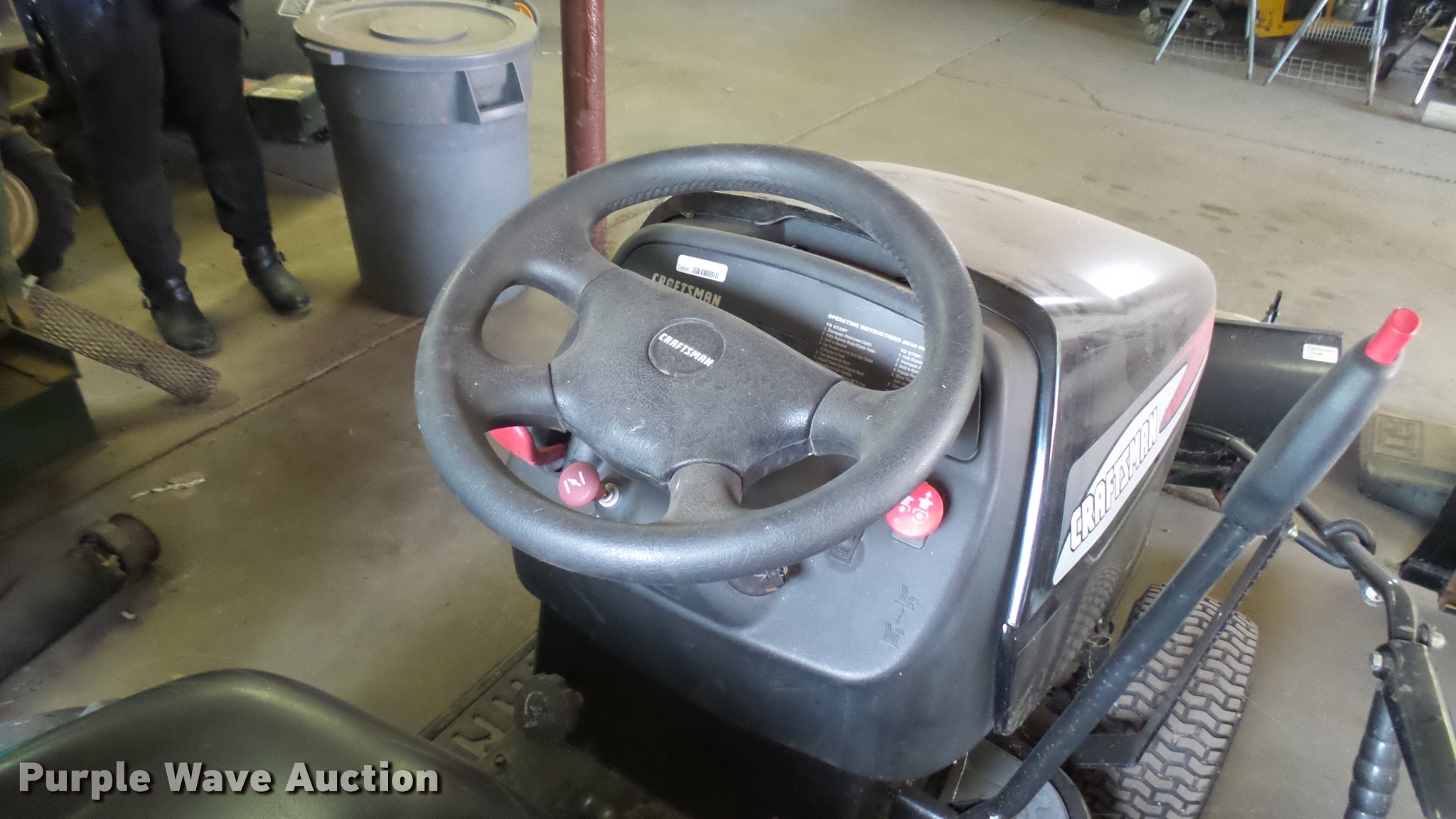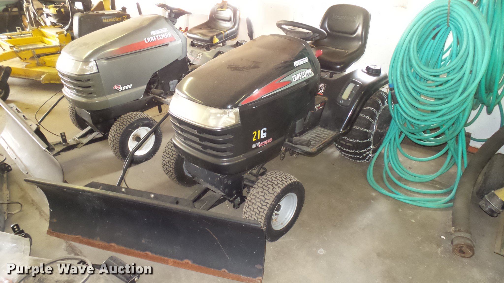 Purple Wave is selling a used Lawn Mower in Kansas. This item is a Craftsman GT5000 lawn mower with the following: 48" cut, Kohler 25 HP gas engine, 6F-2R gears, Rear wheel weights, 48" snow blade, 16x6.50-8 front tires, 23x9.50-12 rear tires, Serial 061305B002766