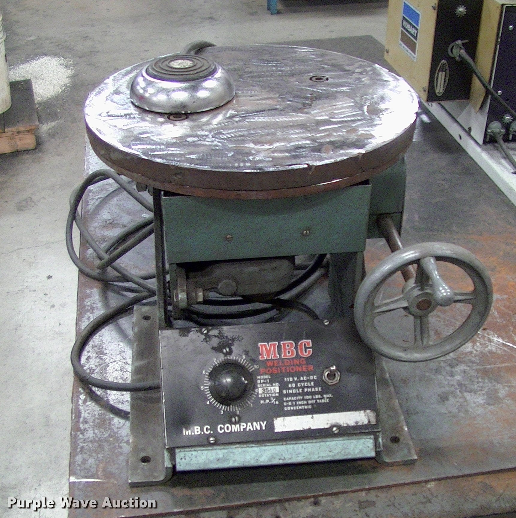 Purple Wave is selling a used Tools in Kansas. This item is a Electric positioner turn table with the following: Tilt, 110V AC-DC, Serial 3540