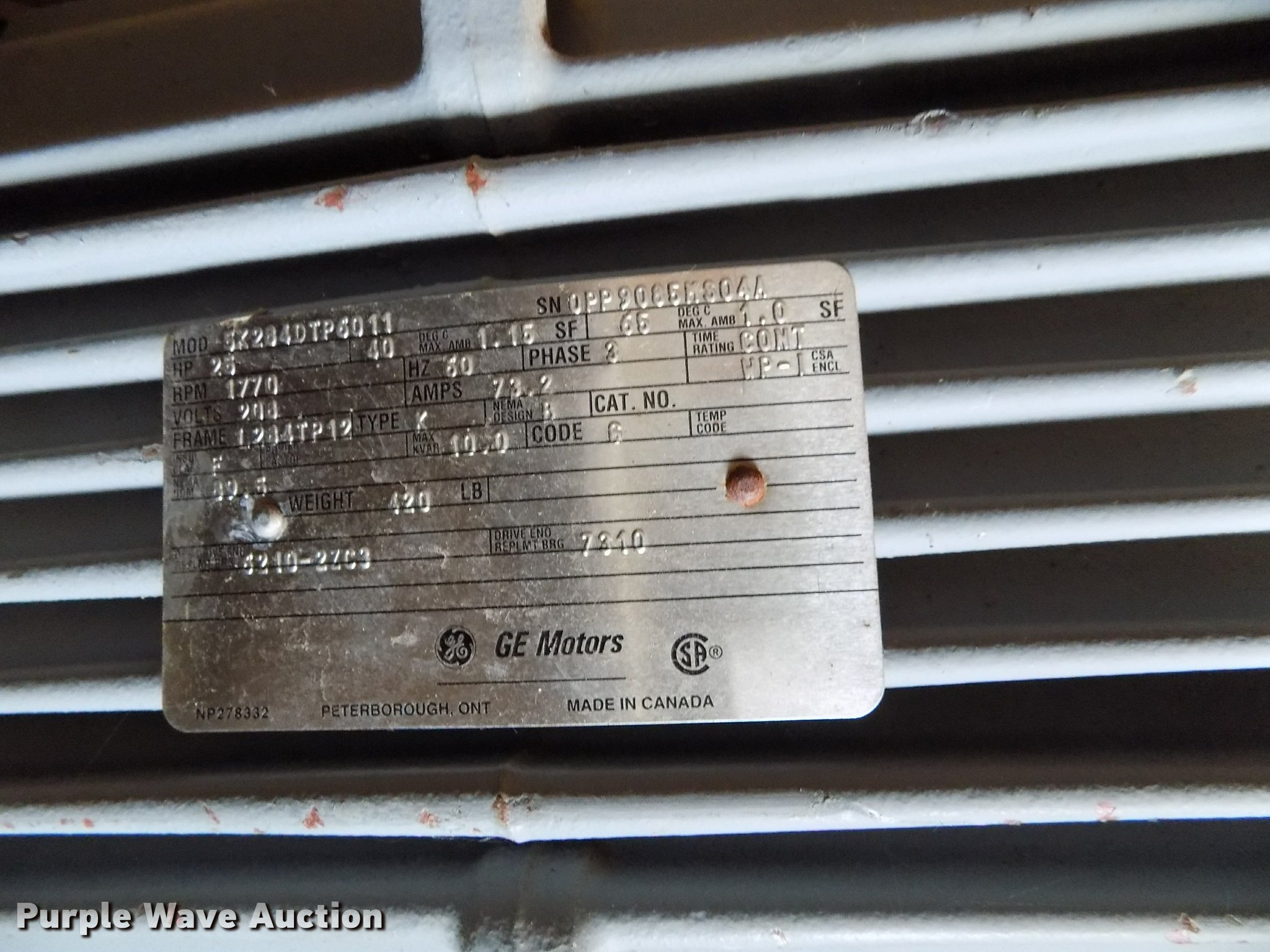 Purple Wave is selling a used Electric Motor in Kansas. This item is a (5) electric motors with the following: Three phase, (3) 25 HP motors, 23" x 18", Model 5K6234XM5038, Serial BPJ222263, Model 5K6234X503A, Serial BPJ222262, 5K2840TP6011, Serial 0PP9085H304A,, (2) 75 HP motors, 42" x 20", Model 5X6255XM5308, Serial HNJ824382, Model 5K6255YM5306, Serial HNJ824381,