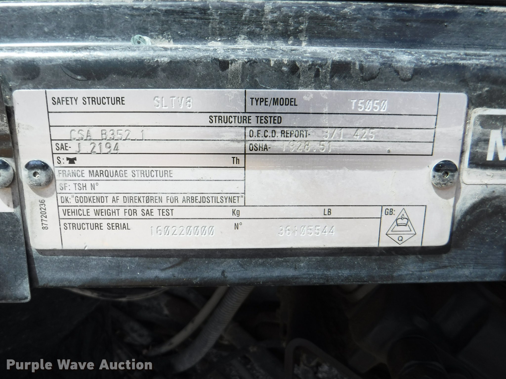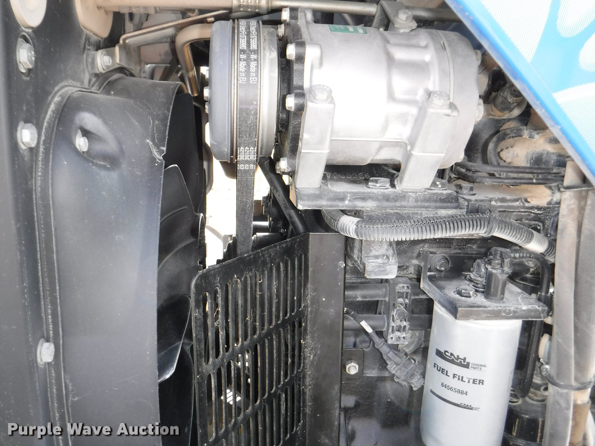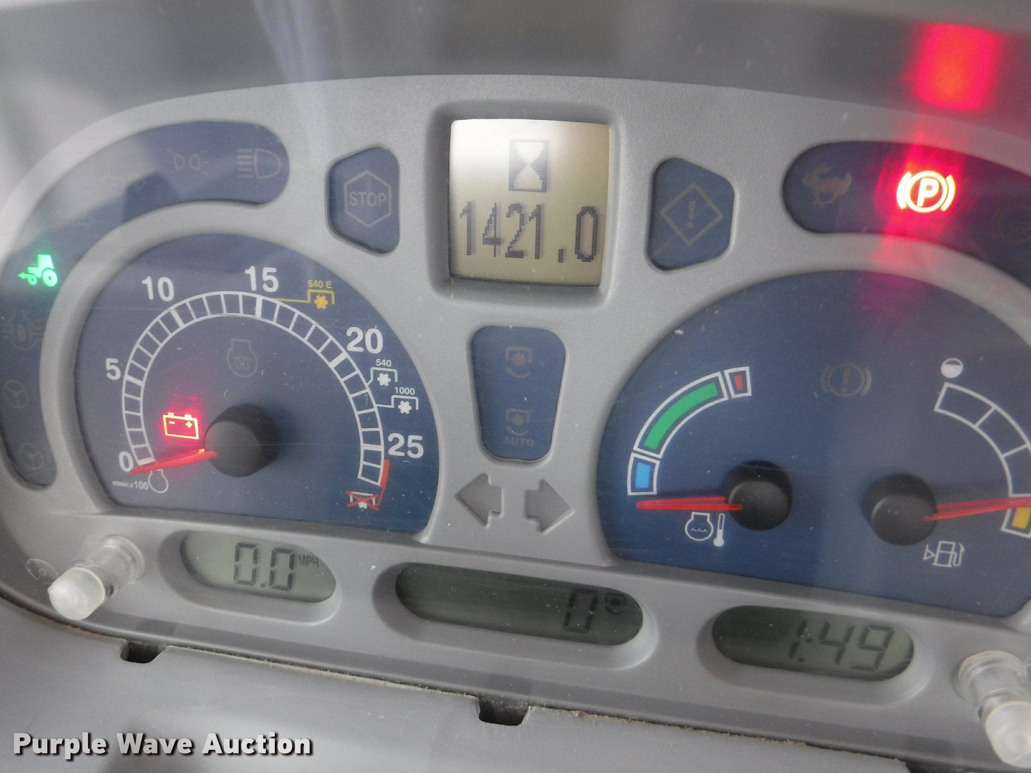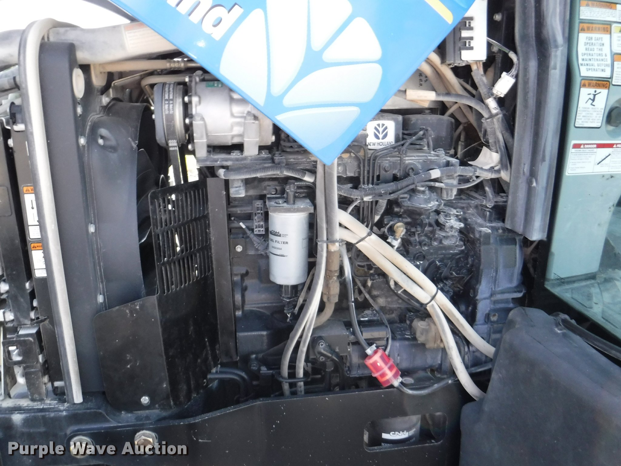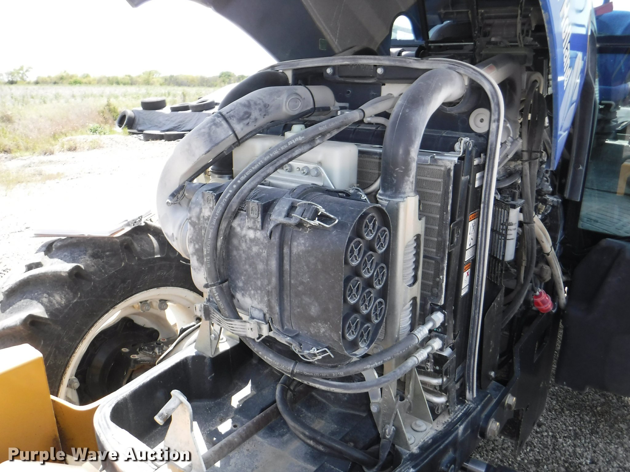 Purple Wave is selling a used Tractor in Kansas. This item is a 2012 New Holland T5050 tractor with the following: 1,421 hours on meter, New Holland 4.5L four cylinder turbo diesel engine, Serial 445TA/MND, Hydrostatic transmission, 12F-12R gears, AC and heat, Tilt steering wheel, AM/FM, Suspension seat, Cloth seat, Front and rear work lights, Front and rear wipers, Three point, Seven pin outlet, Front mounted PTO, 540 PTO, ISO electrical outlet, Draw bar, (3) rear hydraulic remote sets, 2012 Tiger TSR60 side boom rotary mower, 5'W, Serial TSR0208, Wheel weights, 11.2-24 front tires, 16.9R30 rear tires, Serial ZBJH23675, Unit# W-6