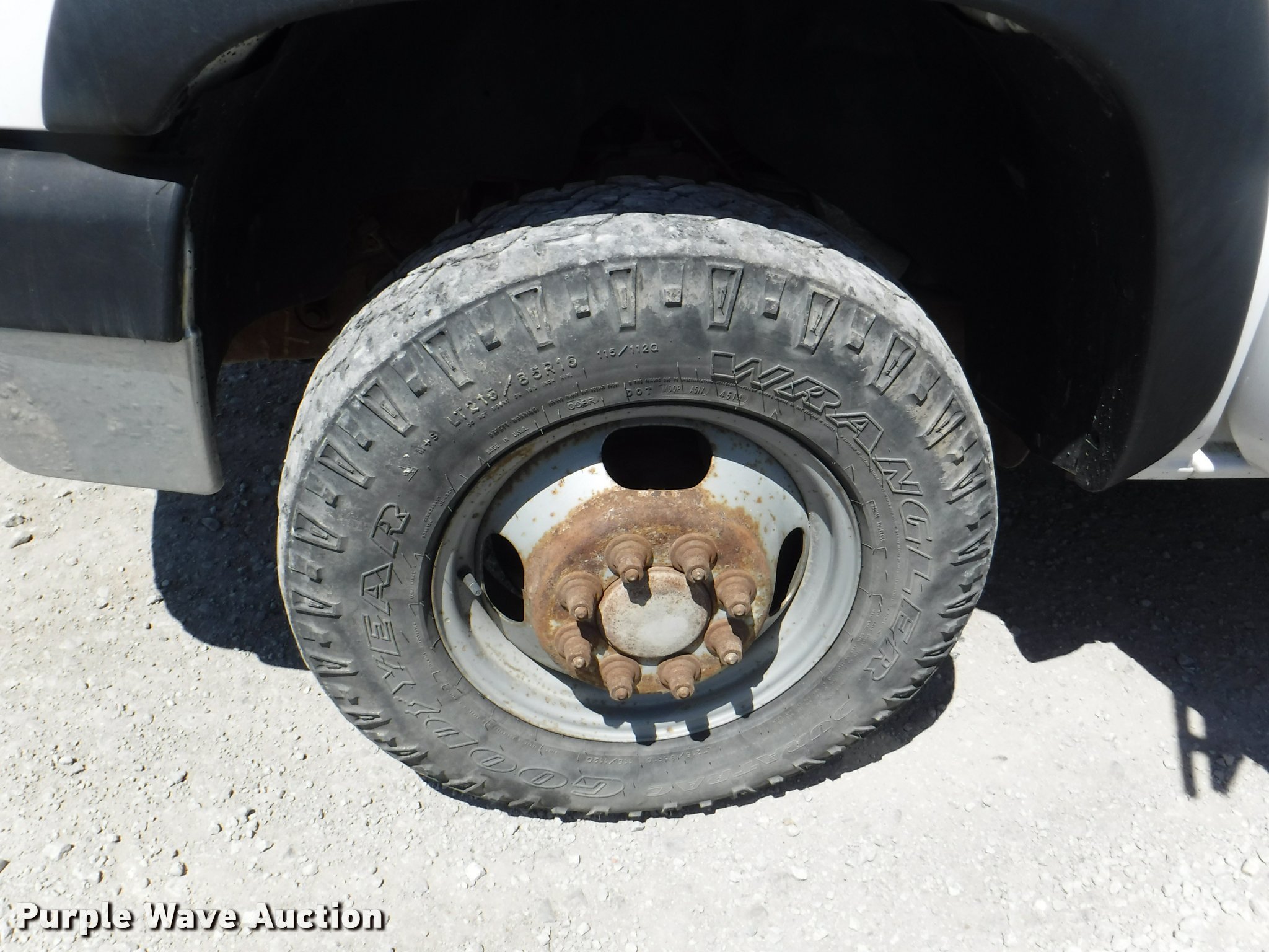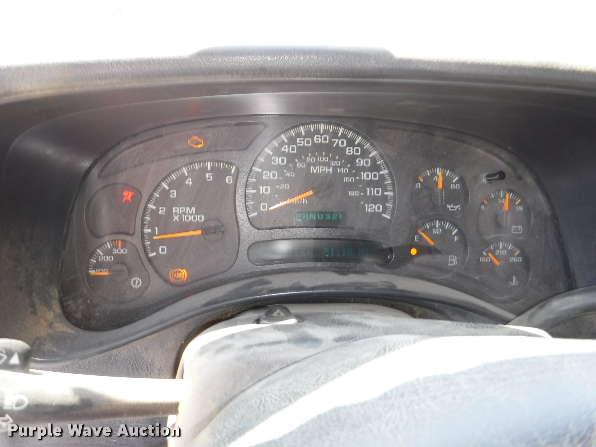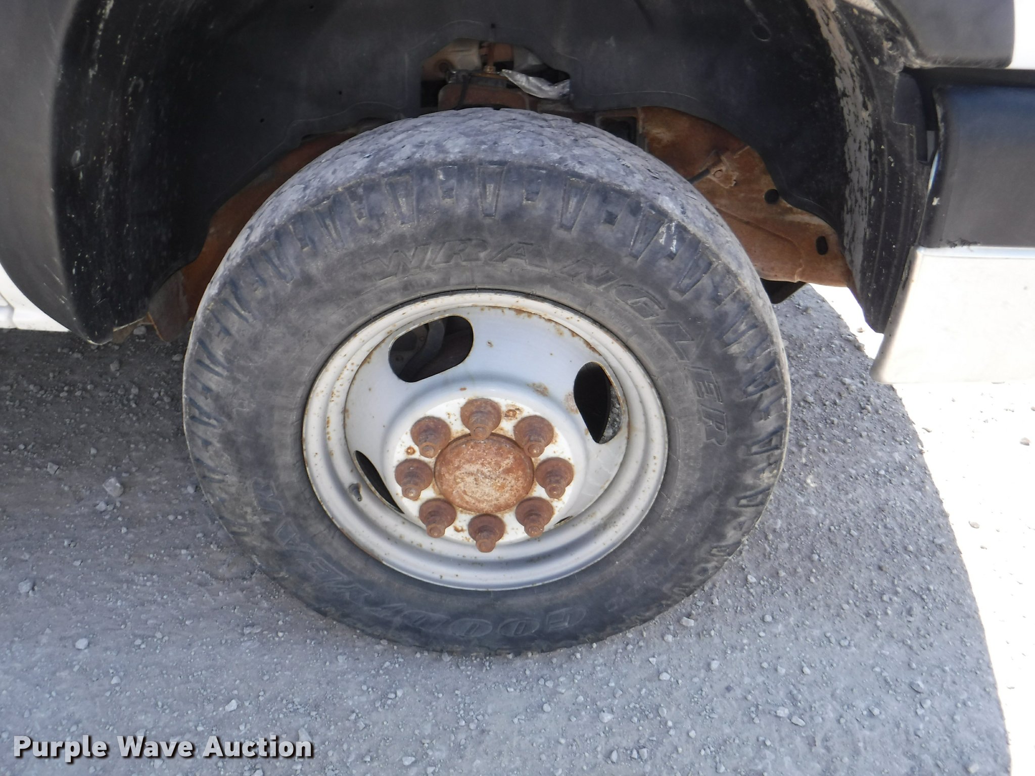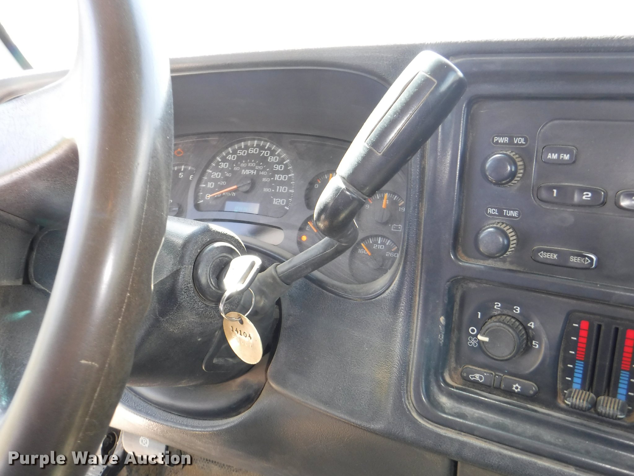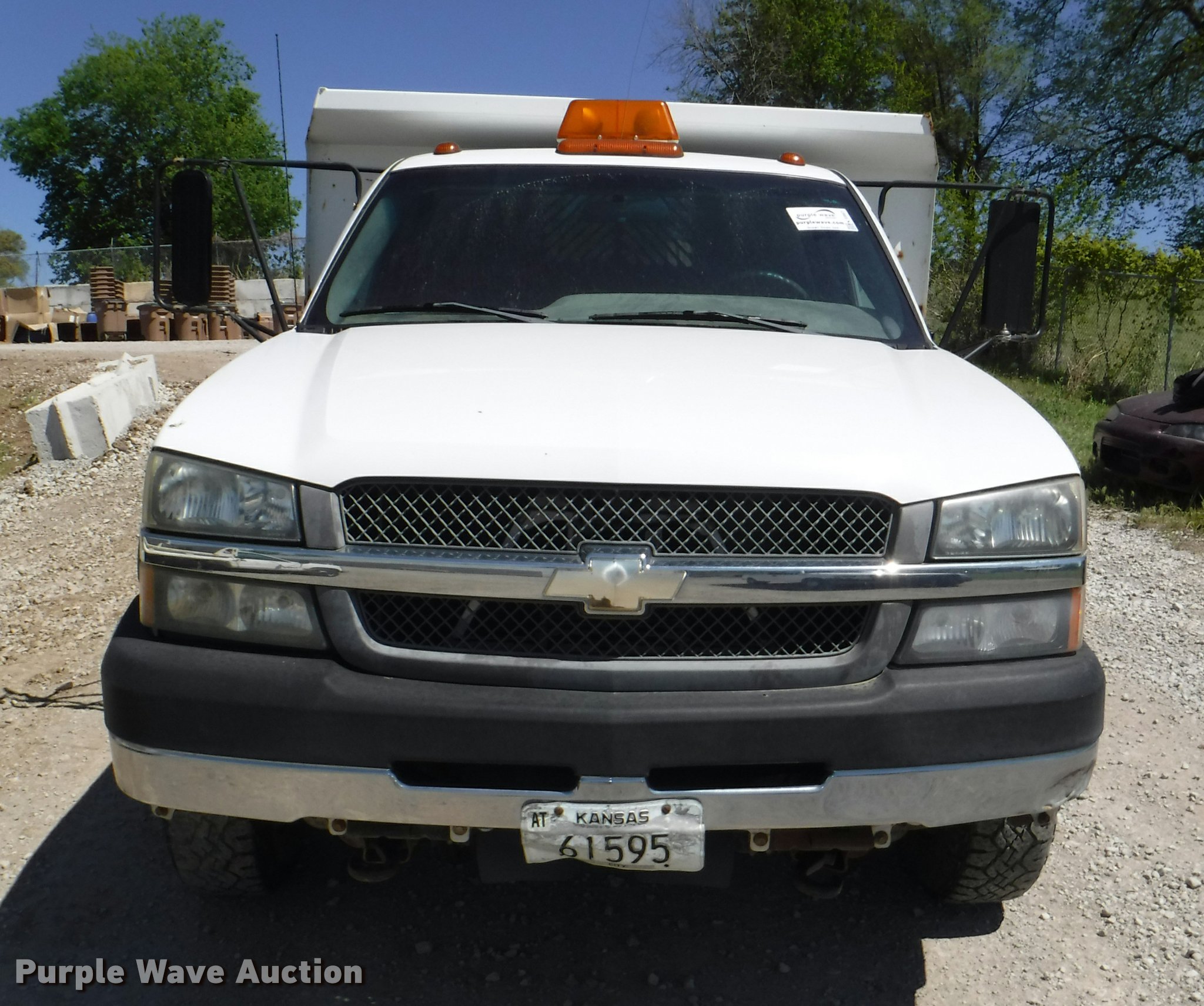Purple Wave is selling a used 3/4 or 1 Ton Pickup or Van in Kansas. This item is a 2004 Chevrolet Silverado 3500 flatbed pickup truck with the following: 51,110 miles on odometer, 4,295 hours on meter, 6.0L V8 OHV 16V gas engine, Automatic transmission, Four wheel drive, AC and heat, Tilt, AM/FM, Manual windows and locks, Cloth and vinyl interior, Strobe light, Front tow hooks, Rugby flatbed, 11'L x 8'W, 16" side height, Manual end gate, Serial 168557, Pintle hitch, 215/85R16 tires, Engine and ABS lights on, Headliner damage, Unit# 14104
