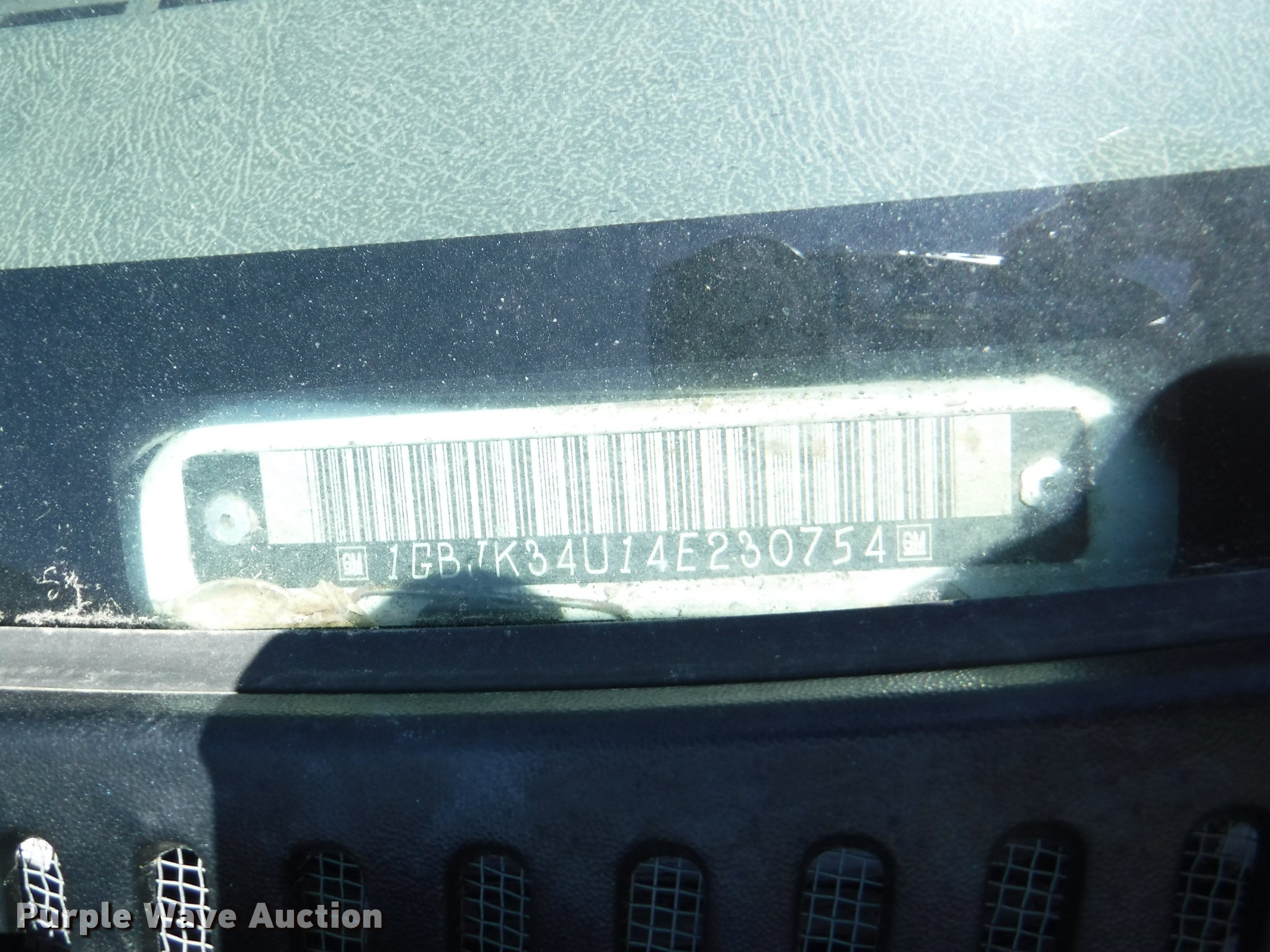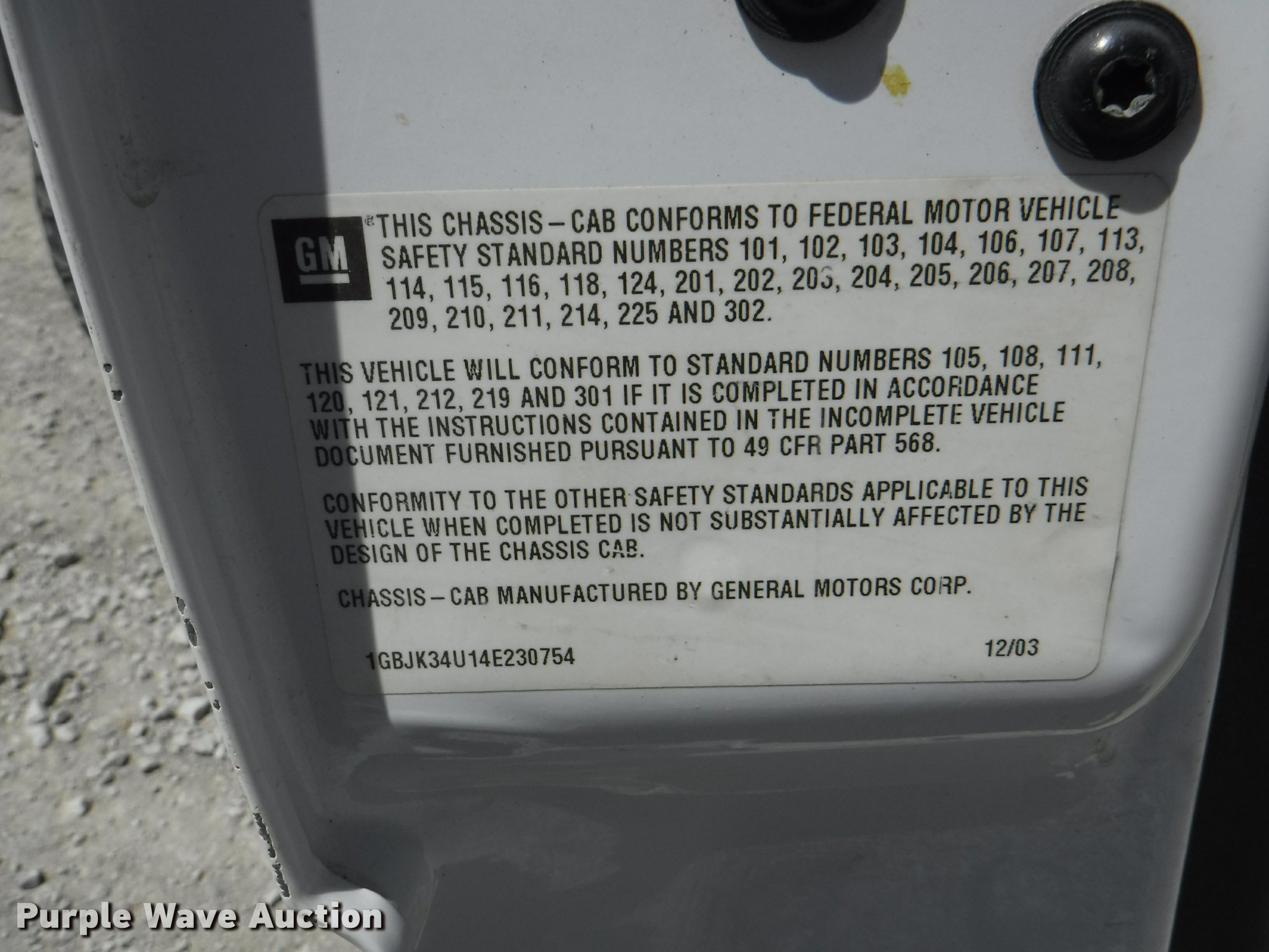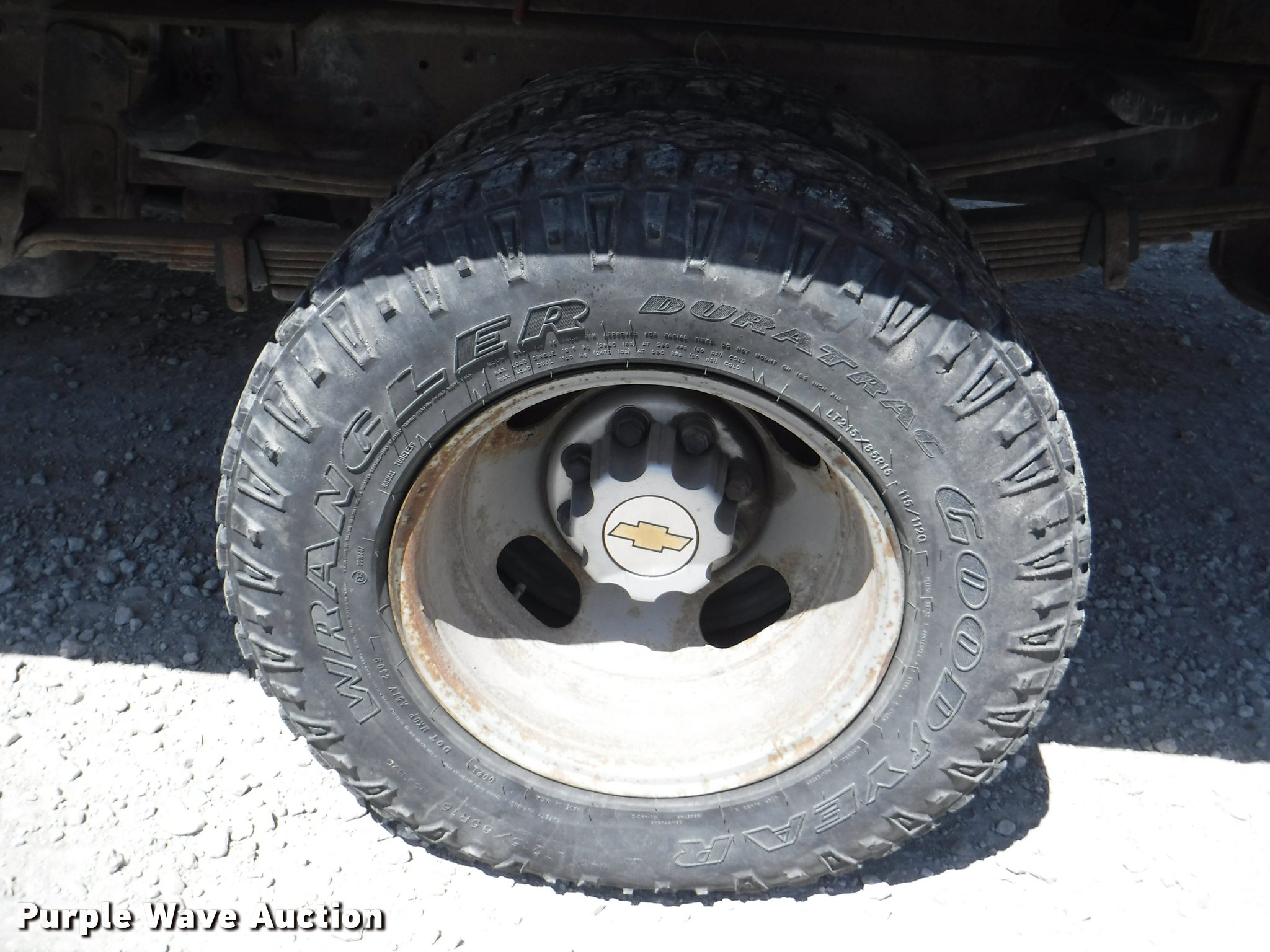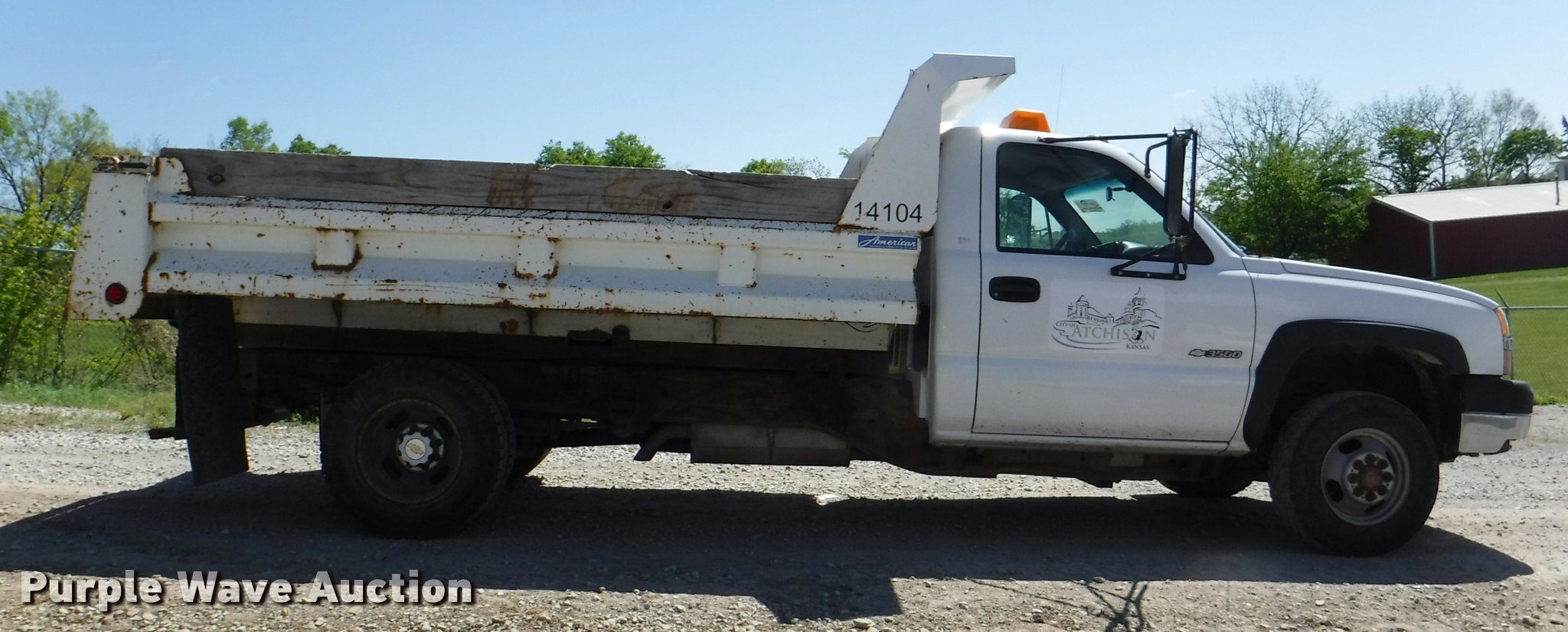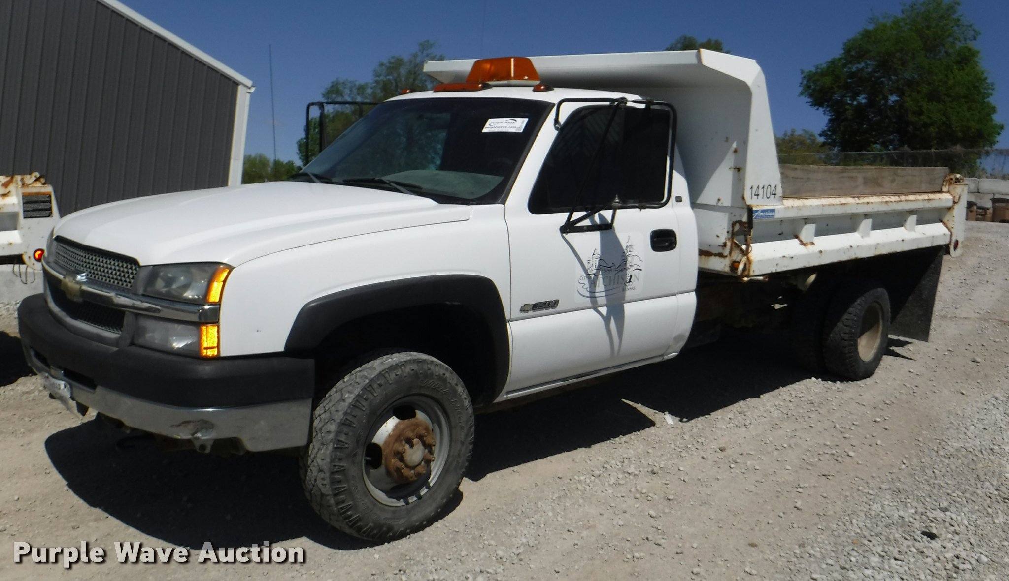 Purple Wave is selling a used 3/4 or 1 Ton Pickup or Van in Kansas. This item is a 2004 Chevrolet Silverado 3500 flatbed pickup truck with the following: 51,110 miles on odometer, 4,295 hours on meter, 6.0L V8 OHV 16V gas engine, Automatic transmission, Four wheel drive, AC and heat, Tilt, AM/FM, Manual windows and locks, Cloth and vinyl interior, Strobe light, Front tow hooks, Rugby flatbed, 11'L x 8'W, 16" side height, Manual end gate, Serial 168557, Pintle hitch, 215/85R16 tires, Engine and ABS lights on, Headliner damage, Unit# 14104