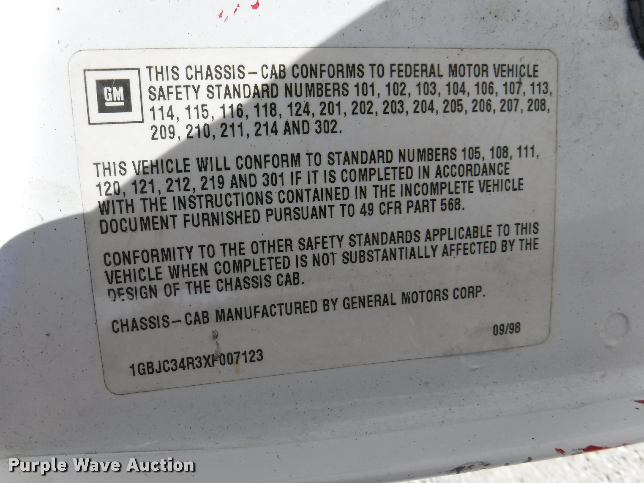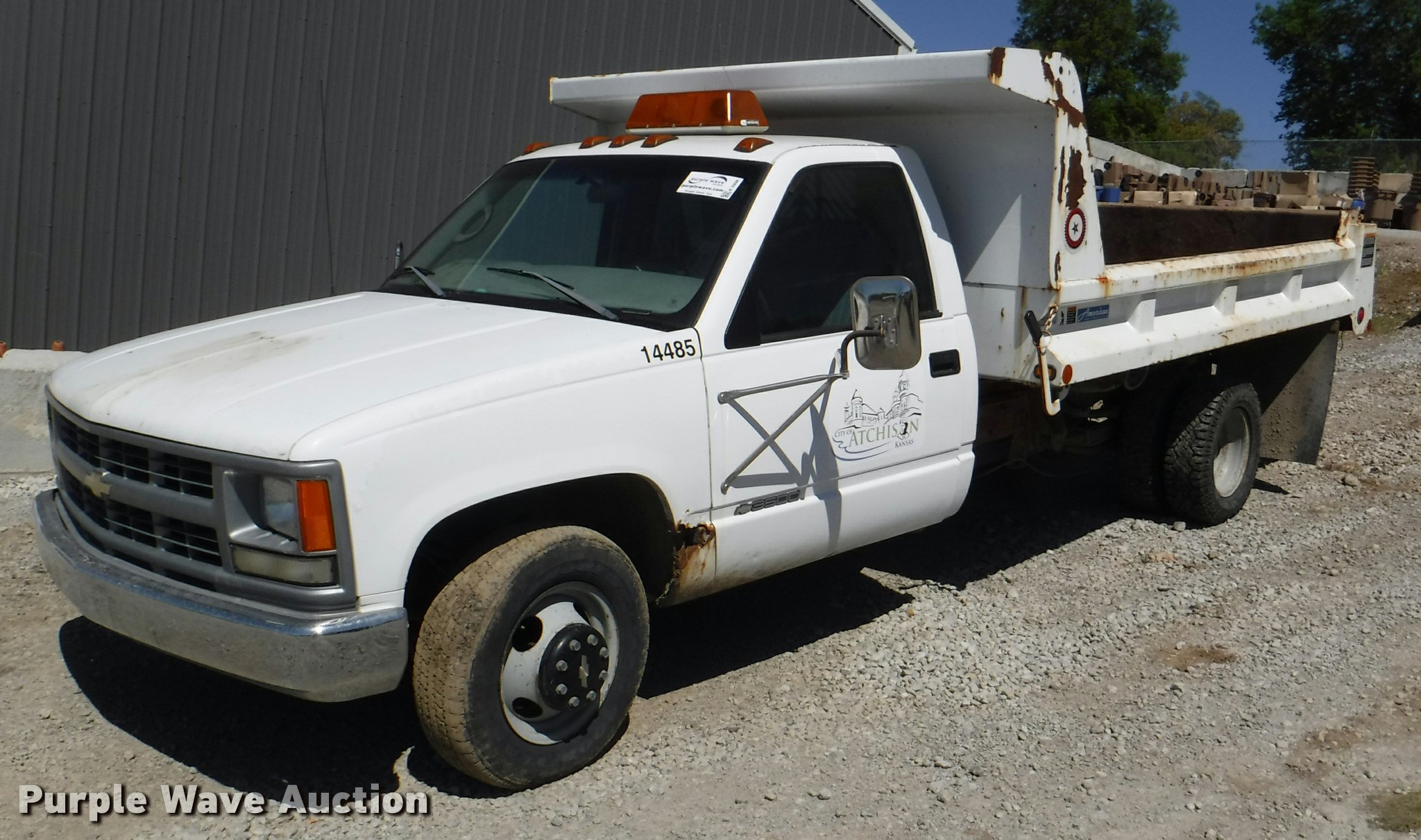 Purple Wave is selling a used 1/2 Ton Pickup or Van in Kansas. This item is a 1999 Chevrolet 3500 flatbed pickup truck with the following: 62,142 miles on odometer, 5.7L V8 OHV 16V gas engine, Automatic transmission, AC and heat, Tilt, AM/FM, Manual windows and locks, Cloth interior, Backup alarm, Strobe light, American flatbed, 11'L x 8'W, 16" side height, Interior controls, 225/75R16 tires, Rust, Unit# 14485