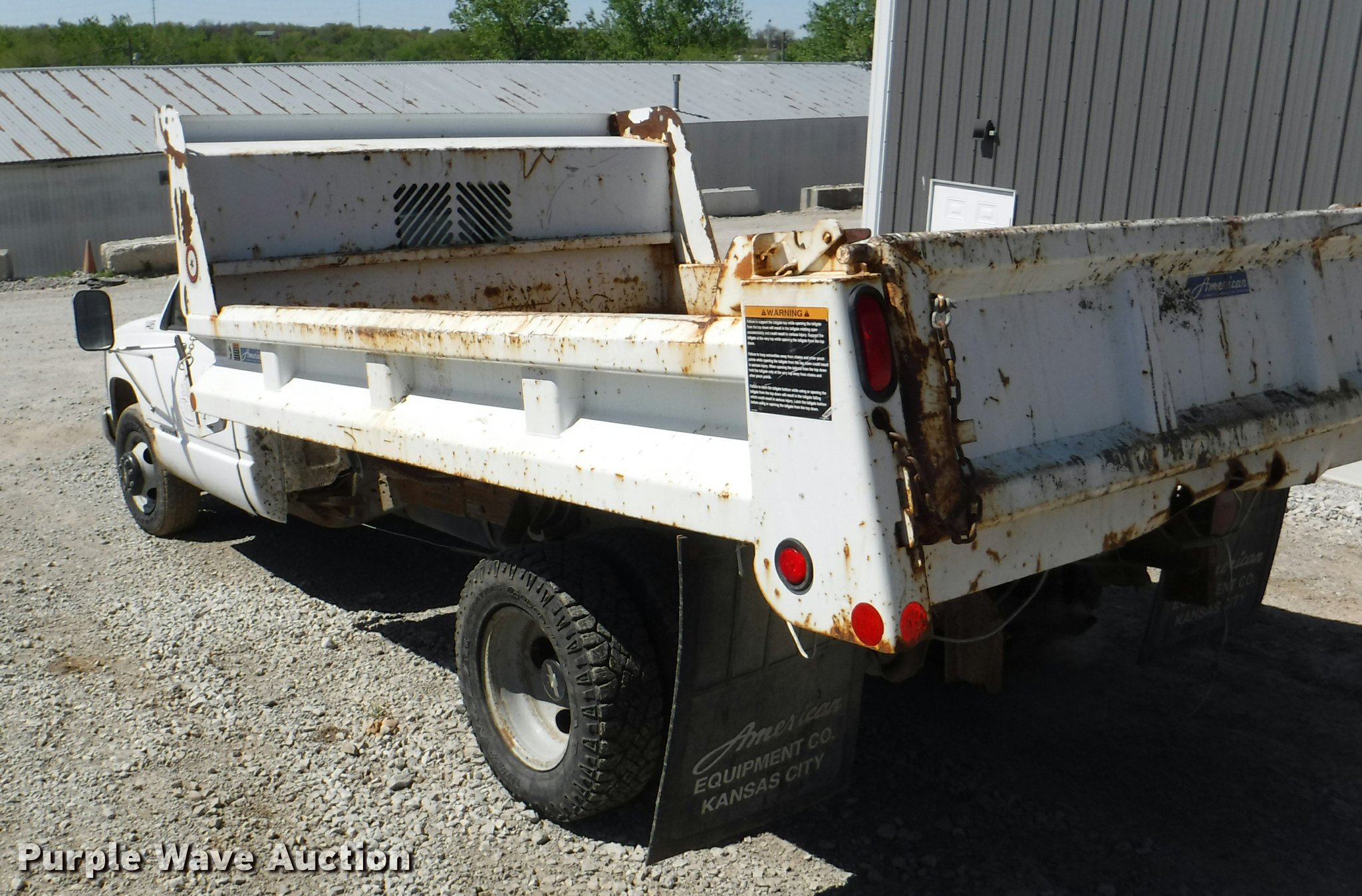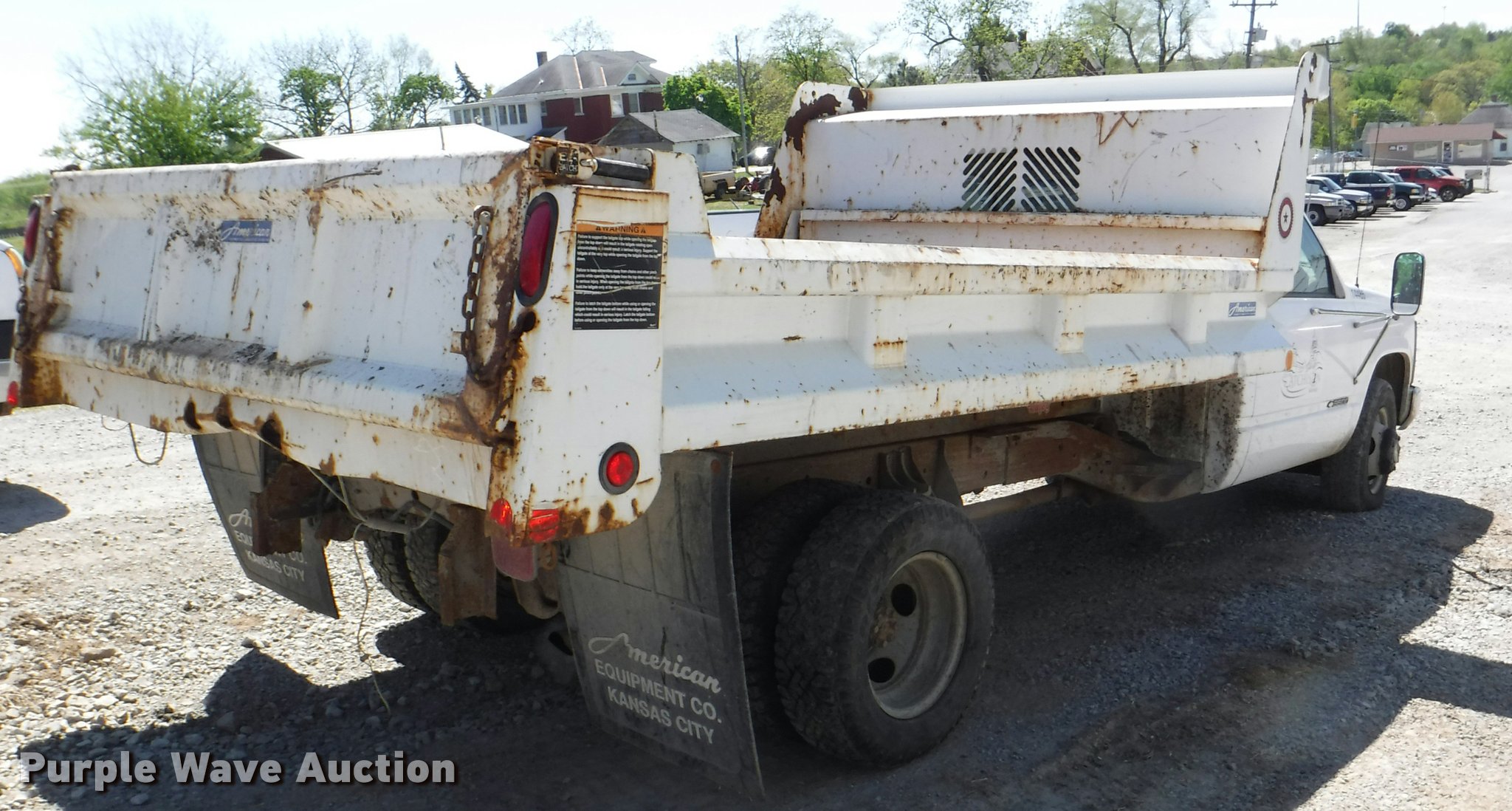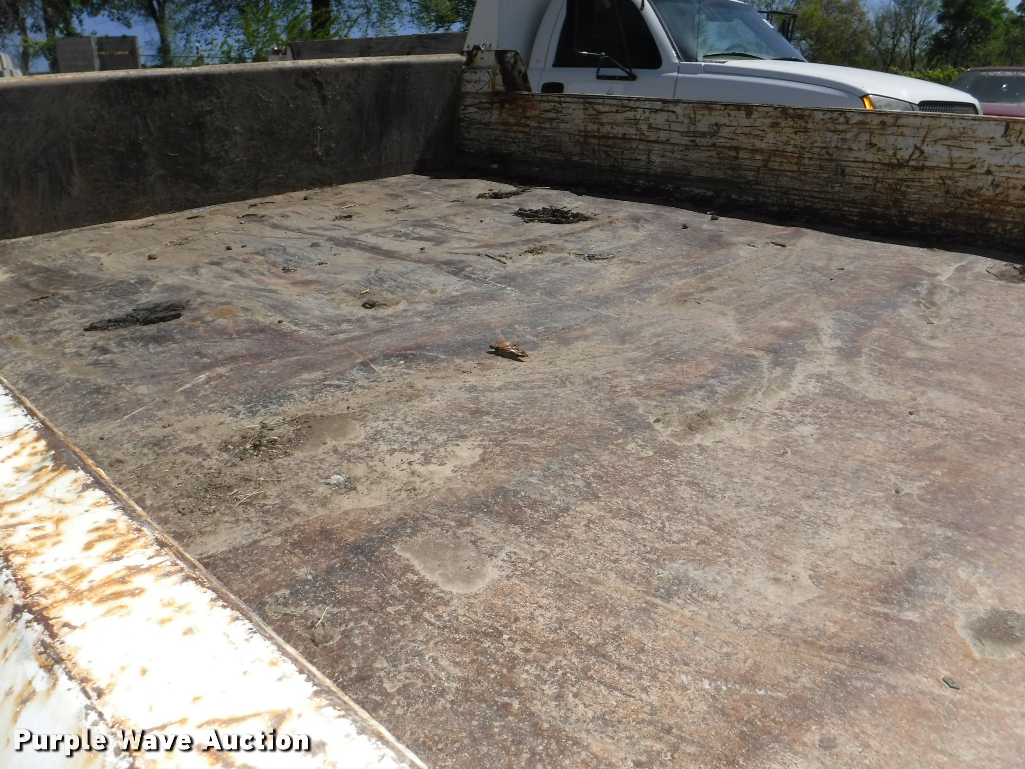 1999 Chevrolet 3500 flatbed pickup truck. 62,142 miles on odometer, 5.7L V8 OHV 16V gas engine, Automatic transmission, AC and heat, Tilt, AM/FM, Manual windows and locks, Cloth interior, Backup alarm, Strobe light, American flatbed 11'L x 8'W, 16" side height, Interior controls, 225/75R16 tires, Rust, Unit# 14485. Kansas title. 1GBJC34R3XF007123. Atchison, KS 66002