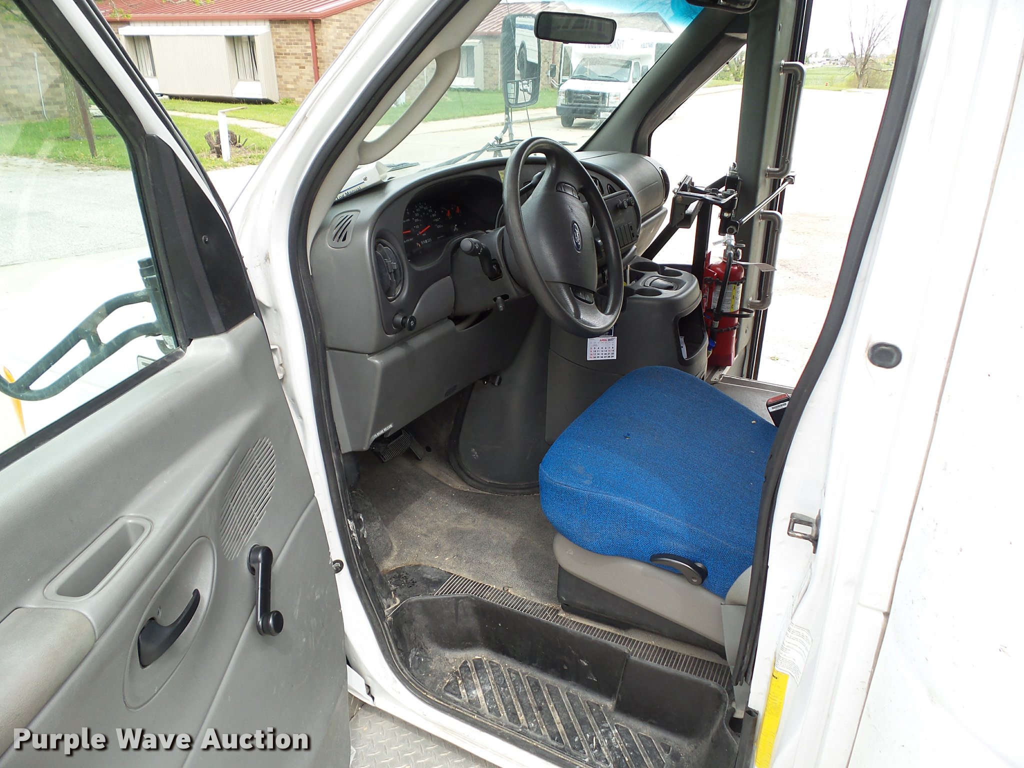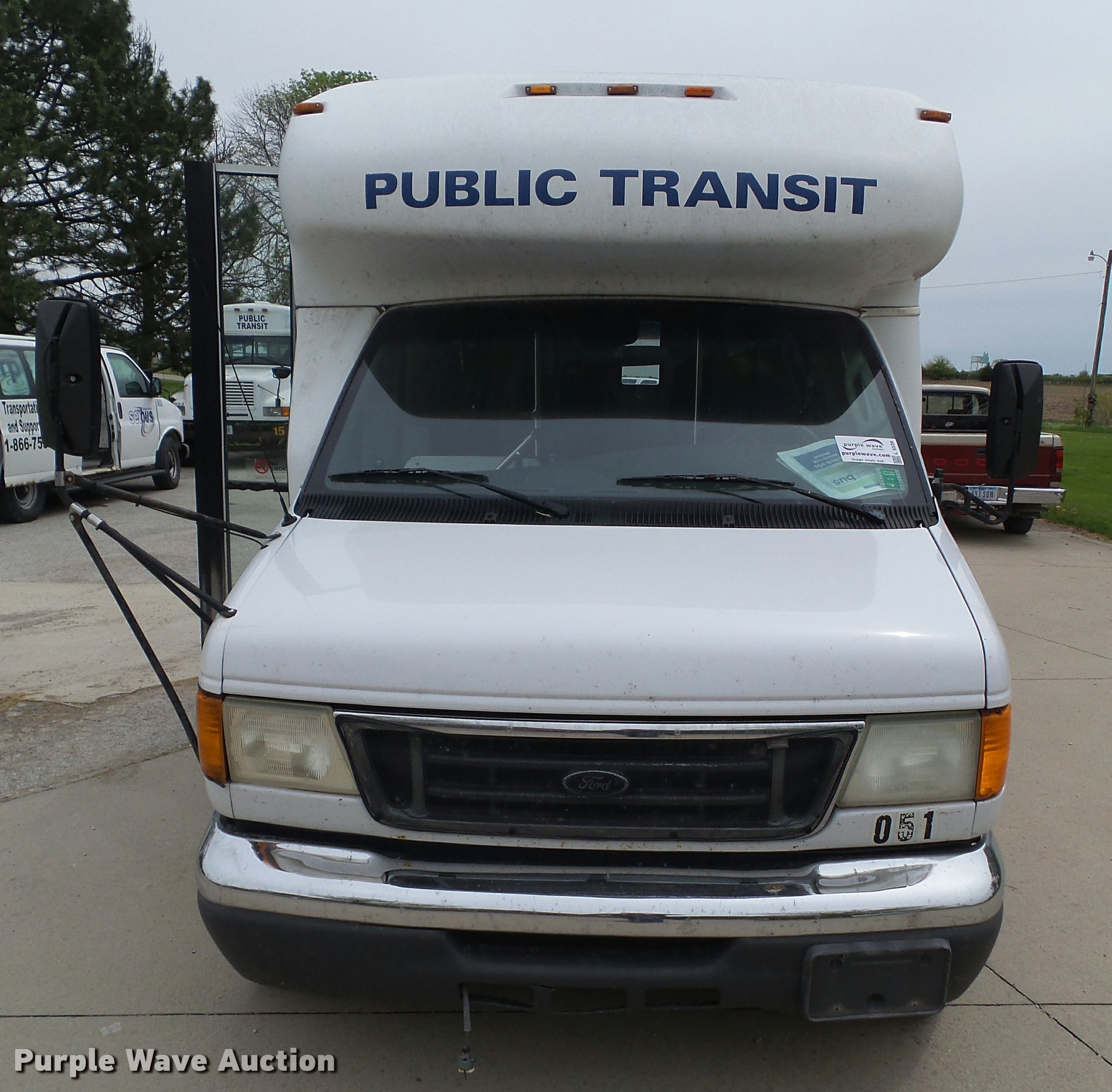 Purple Wave is selling a used Bus in Iowa. This item is a 2005 Ford E450 Super Duty BSSN25 shuttle bus with the following: 200,000 miles on odometer, 6.0L V8 OHV 32V turbo diesel engine, Automatic transmission, Single axle, AC and heat, AM/FM/CD, Suspension seat, Ceiling handrail, 20 passenger capacity, (20) adult seats, Seat belts, Braun NL919FIB wheelchair lift, Serial A1-00170, (2) wheelchair tie down areas, Ceiling and rear emergency exits, Emergency door alarms, Carrier AC unit, Backup alarm, Hydraulic brakes, 176" wheelbase, LT225/75R16 tires, GVWR 14,050 lbs