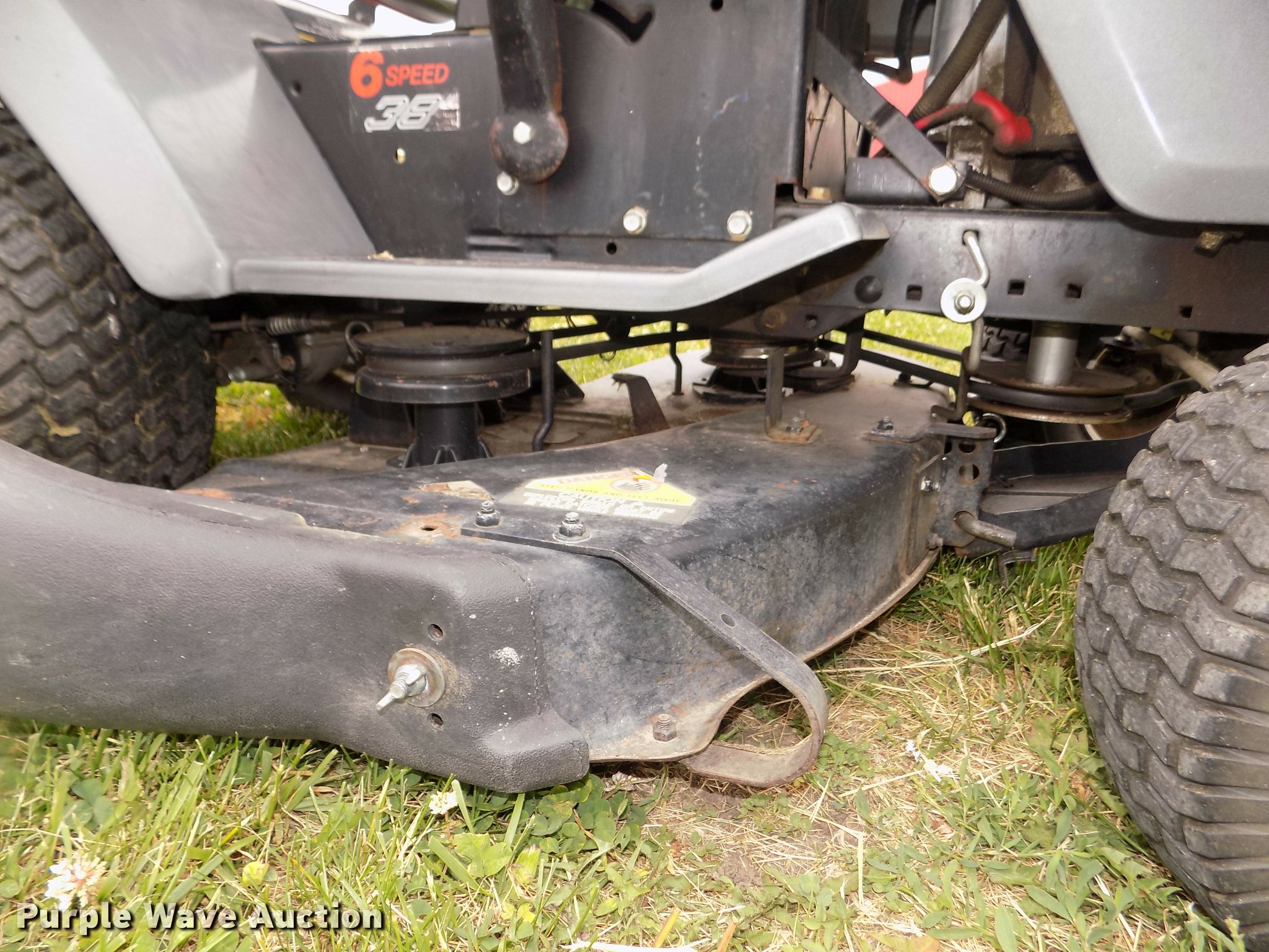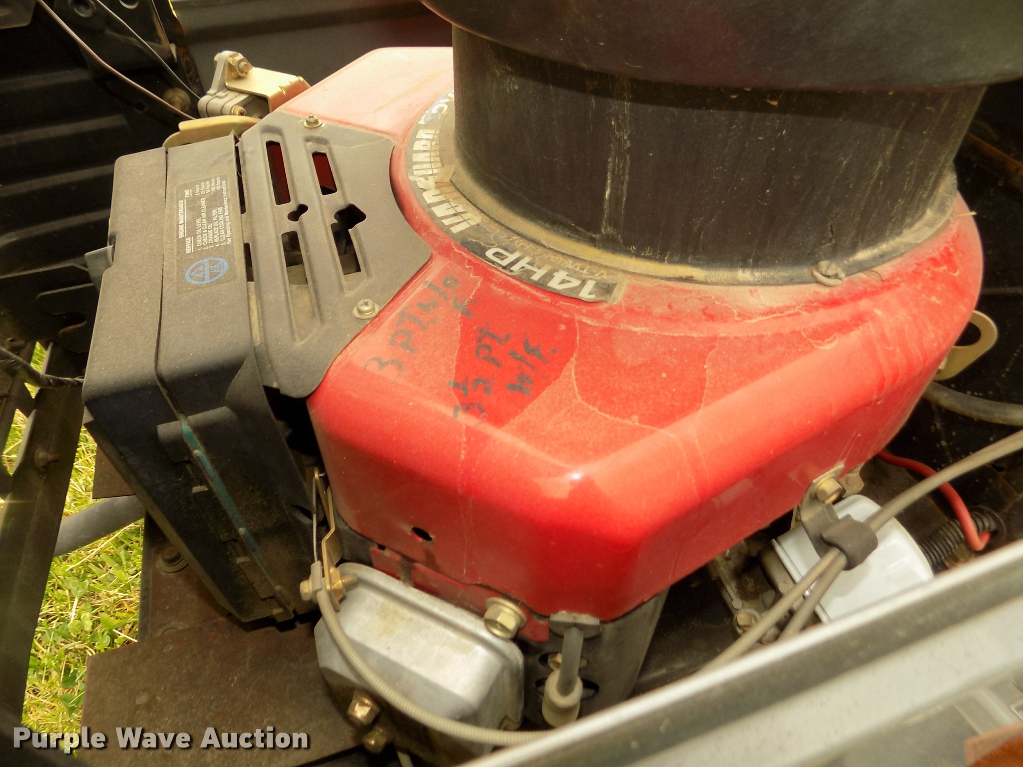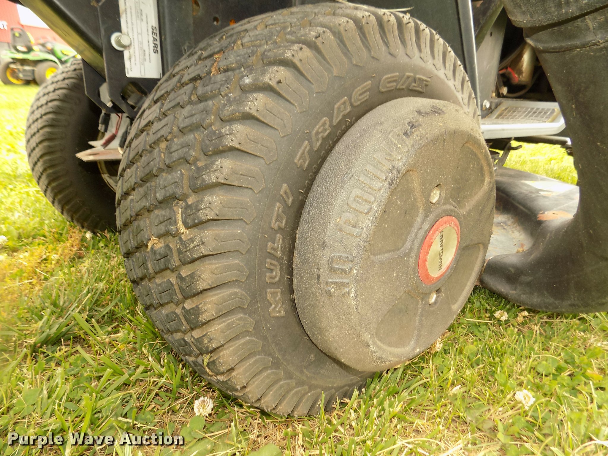 Purple Wave is selling a used Lawn Mower in Nebraska. This item is a Sears Craftsman LT4000 lawn mower with the following: Model 917.255540, 38" cut, Vanguard two cylinder gas engine, 14 HP, Six speed transmission, Headlights, Grill guard, Rear bagging system, Removable plastic tubes, Rear pin hitch, Parking brake, 15x6.00-6 front tires, 18x9.50-8 rear tires, Additional blades, Serial 1421S04161