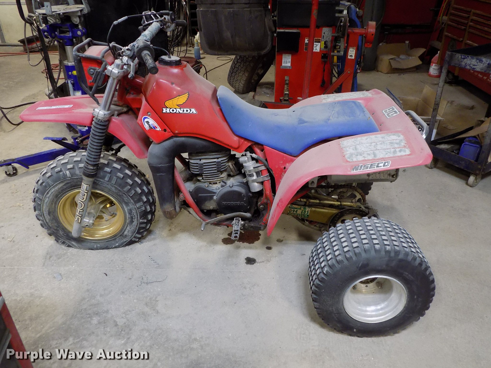 Purple Wave is selling a used ATV in Kansas. This item is a 1984 Honda 250R ATV with the following: 250CC gas engine, Five speed manual transmission, Twist throttle, 23.5x8.00 tires, Oil leak, Front tire flat, Unknown operating condition