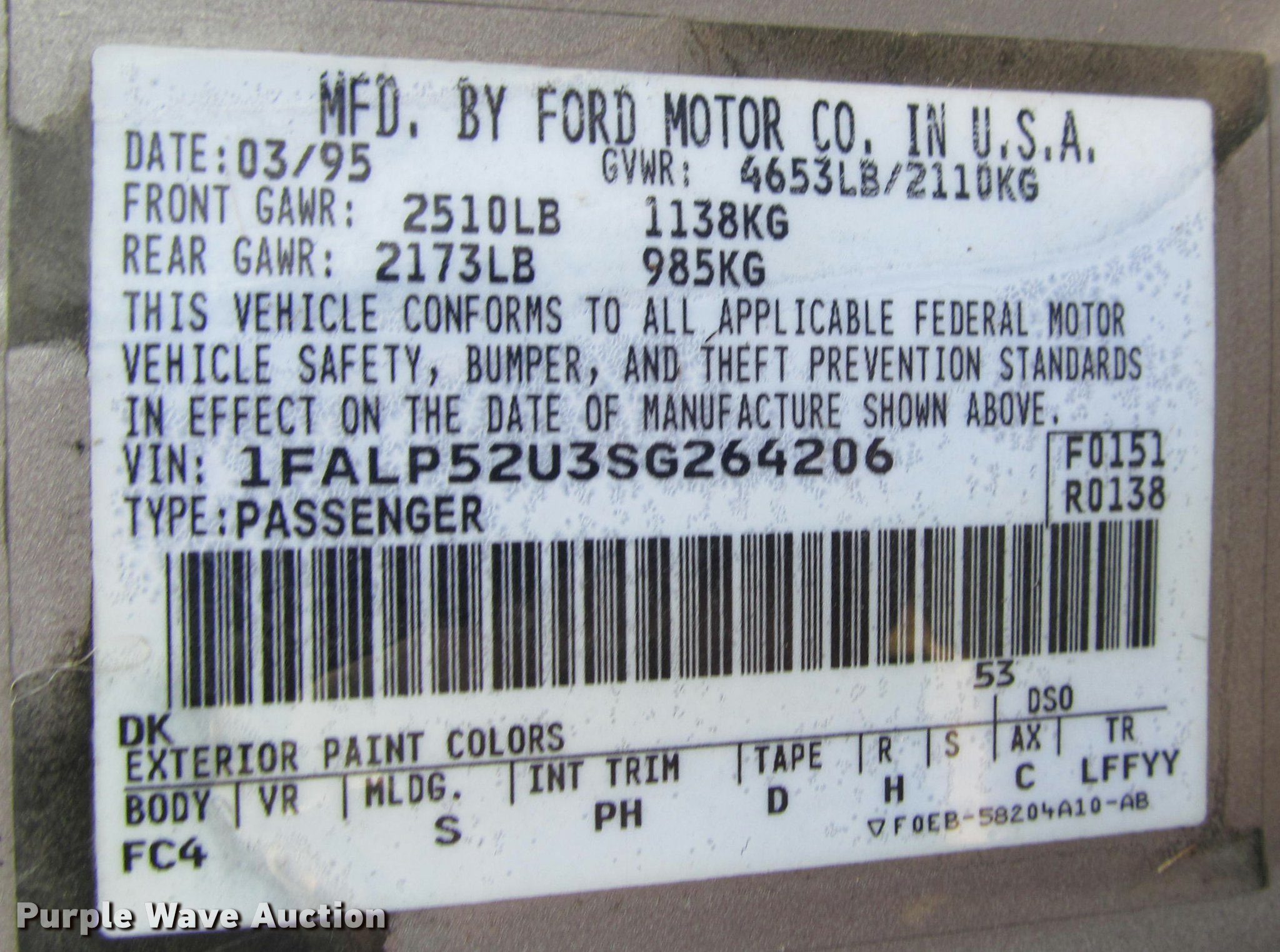 • J2575 image for item J2575 1995 Ford Taurus