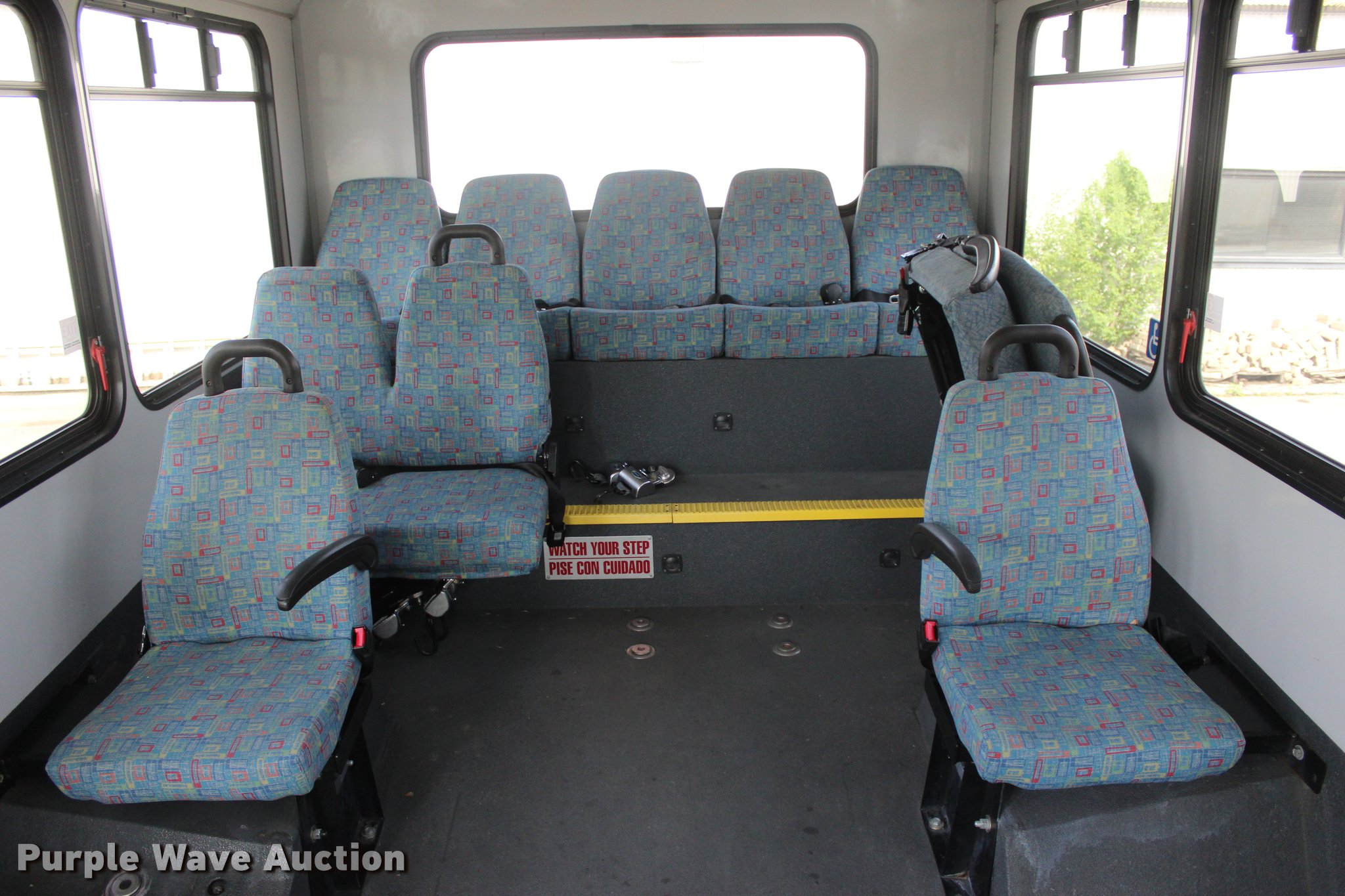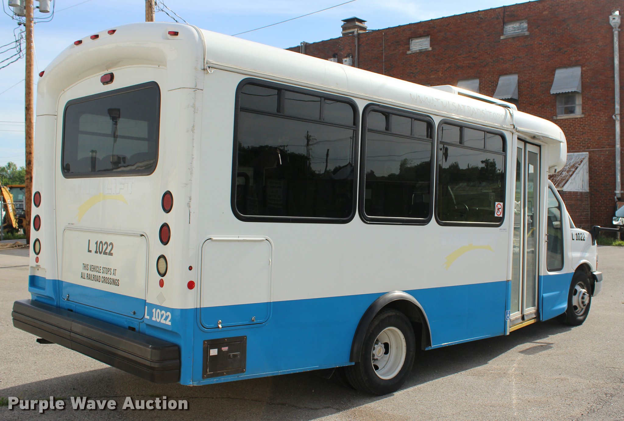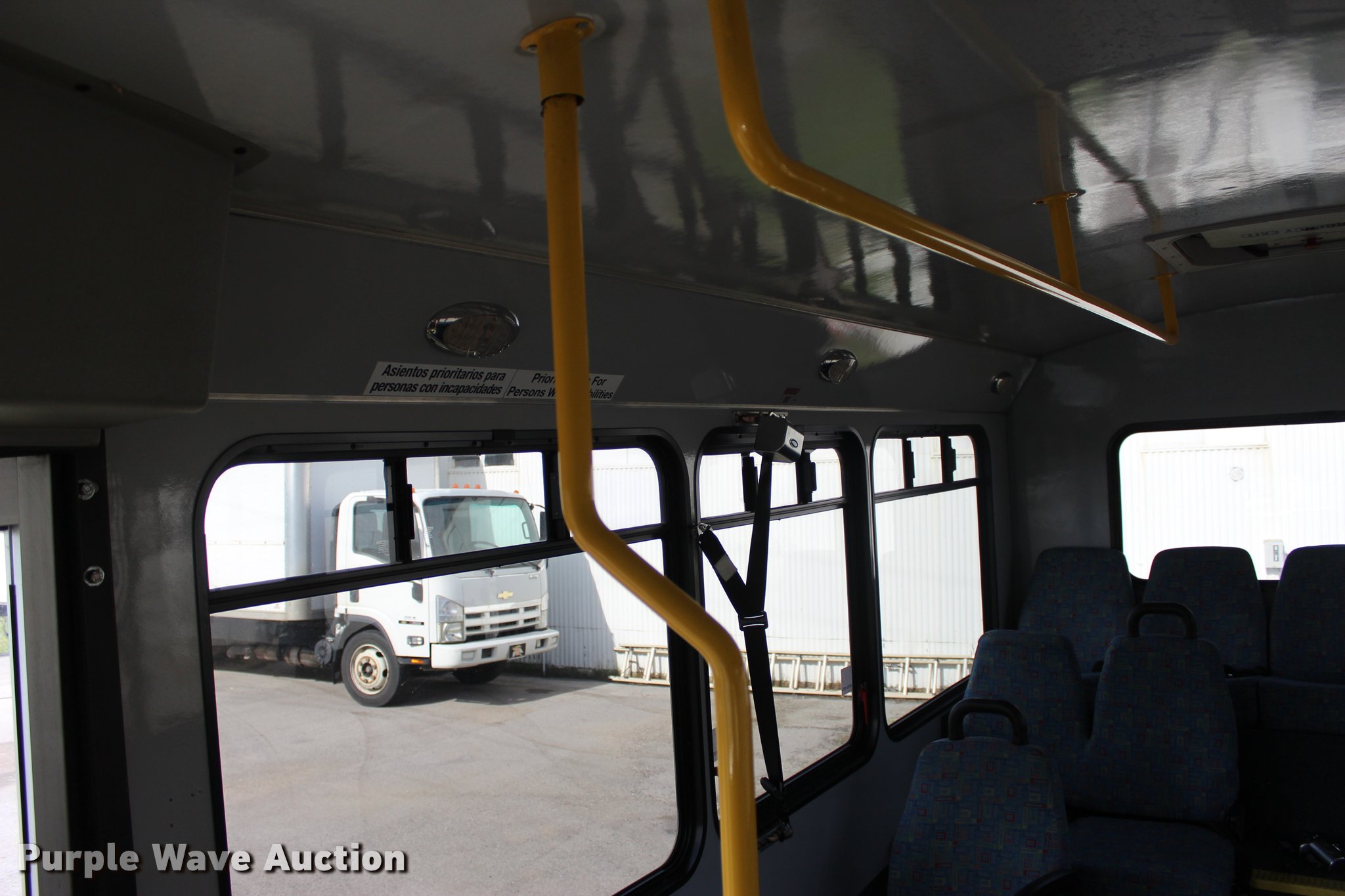 Purple Wave is selling a used Bus in Oklahoma. This item is a 2010 Chevrolet Express G4500 shuttle bus with the following: 211,741 miles on odometer, 6.0L V8 OHV 16V FFV CNG engine, Automatic transmission, AC and heat, Electric passenger sliding door, Ceiling handrail, 13 passenger capacity, (13) adults seats, Wheelchair lift, (2) wheelchair tie down areas, Ceiling emergency exits, Floor lighting, Back up alarm, (5) internet cameras, No recording device, Twin Vision sign systems, Air kneeling system ramps, Thermo King roof AC unit, Fast idle system, Air suspension, LT225/75R16 tires, No emergency door alarms, Unit# L1022