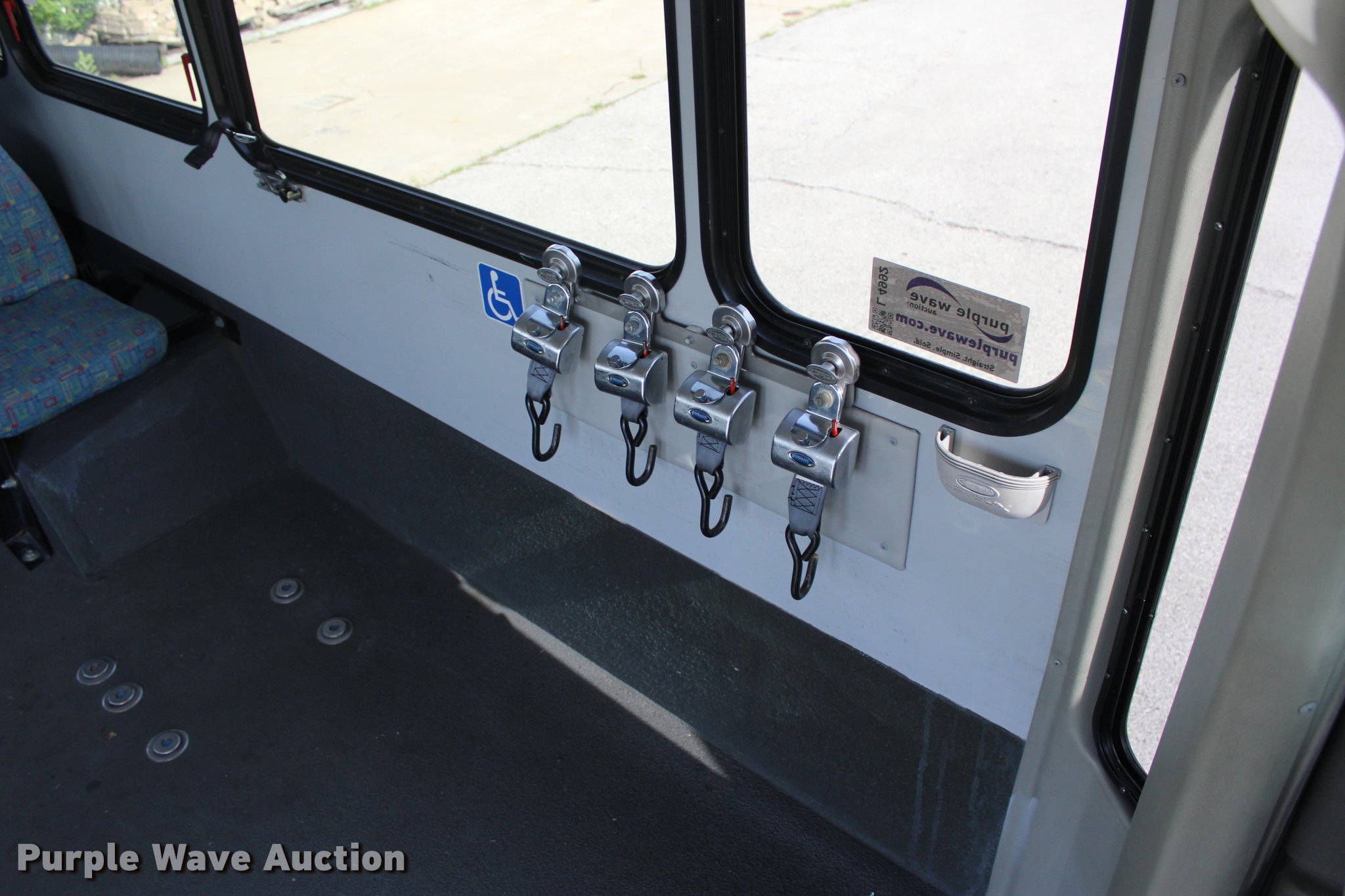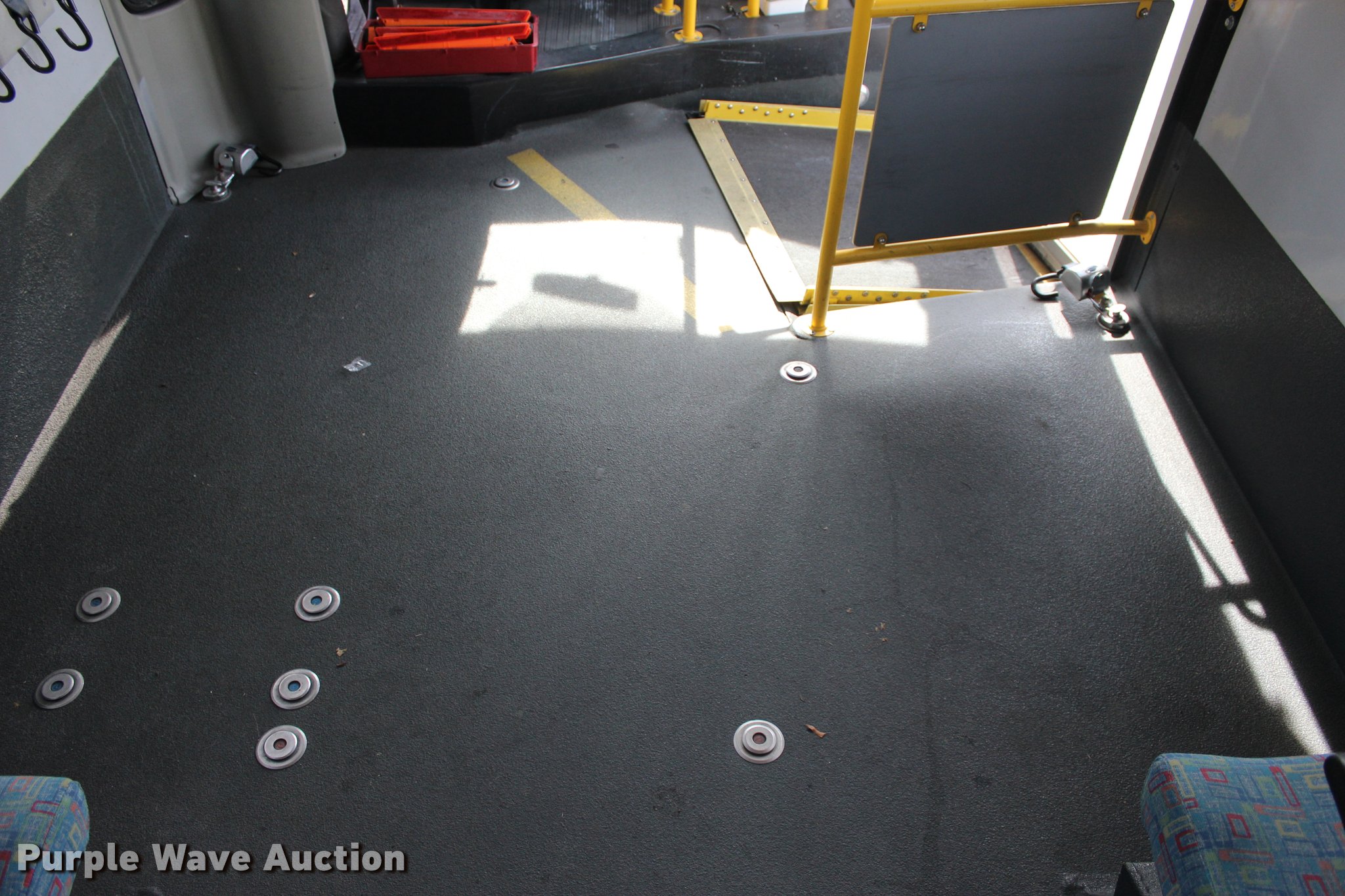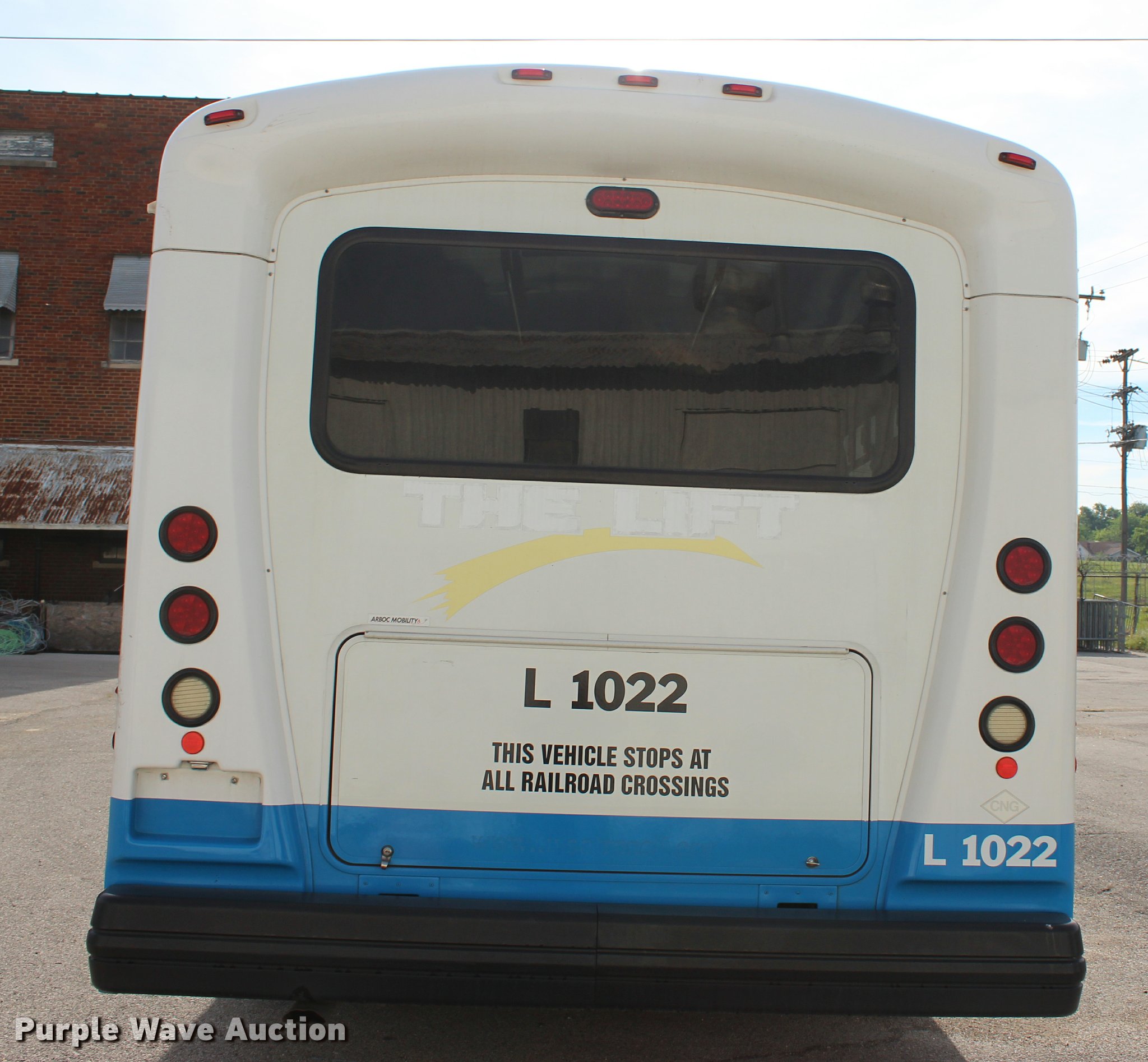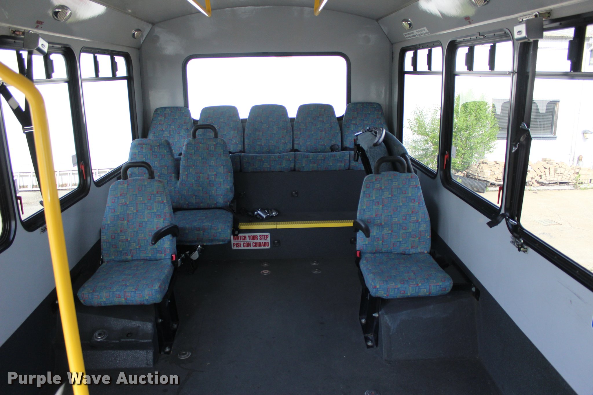 Purple Wave is selling a used Bus in Oklahoma. This item is a 2010 Chevrolet Express G4500 shuttle bus with the following: 211,741 miles on odometer, 6.0L V8 OHV 16V FFV CNG engine, Automatic transmission, AC and heat, Electric passenger sliding door, Ceiling handrail, 13 passenger capacity, (13) adults seats, Wheelchair lift, (2) wheelchair tie down areas, Ceiling emergency exits, Floor lighting, Back up alarm, (5) internet cameras, No recording device, Twin Vision sign systems, Air kneeling system ramps, Thermo King roof AC unit, Fast idle system, Air suspension, LT225/75R16 tires, No emergency door alarms, Unit# L1022