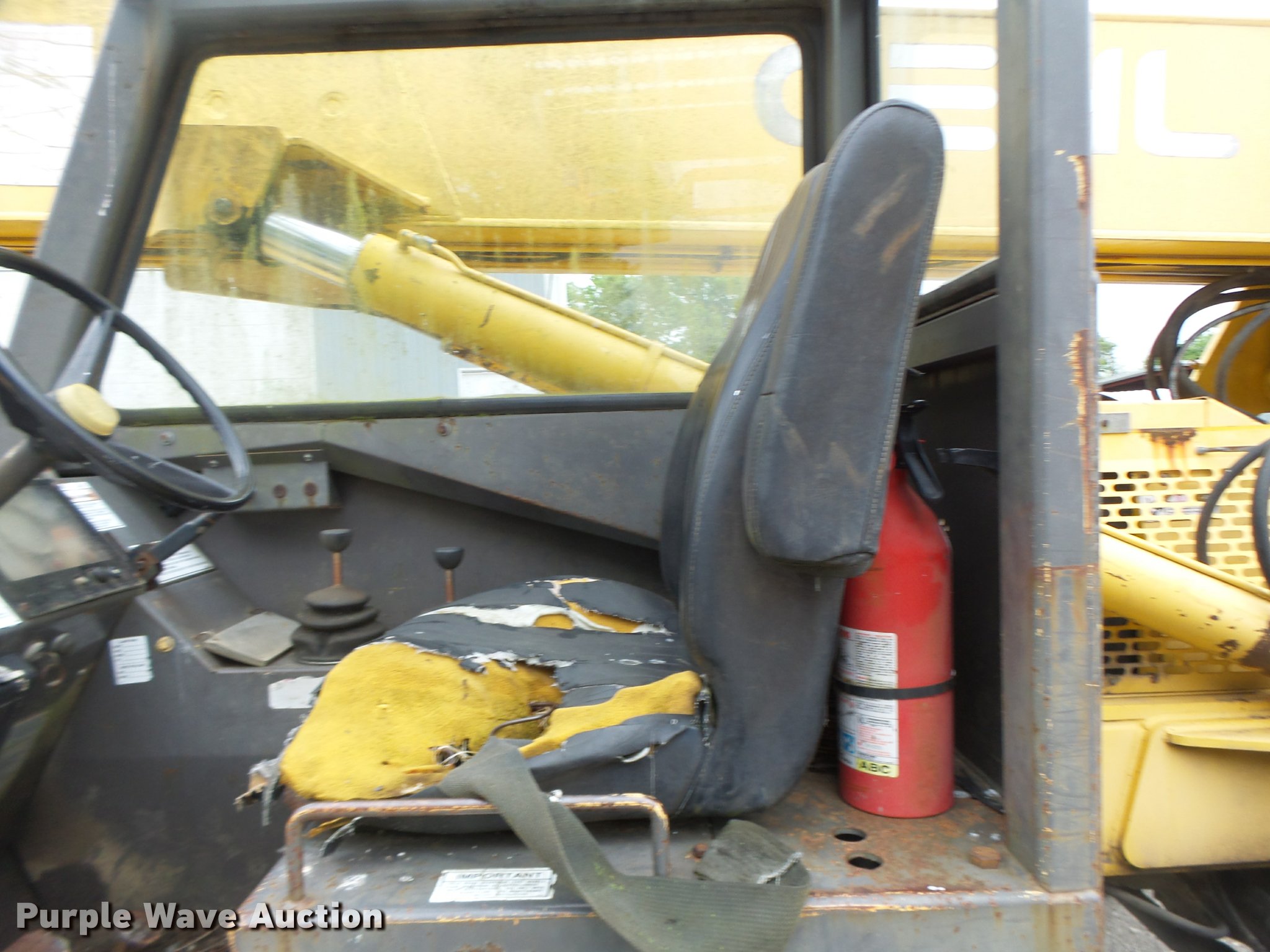 Purple Wave is selling a used Telehandler in Missouri. This item is a 1994 Gehl 882 telehandler with the following: 6,221 hours on meter, John Deere four cylinder turbo diesel engine, Serial T04039T452589, Crab steer, Canopy, 8,000 lbs maximum lift capacity, 40' maximum lift height, Tilt carriage, 48"L forks, 13.00-24 tires, Serial JK057536