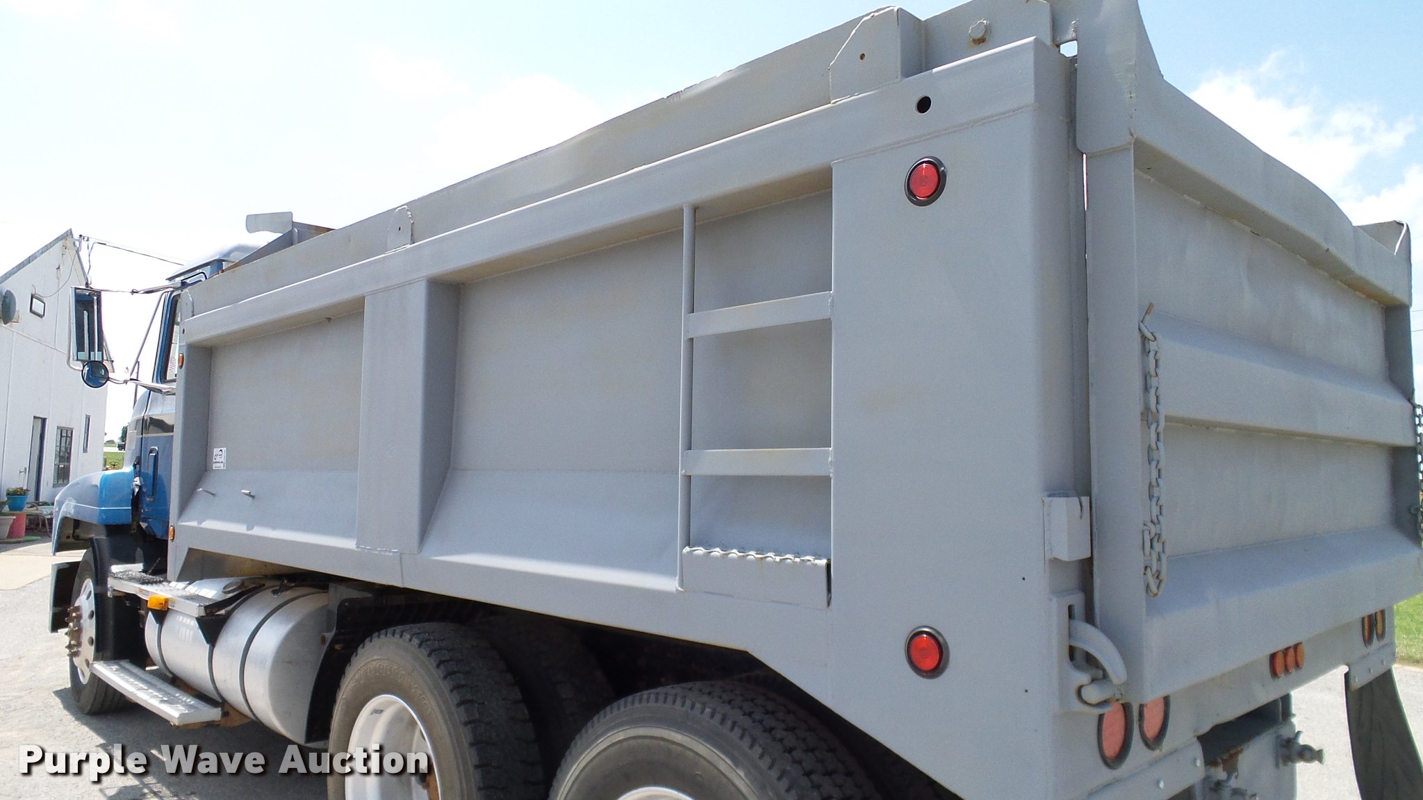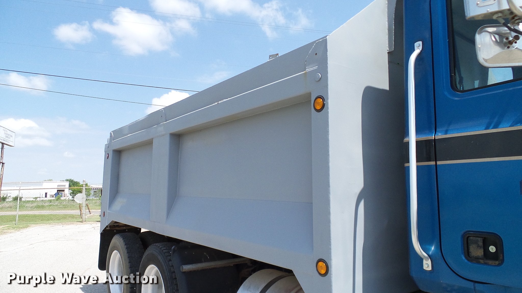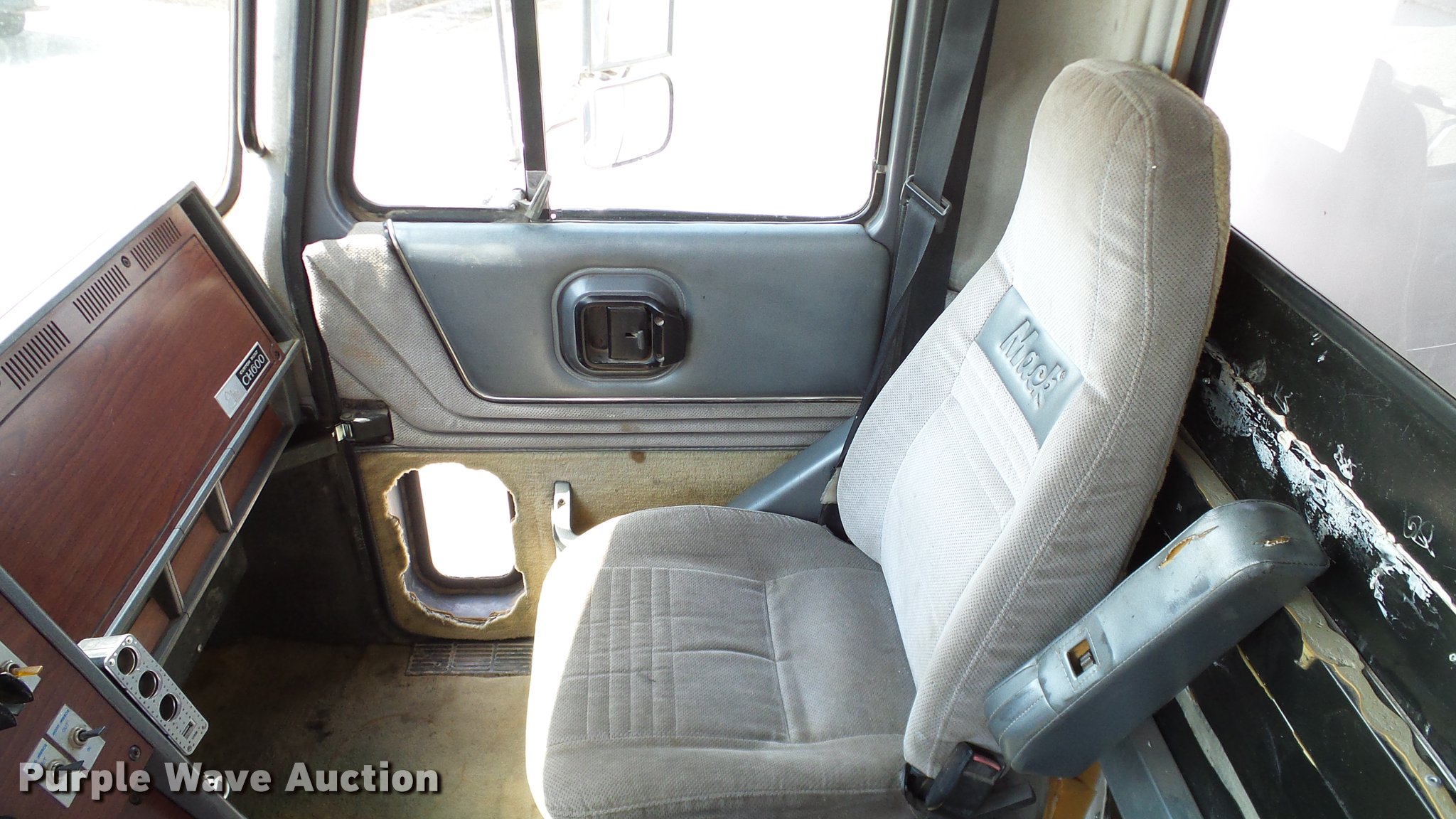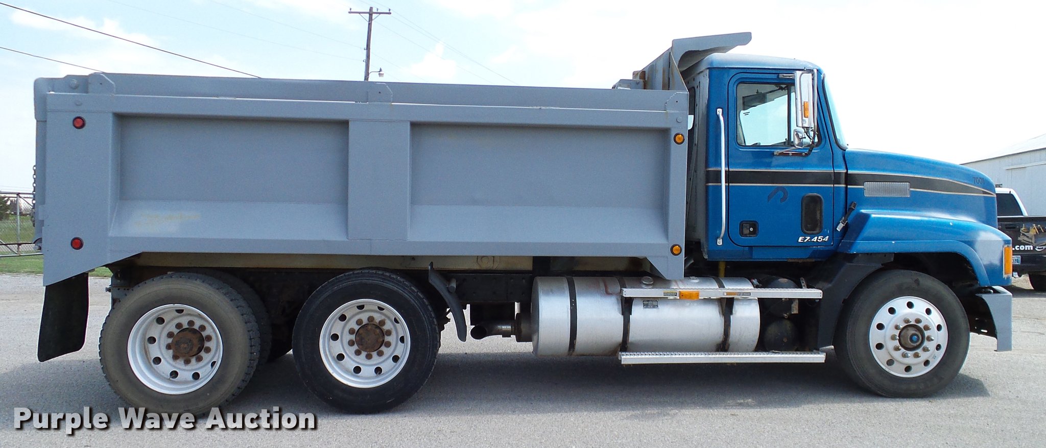 Purple Wave is selling a used Construction Dump Truck in Oklahoma. This item is a 1997 Mack CH613 dump truck with the following: 977,615 miles on odometer, 34,439 hours on meter, Mack E7 12.0L L6 turbo diesel engine, 454 HP, 13 speed manual transmission, Inter-axle differential lock, AC and heat, Tilt, Telescoping steering wheel, Cruise, AM/FM/CD, Power windows and locks, Power and heated mirrors, Air suspension seat, Air ride cab, Auto idle shut off, PTO, Steel dump bed, 15'L x 96"W, 42" side height, 6.5" side board height, Air operated end gate, Single ram hoist, Front tow hooks, Fog lights, Dual fuel tanks, Quarter fenders, Receiver hitch, 192" wheelbase, Air suspension, Air brakes, Engine brake, Aluminum wheels, 285/75R24.5 tires, Unit# 7001