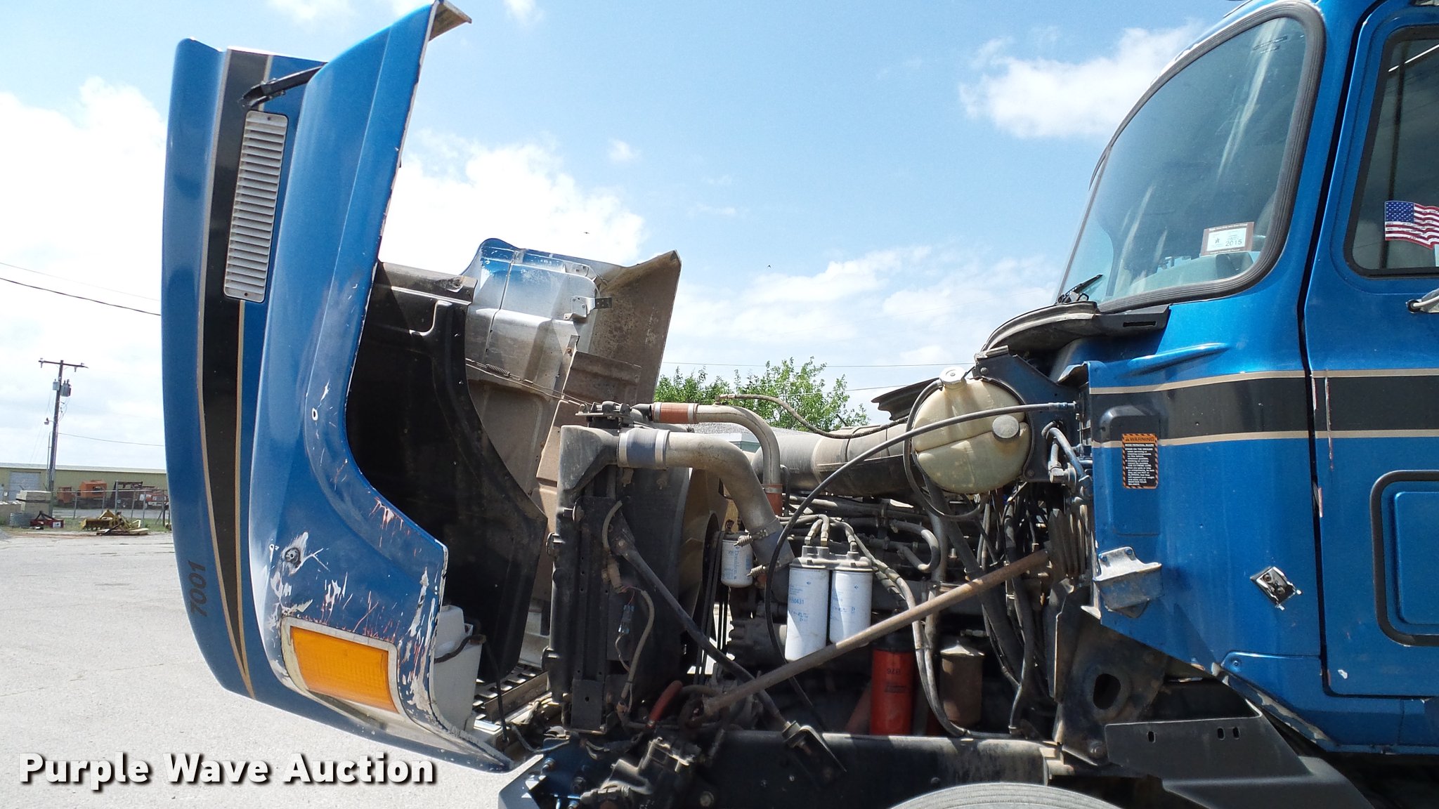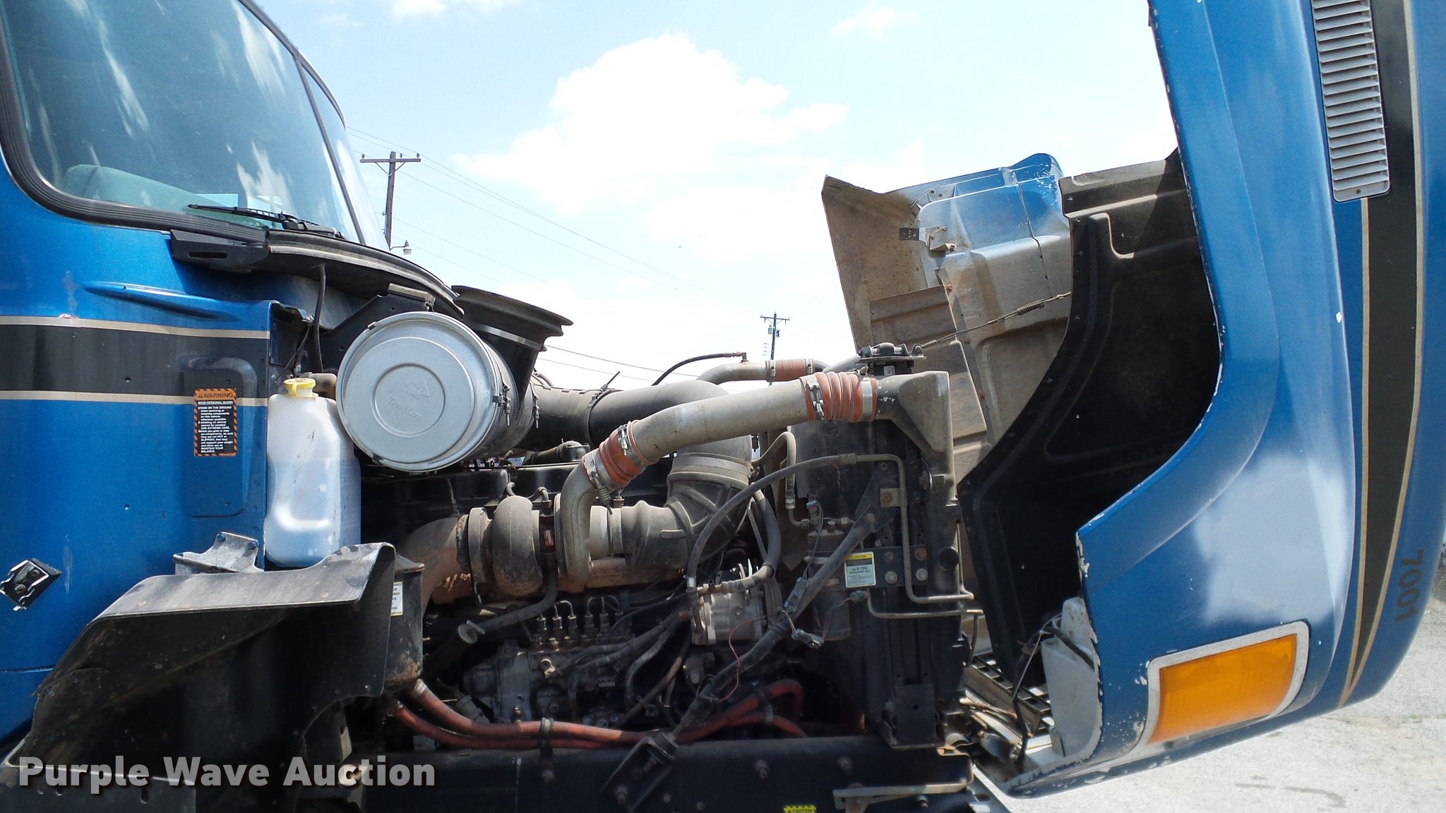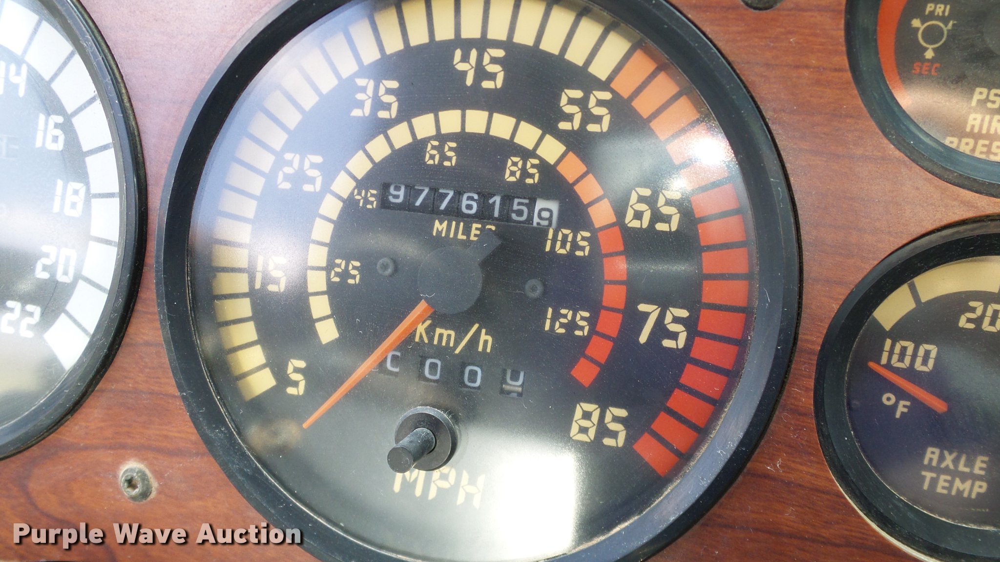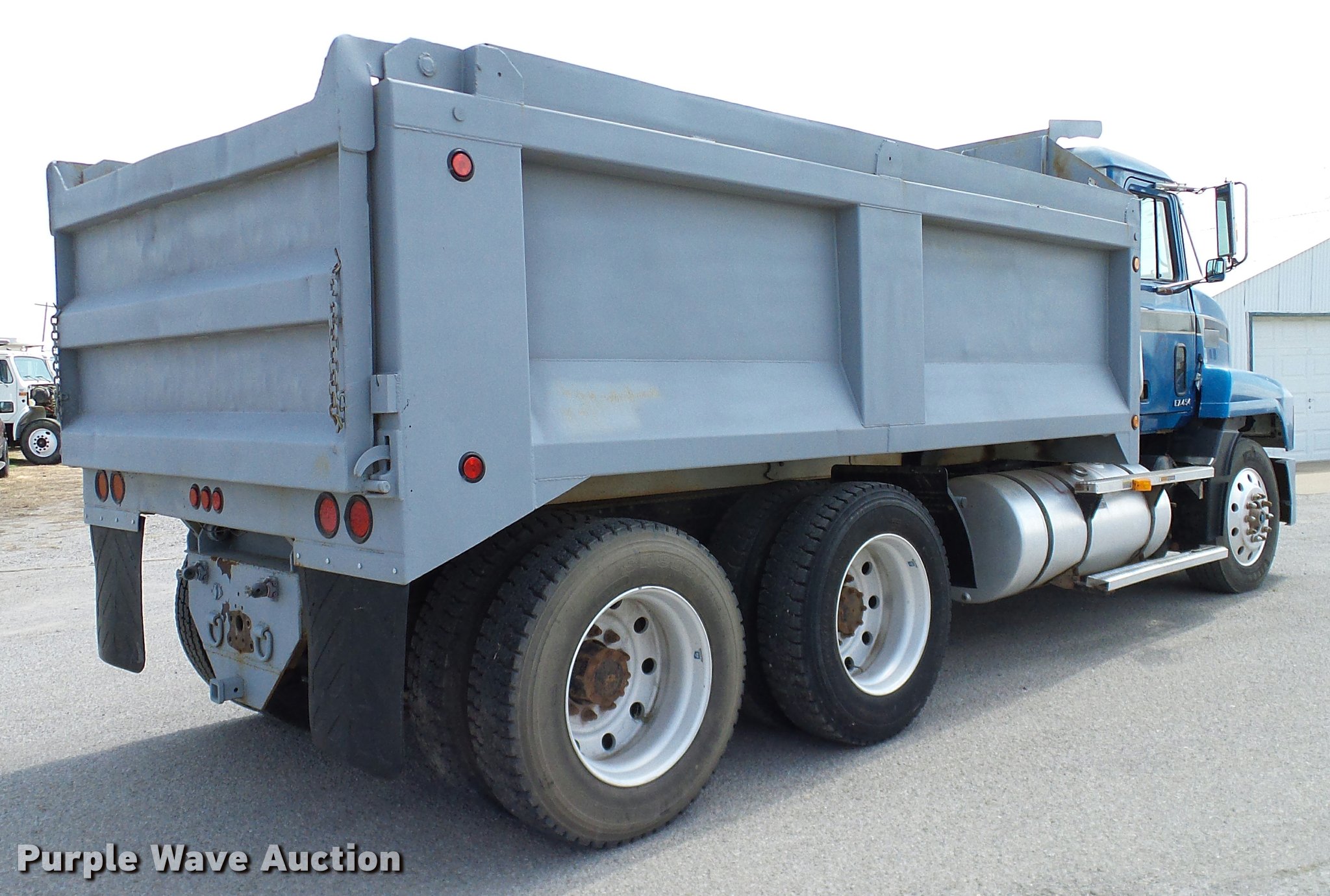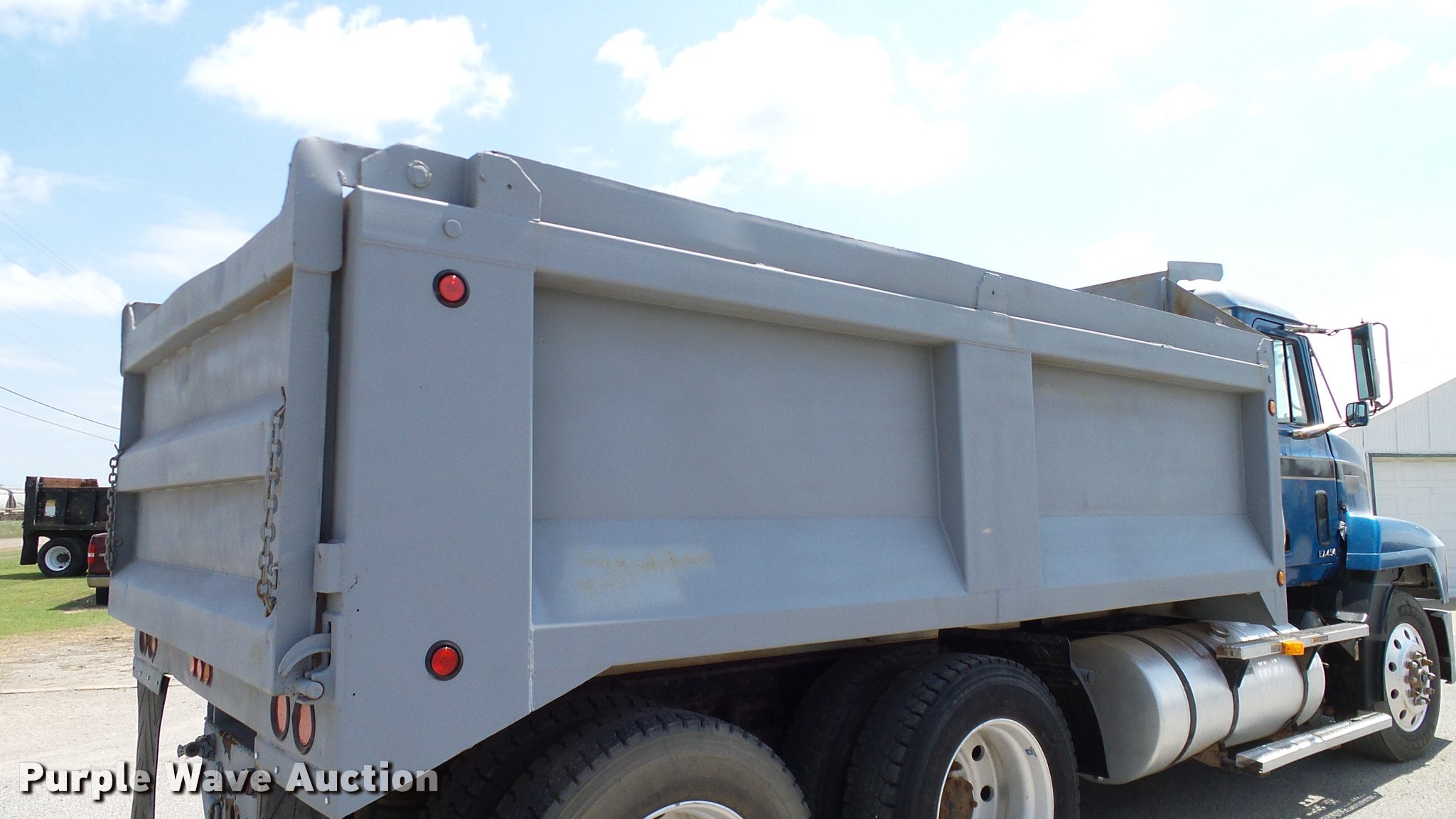 Purple Wave is selling a used Construction Dump Truck in Oklahoma. This item is a 1997 Mack CH613 dump truck with the following: 977,615 miles on odometer, 34,439 hours on meter, Mack E7 12.0L L6 turbo diesel engine, 454 HP, 13 speed manual transmission, Inter-axle differential lock, AC and heat, Tilt, Telescoping steering wheel, Cruise, AM/FM/CD, Power windows and locks, Power and heated mirrors, Air suspension seat, Air ride cab, Auto idle shut off, PTO, Steel dump bed, 15'L x 96"W, 42" side height, 6.5" side board height, Air operated end gate, Single ram hoist, Front tow hooks, Fog lights, Dual fuel tanks, Quarter fenders, Receiver hitch, 192" wheelbase, Air suspension, Air brakes, Engine brake, Aluminum wheels, 285/75R24.5 tires, Unit# 7001
